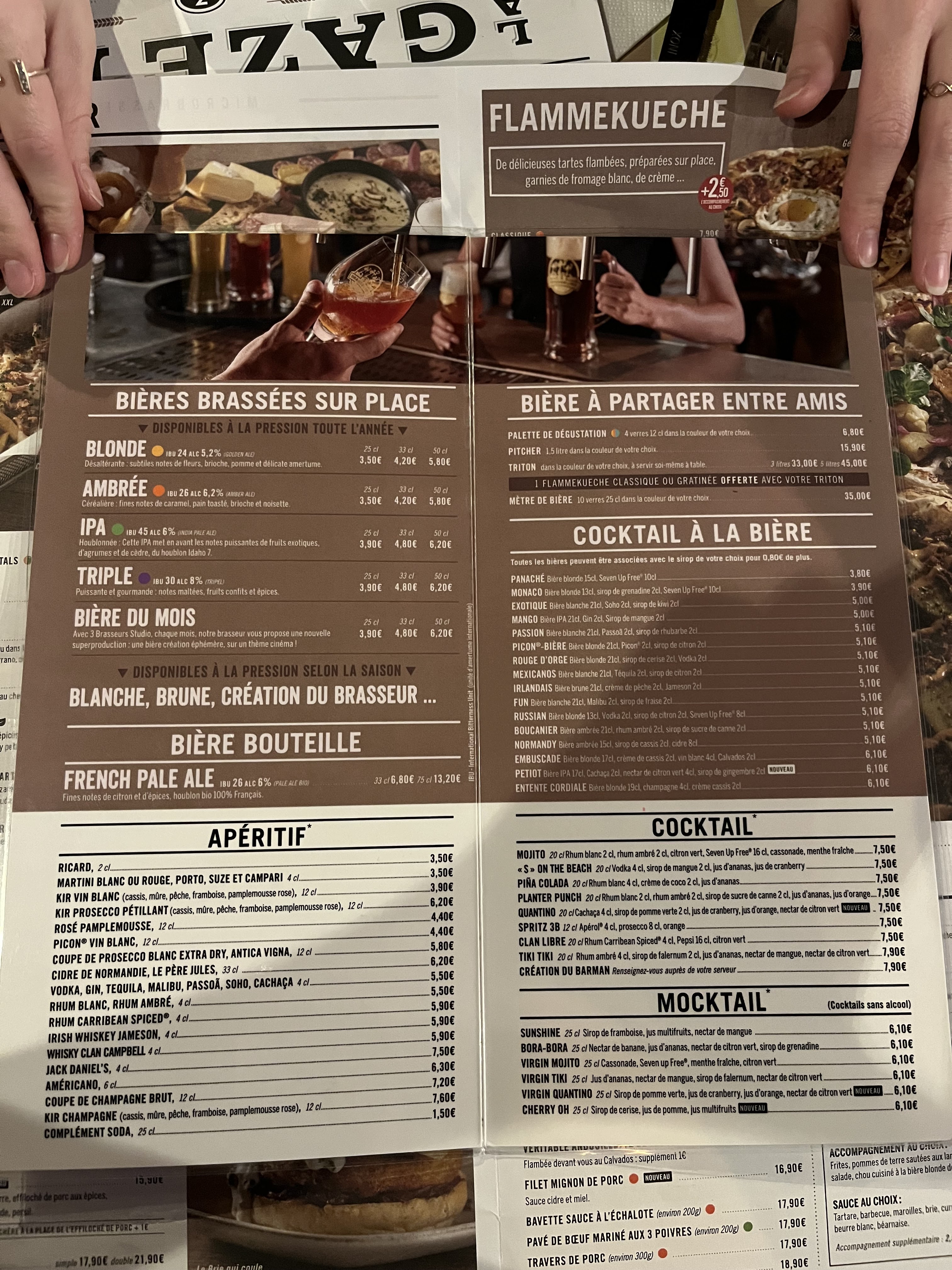 Toujours tres bien accueilli, servi dans les temps, les flammekueches (salé et sucré) aux top, et la déco sympa. Je n ai pas trouvé la bière extraordinaire, mais je reviendrai avec plaisir.