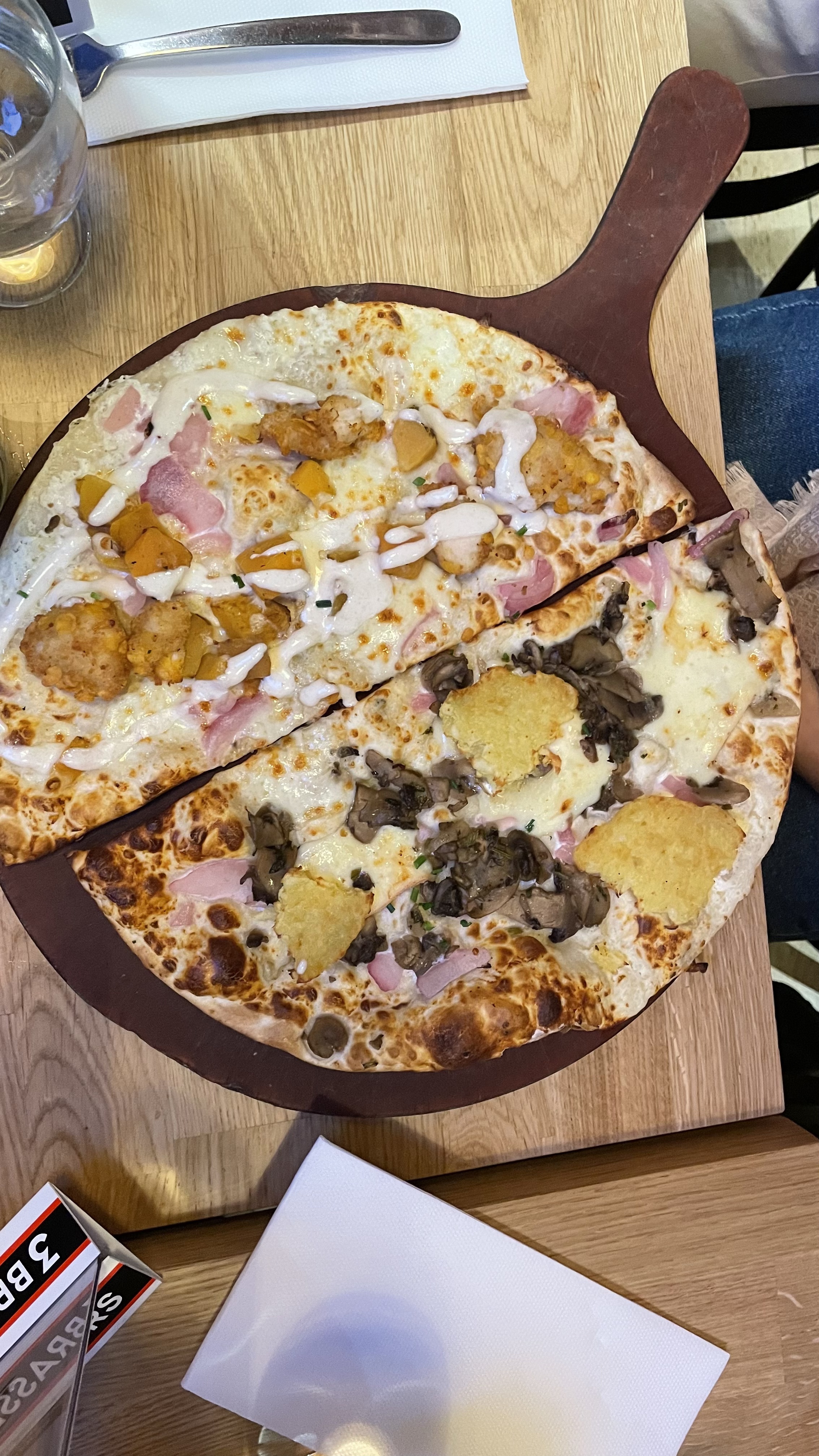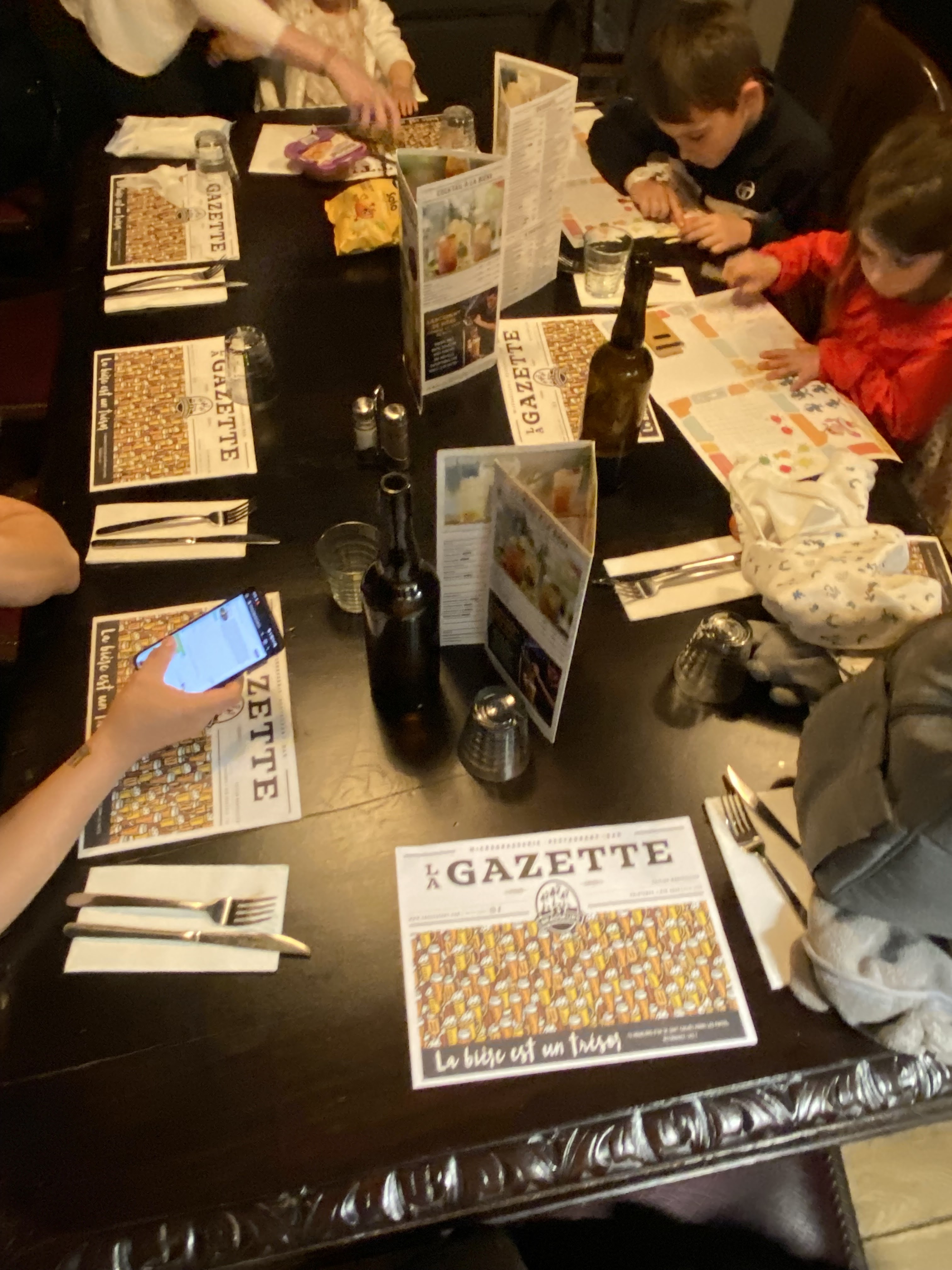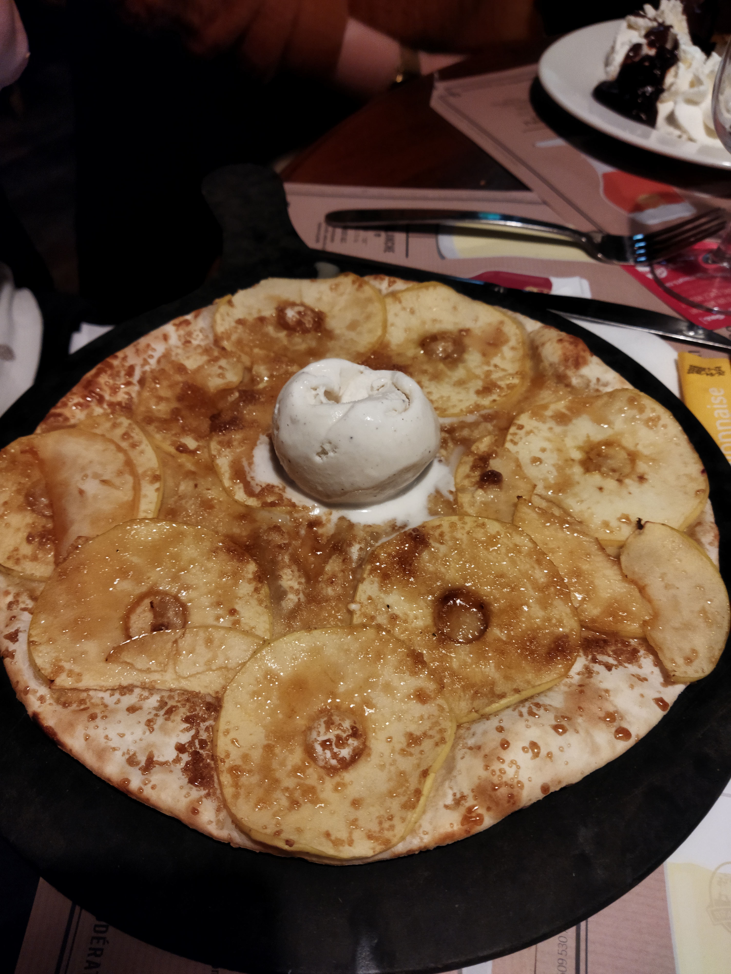 Nous avons commandé des flammekuechen et un menu enfant. Les flammekuechen sont bons. Les frites maison sont bonnes ainsi que les nuggets. Le serveur était sympathique malgré le monde qu'il y avait (un samedi soir).