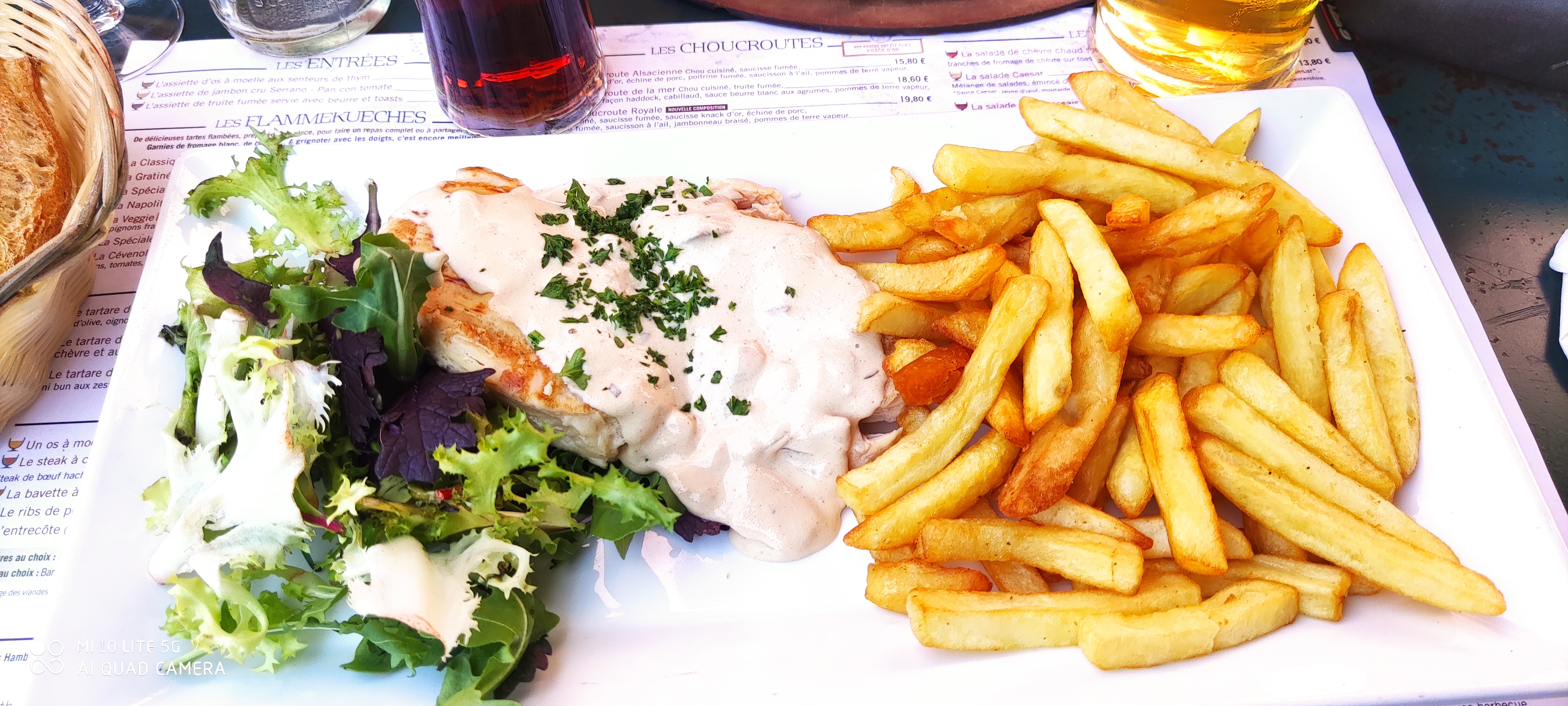 La cuisine est simple mais bonne . Pas mal de choix donc on a pu satisfaire toute la famille. Les menu enfants on a bon rapport qualité prix. on a retrouvé des plat typique du Grand-Est (notre région ) j’a trouvé ça très sympa.. Notre serveuse était sympathique mais peut-être un peu débordé. Mais elle a su bien gérer. A refaire si je passe dans la région (Famille 2 adultes 2 enfants 1 bébé: environ 100€ pour l’addition plats , apéro ,menu enfant ,boissons cocktail et soft et desserts ) Prix correct