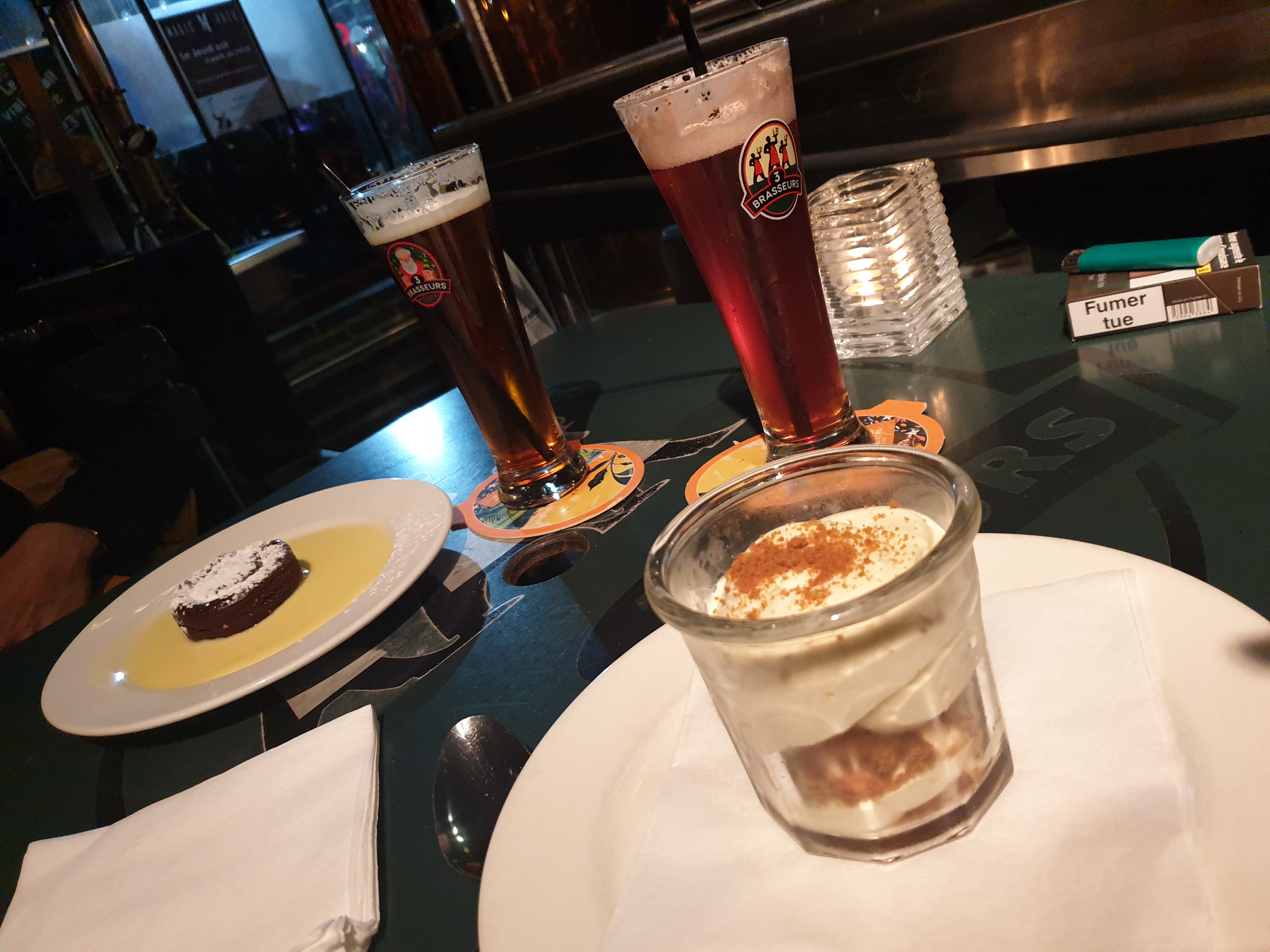 Après une soirée infâme dans un restaurant à côté de celui-ci, nous avons décidé de déguster notre dessert aux 3 brasseurs. Malgré notre arrivée tardive nous avons été très bien conseillées et servies. Merci beaucoup ! Les cocktails à base de bière sont vraiment à tester malgré l'appréhension, n'hésitez pas à demander conseil au serveur !