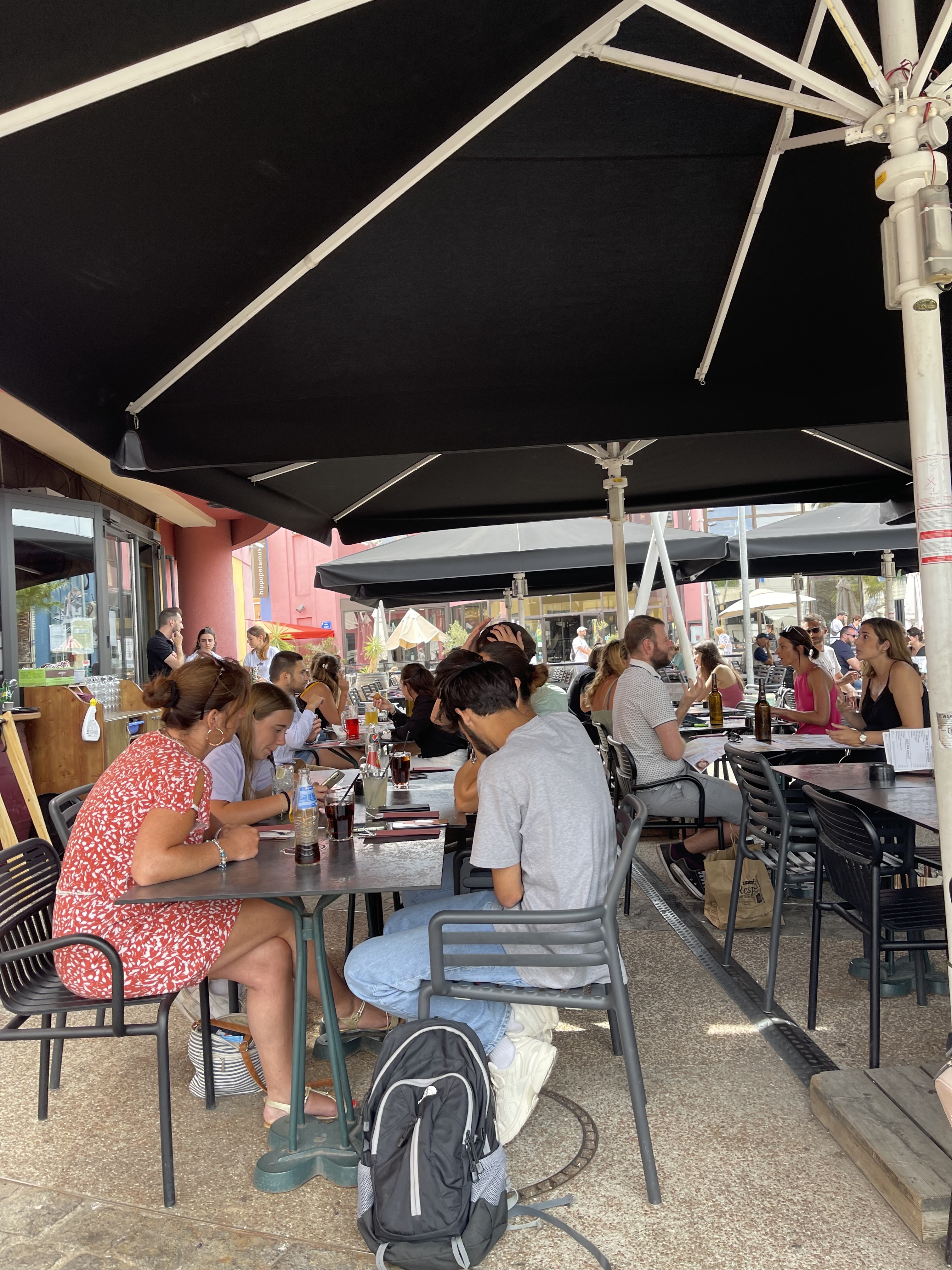Très bon accueil et nous sommes installés rapidement à une table. Le serveur était seul en terrasse et donc un peu débordé au vu du monde présent ce qui nous as fait attendre plus longtemps que ce que nous étions habitués mais les autres serveurs et des responsables sont venus l’aider rapidement. Les plats sont basiques mais TRÈS bons !!!!
