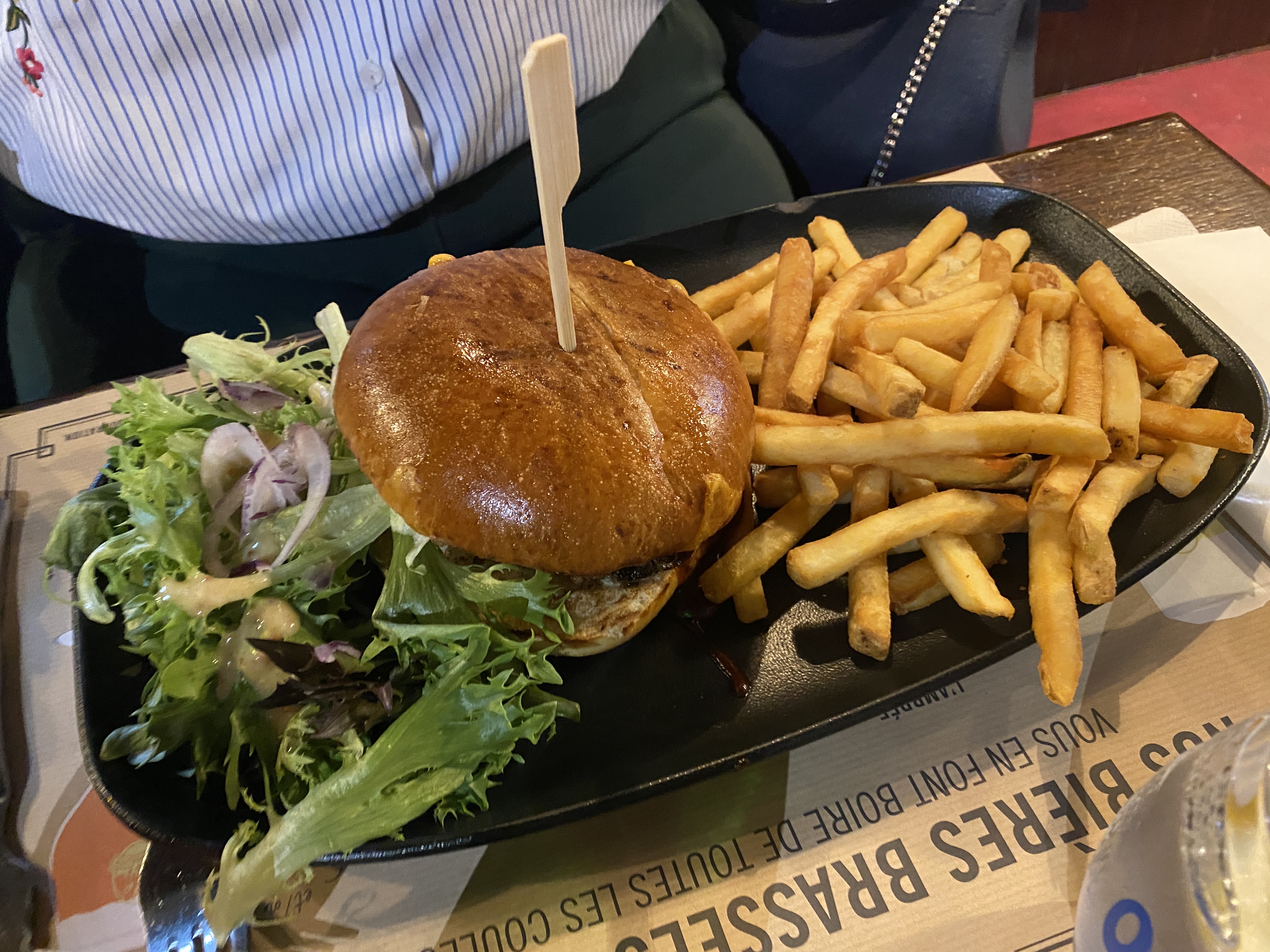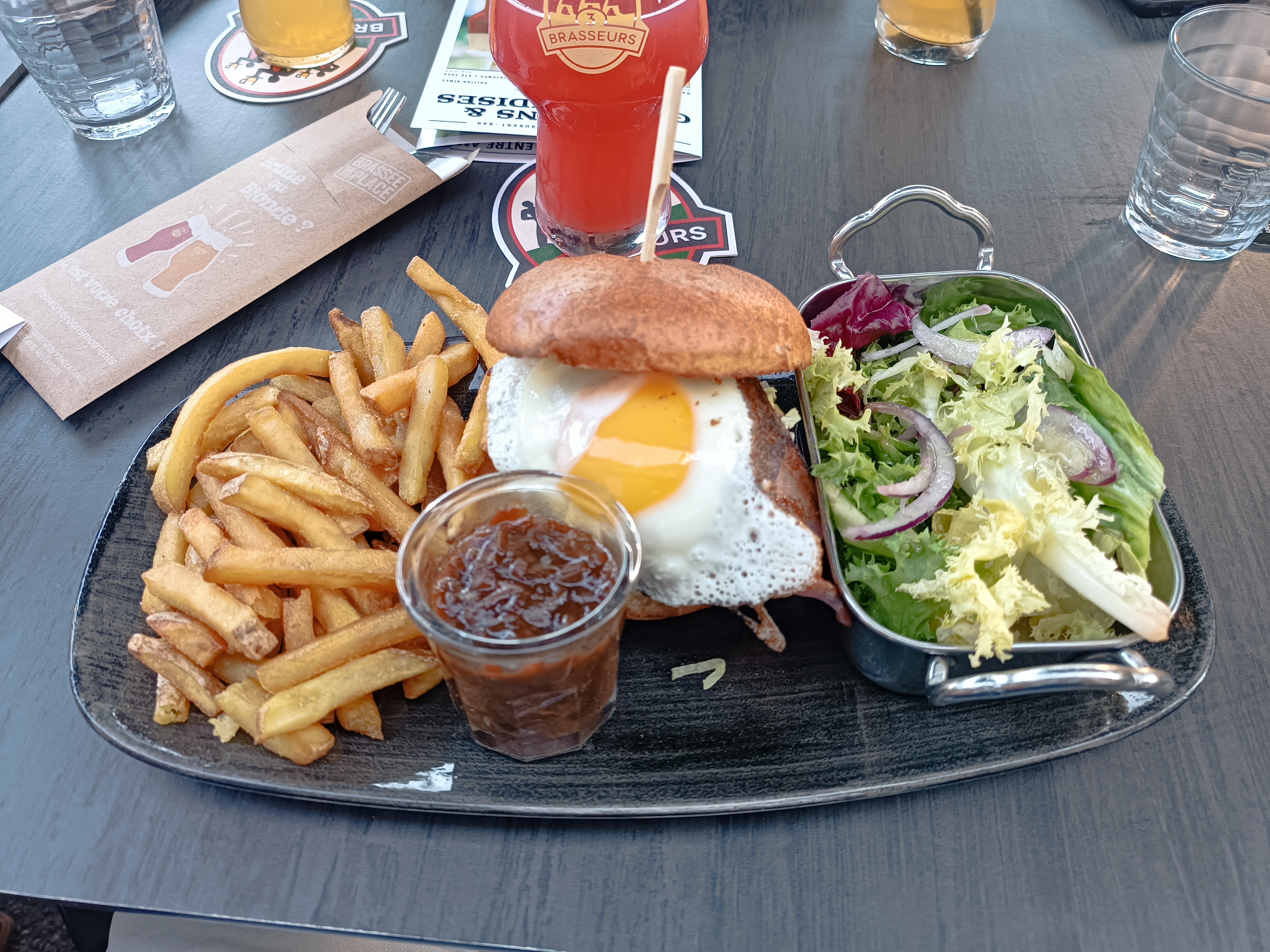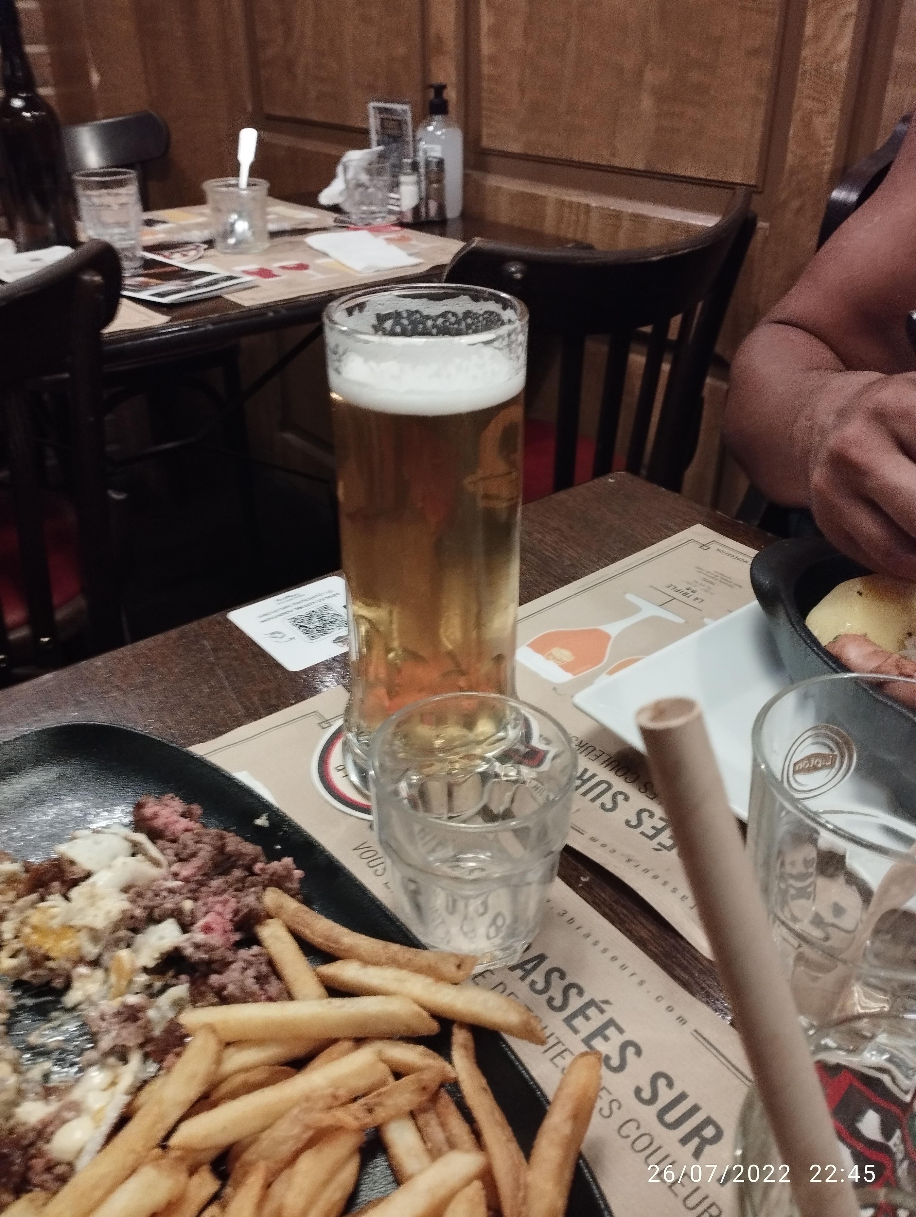 4 à table un samedi soir : - 1 burger de taureau immangeable vraiment le goût mauvais ! frites congelées très bas de gamme - 1 flammkuche : très peu de garniture, faim - 1 welch : ce n'est plus le plat copieux qu'ils servaient il y a quelques années... - ribs : arnaque c'est seulement des DEMI ribs ! Y a rien à manger : ça se voit bien qu'ils ont été partagés en 2 ! La dame qui nous a servie très bien, service rapide.