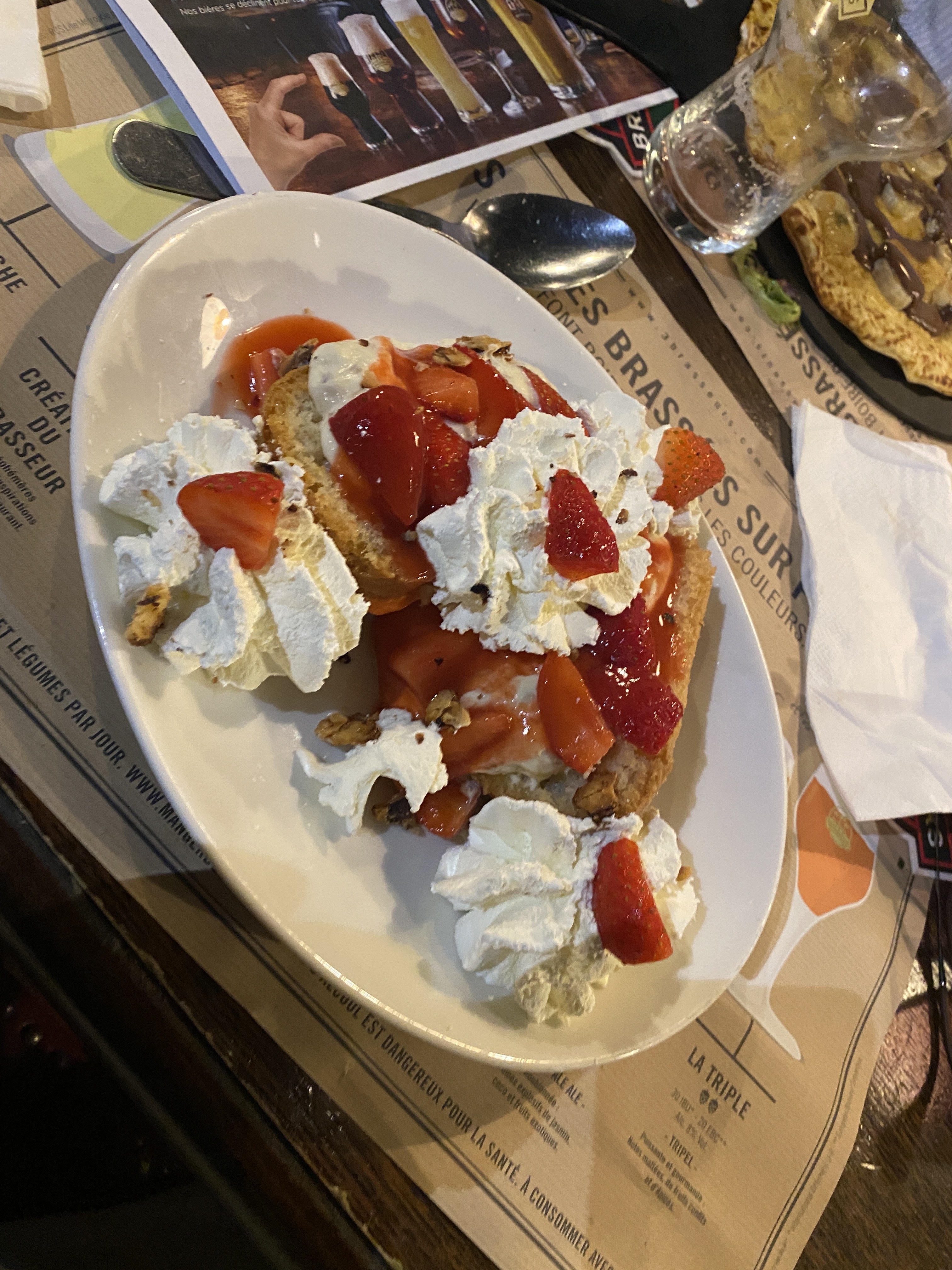 Restaurant qui devrait s’arrêter à faire que de la bière Nous avons commander un tartar aux couteaux nous avons juste reçu la viande sans assaisonnement explications du serveur cela ce mange comme ça chez nous…. Mais bien sur Nous avons pris 2 desserts une salade de fruit de saison et une coupe glacée mangue framboise fruit frais chantilly 6,90 c’est juste une grosse blague Tout ça pour dire que l’ambiance est bonne les bières sont bonne le reste s’abstenir .