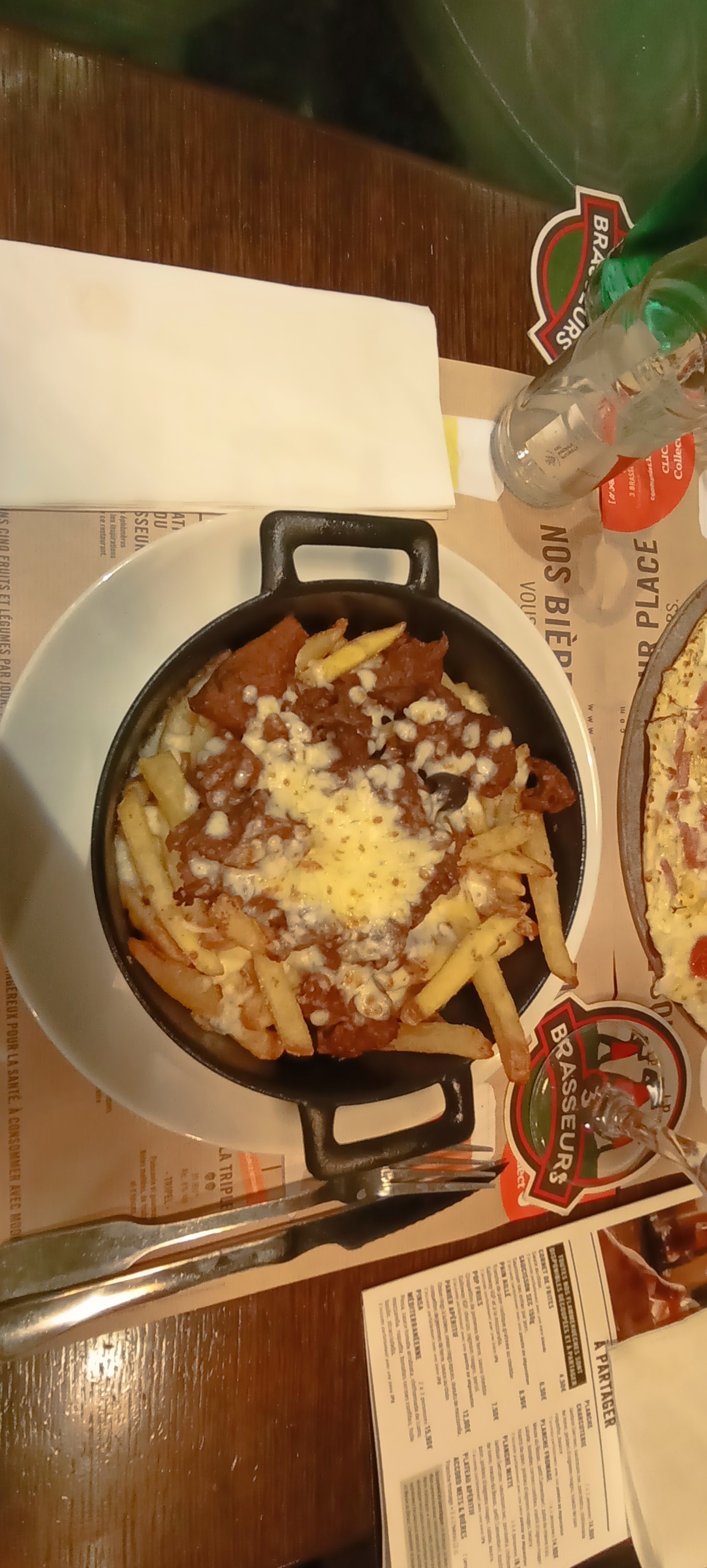 Extrèmement déçu ! J'ai commandé une poutiflette, les frites étaient rassie ont aurait dit des frites de la veille réchauffés, un plat sans sauce avec seulement un semblant de bout de frommage dessus je n'ai jamais rien manger d'aussi sec. C'est une honte de servir un plat de la sorte dans un restaurant ! J'ai fait gouter mon plat à deux personnes à table avec moi elles m'ont confirmé que les frites avaient un gout différente des leurs et que le plat était mauvais. Je l'ai respectieusement signalé à la serveuse qui n'a entrepris aucune action pour tenter de rendre ma soirée plus agréable. Très déçu je constate en consultant vos avis qu'une remarque similaire à mon avis du jour à été posté il y'a 5 mois pour le même plat. Visiblement vous prenez la peine de répondre aux avis de vos clients pour vous donner bonne conscience mais aucune action concrèrte pour résoudre les problèmes n'est au programme. Je ne reviendrai plus, et je conseille à une personne qui cherche un restaurant à Nîmes d'aller voir ailleur pour passer un bon moment.
