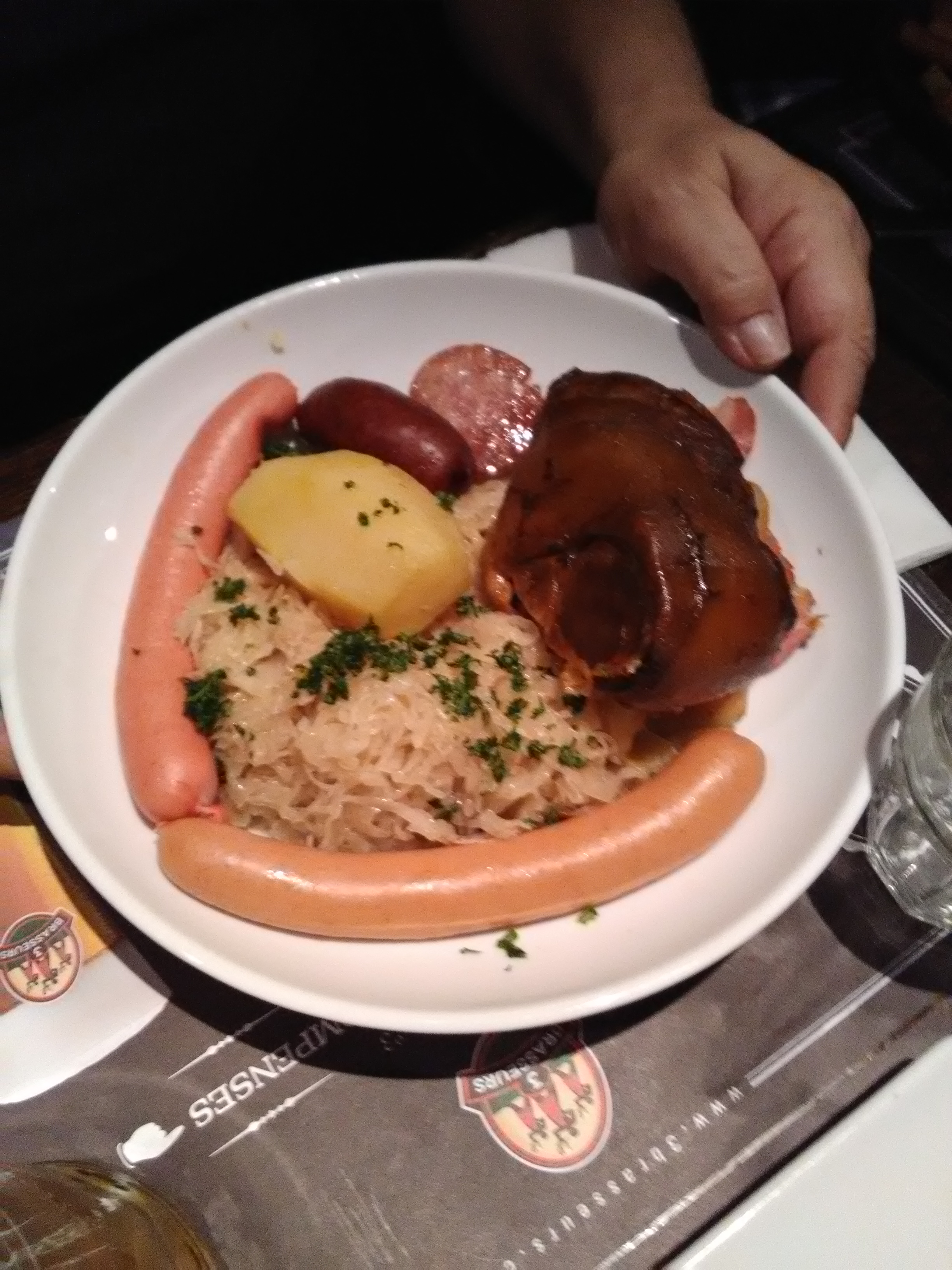 Premier passage dans ce resraurant et pas déçu par la choucroute. Le personnel, qui ne semble pas très nombreux, est accueillant et gère bien la salle. Carte très chargée, peut-être trop, on ne trouvait même pas la choucroute !Choucroute très bonne, bien servie et goûteuse. Pour le dessert le vacherin est un régal, même chose pour le cevenol, un moelleux à la crème de marron, la spécialité du chef. Endroit un peu bruyant. Par contre super déco, c'est un restaurant qui vit et qui se différencie du reste des restaurants.