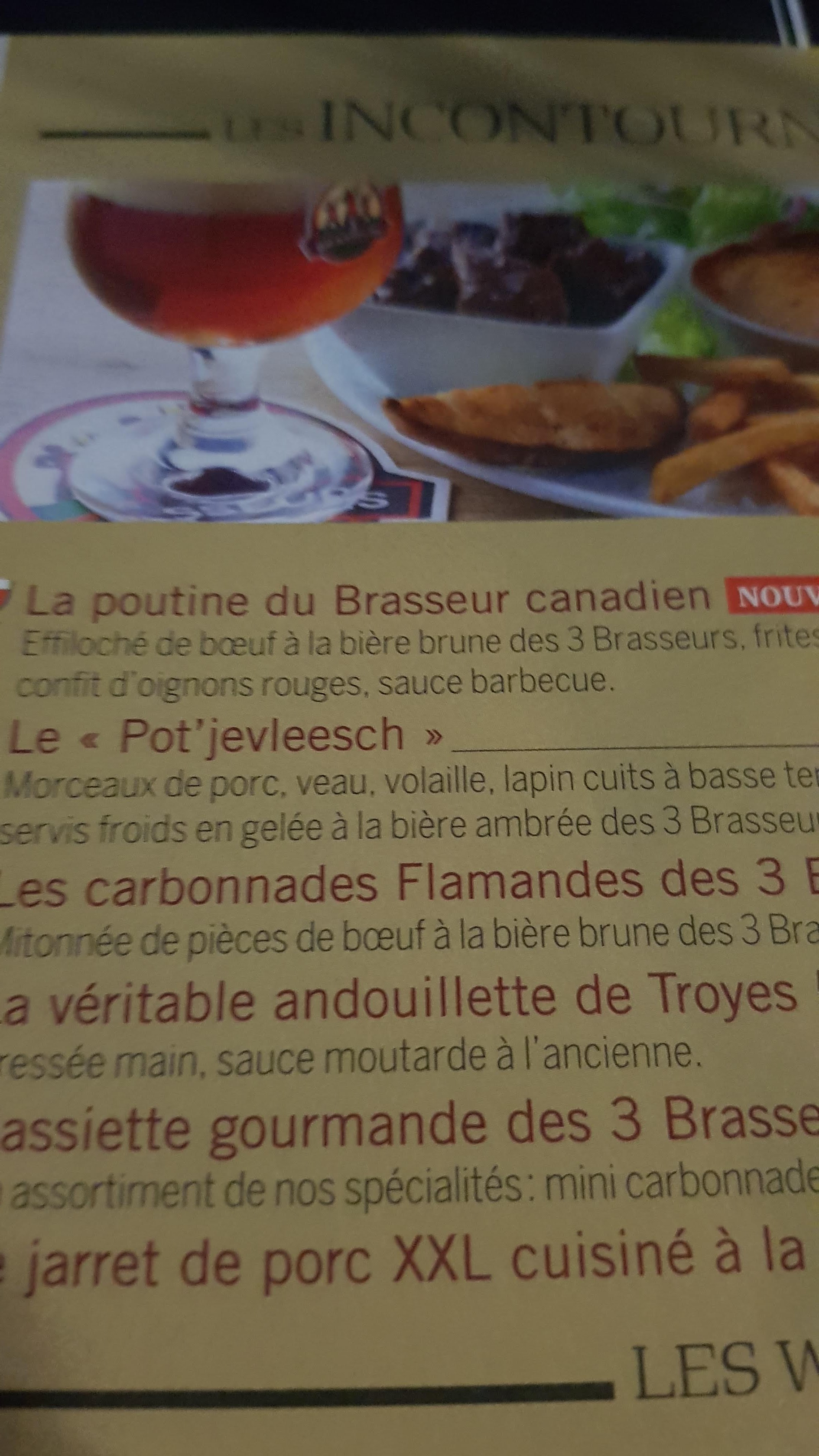 Pour toutes personnes qui aime les bonne bières brasse maison... et les bon plat chti et de l'est de la France... Je vous le conseil vivement... et en plus petite nouveauté sur la carte des spécialistes québécoise... avec la poutine des 3 brasseurs qui es excellente