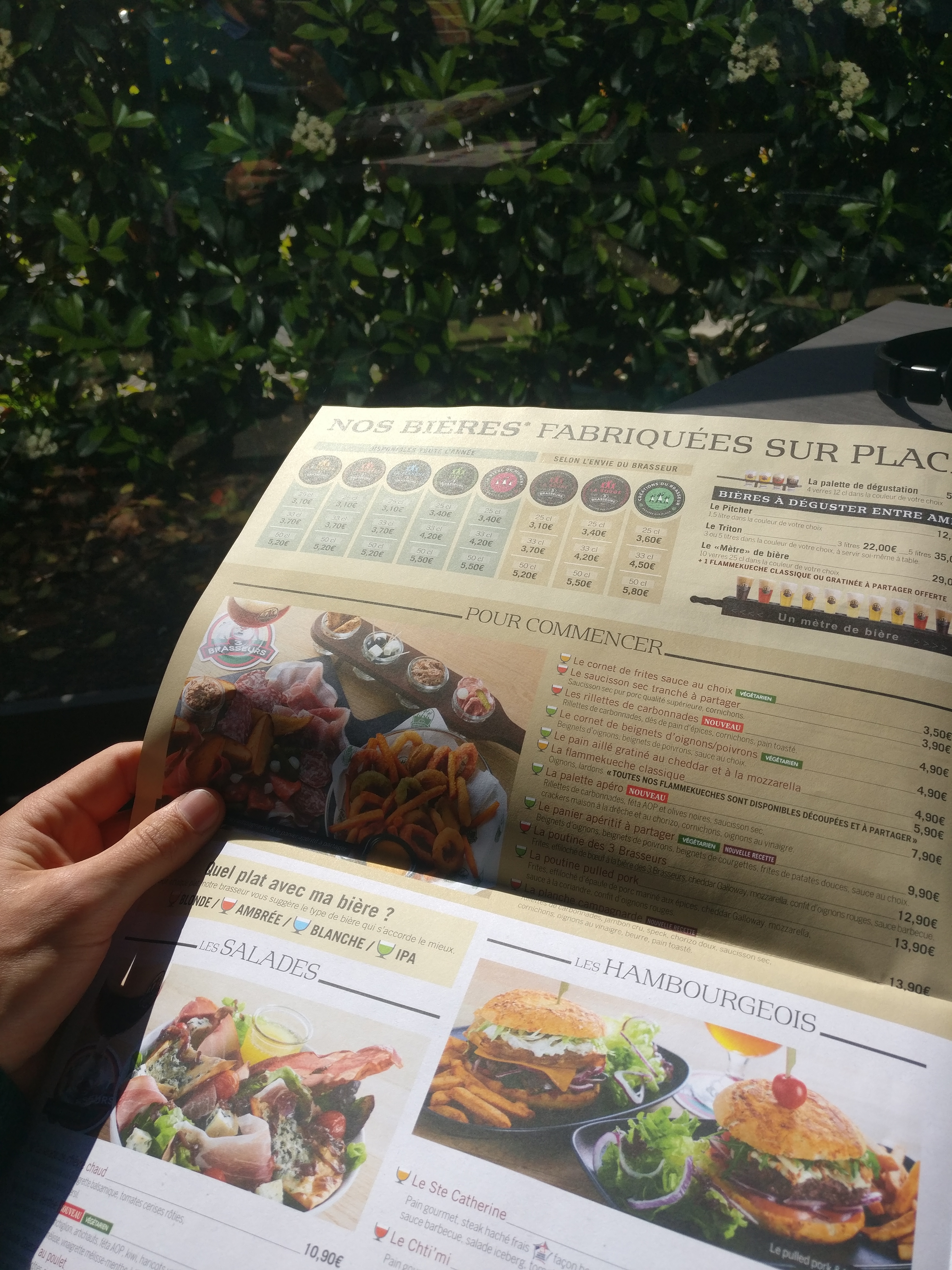 Flamenkuech très bonne, frite chaude mais a peine cuite.. Par contre service catastrophique, venue a 4 nous avons attendu 50 mn entre le service des cocas et les plats... De plus les verres dans un état déplorable (je veux bien qu'il ait quelques traces de calcaire mais la c'était déplorable..) Bref pas au niveau de la marque, il y a certainement mieux pour manger a Nimes..