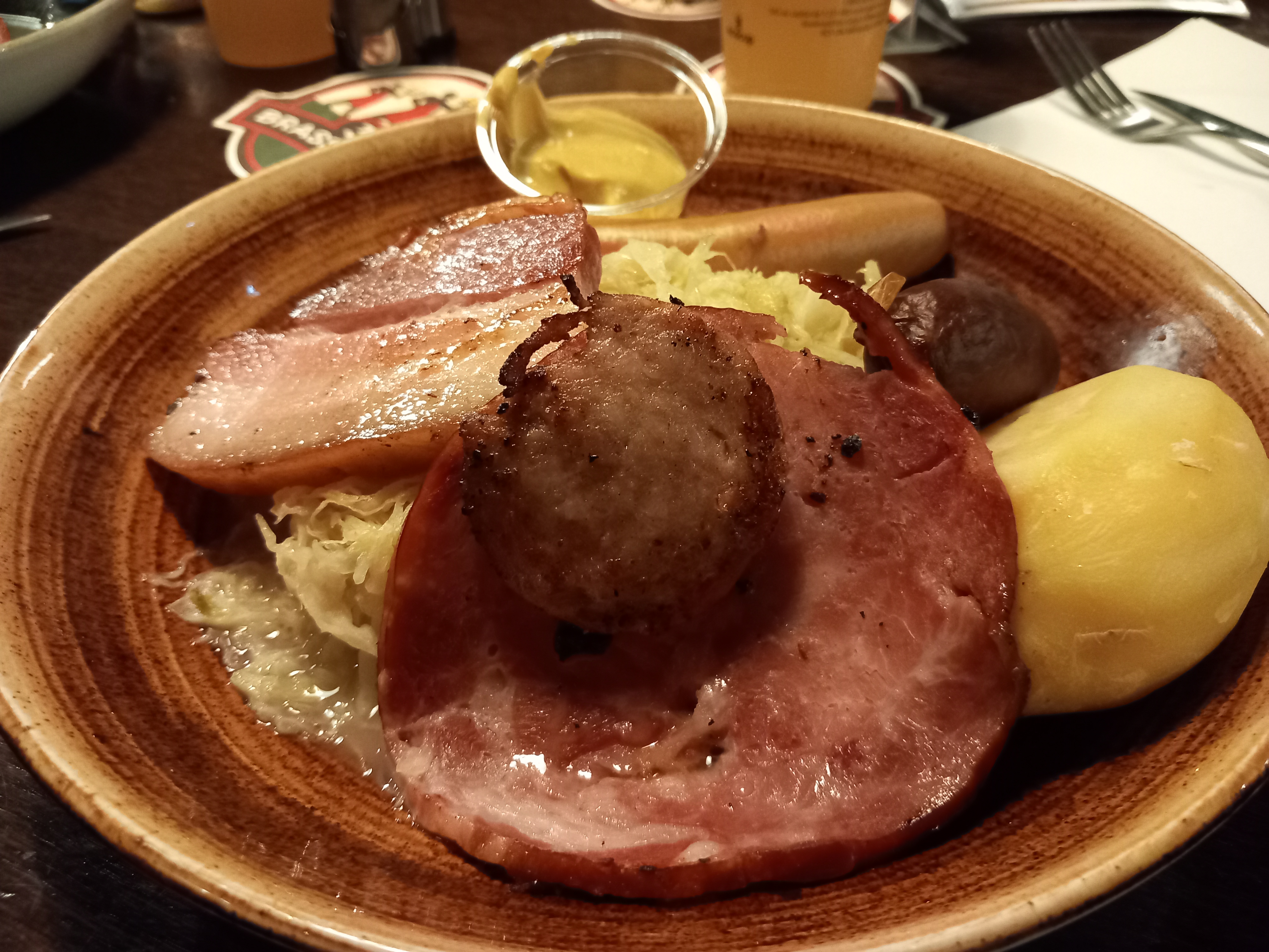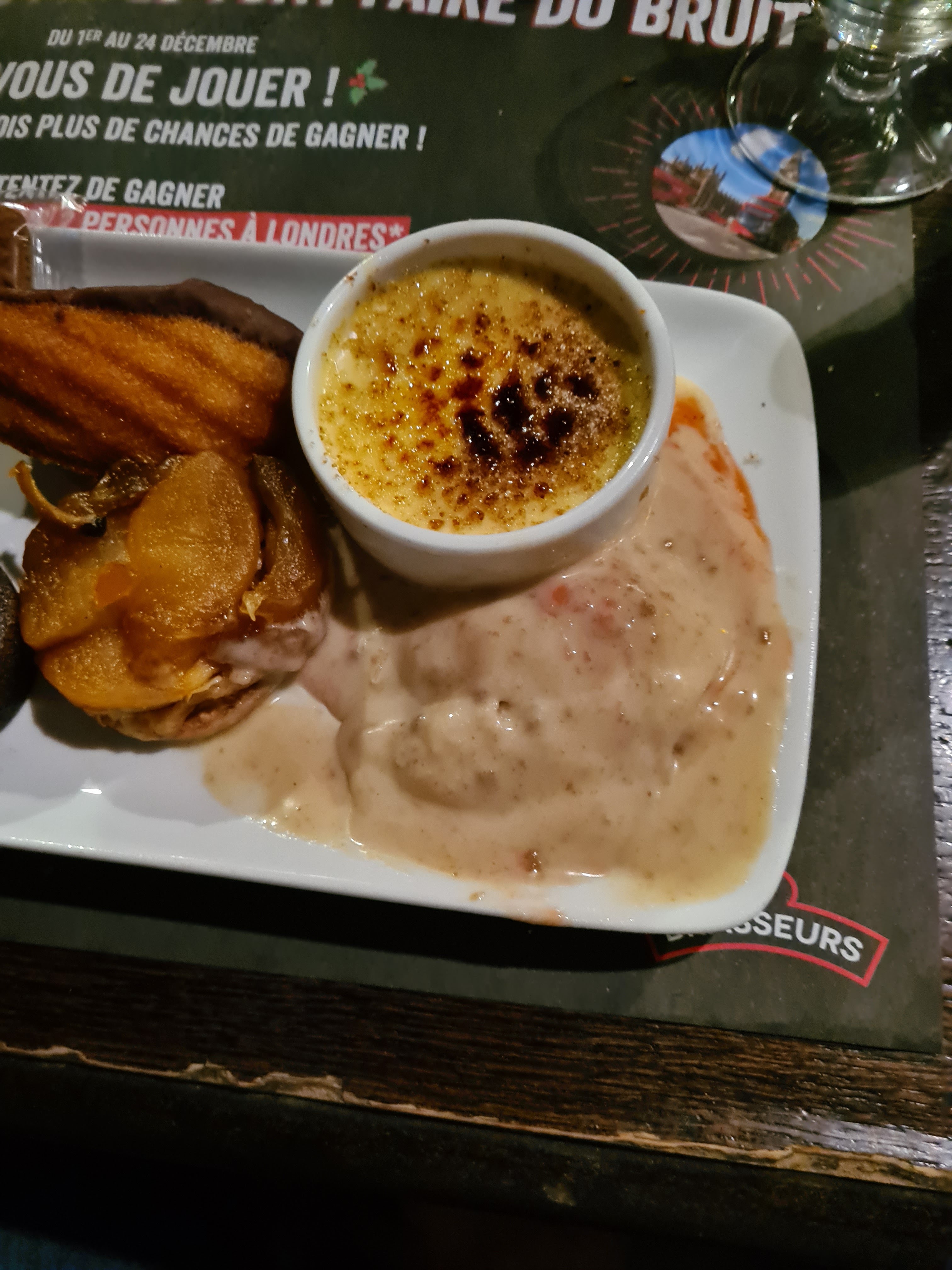 Repas copieux, mes non typique du nord. (frite congelé) Et très chere à mon goût pour de la bière brasser sur place. Je conseille après avoir fait le tour d'autre établissement qui sont meilleur à mon goût.