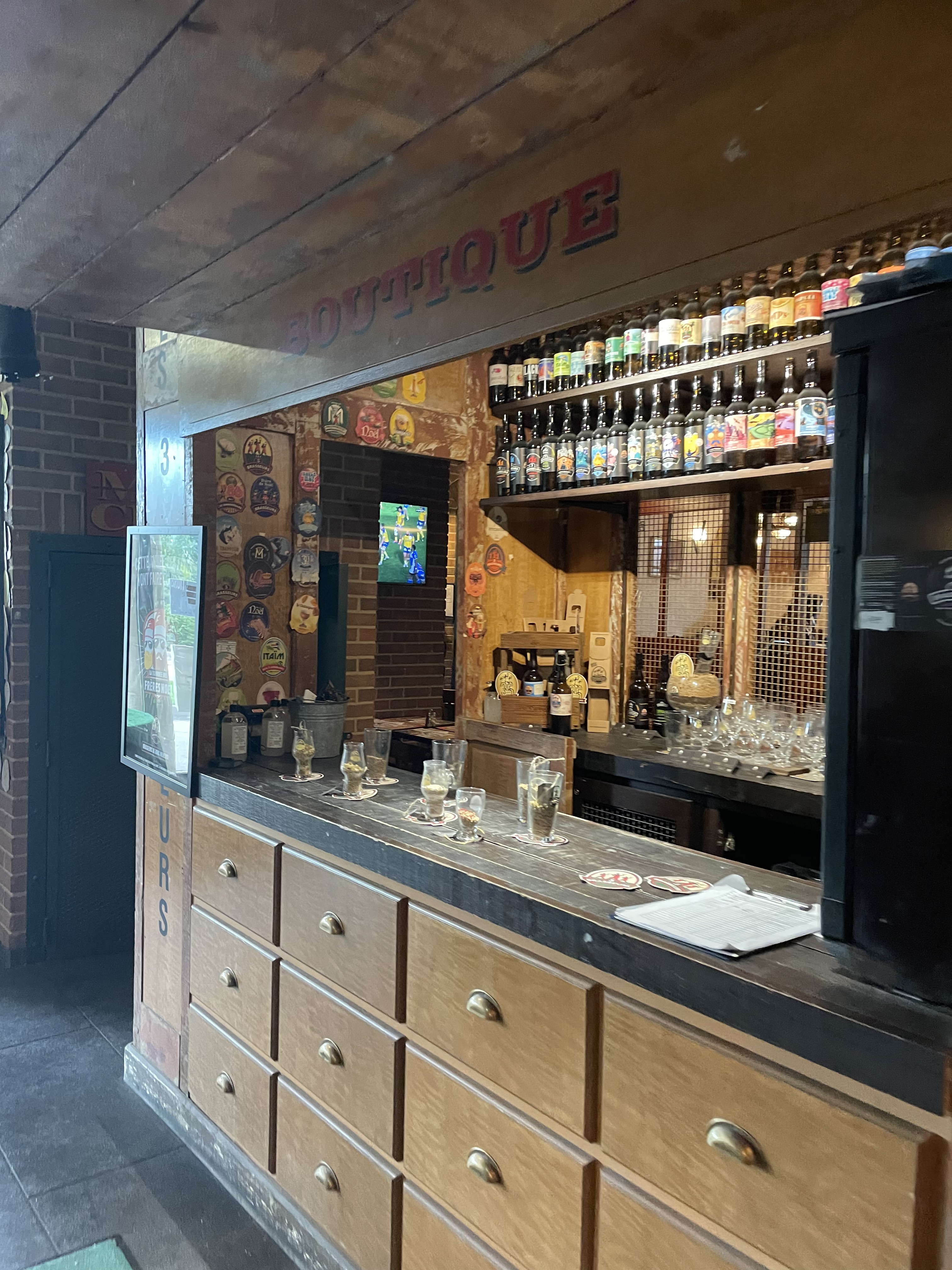Bonne bières et beaucoup de choix. Pour les adeptes cela permet de goûter des variétés que l’ont n’a pas l’habitude de boire. J’ai été surpris par la qualité du plat que j’ai pris. Invité pour passer une soirée entre amis je ne m’attendais pas à de la grande cuisine. Mais le plats avait du goût et copieux. La serveuse était très souriante et sympathique. Il n’y a pas eu d’attente. Gros plus nous a pris nos tickets restaurant en soirée