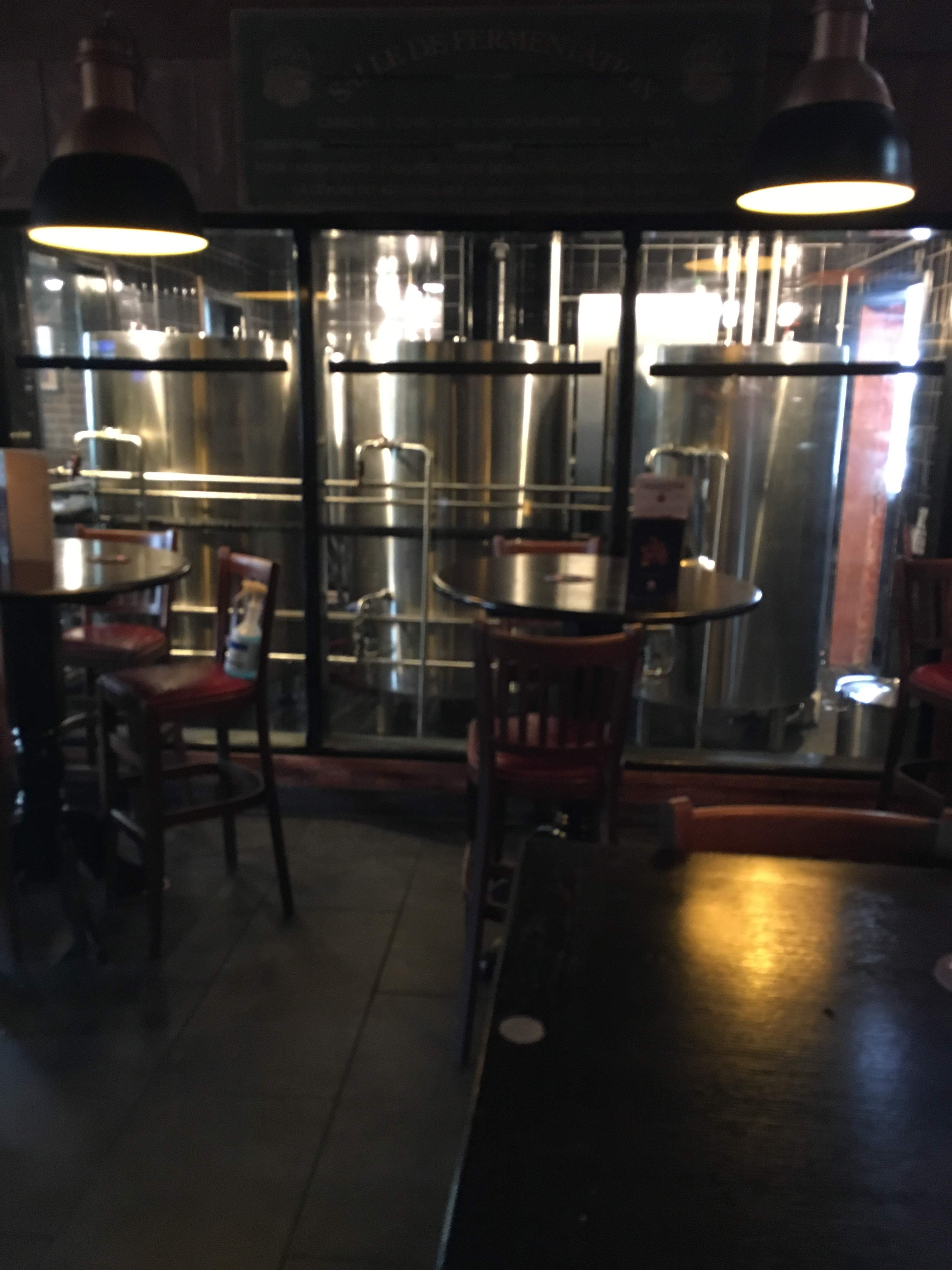 Endroit très sympa, le fait que la brasserie soit aussi visible et intégrée dans le bar/restaurant donne une autre dimension aux bars à bières classique! Le personnel est très agréable, nous avons passés un très bon moment avec eux, la pinte Red Sour à la framboise était une très bonne découverte pour moi, ils sont arrangeant au possible, mon conjoint a voulu prendre un formidable, il l’a eu dans une énorme chope, au top, Merci beaucoup et à bientôt !