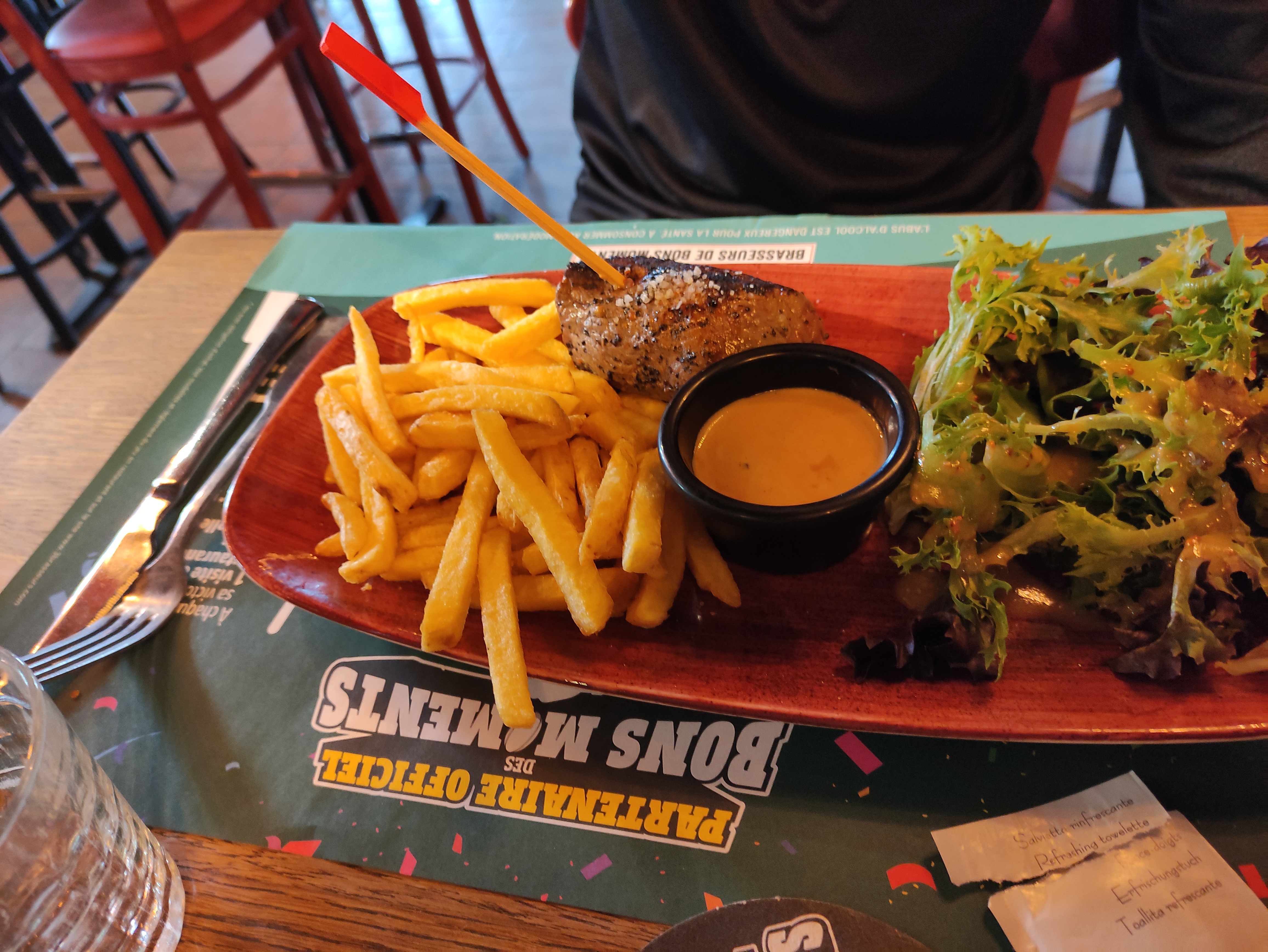 Super expérience ce soir avec le serveur damien qui nous a servi dans une super ambiance et un repas délicieux avec le nouveau brie qui coule.