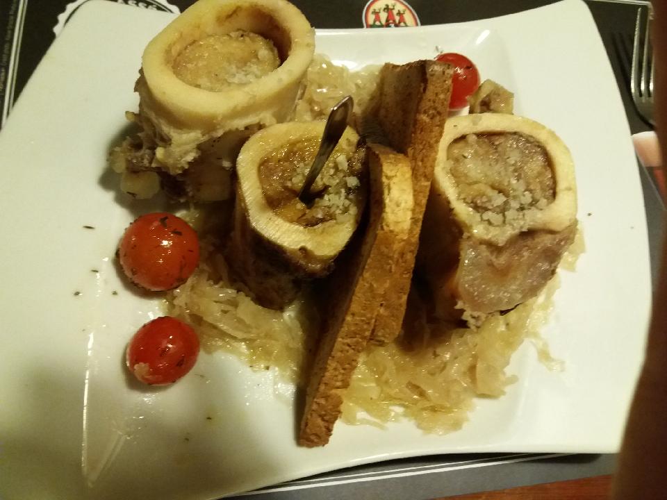 Ça fait quinze ans que je viens manger chez vous, soit une bonne vingtaine de fois. Les plats sont bons, les serveurs sympas, la décoration intéressante. L'atmosphère est la plupart du temps très bruyante, type cantine, brouhaha. Aussi, je suis aujourd'hui déçue de constater que mon plat favori, l'assiette d' os à moelle, a à peine contenu deux cuillères de moelle pour pratiquement 10 E... Si je ne me trompe en quelques mois ce plat a pris plus de 2E pour une quantité amoindrie. Il y a 10 ans, le prix était de 4,5 E pour une quantité double d'os à moelle. Et en plus c'était meilleur avec la salade que la choucroute que je ne mange d'ailleurs jamais... Alors je ne sais pas quelle est l'explication mais le prix est exhorbitant pour infime quantité que j'ai pu manger d'os à moelle.
