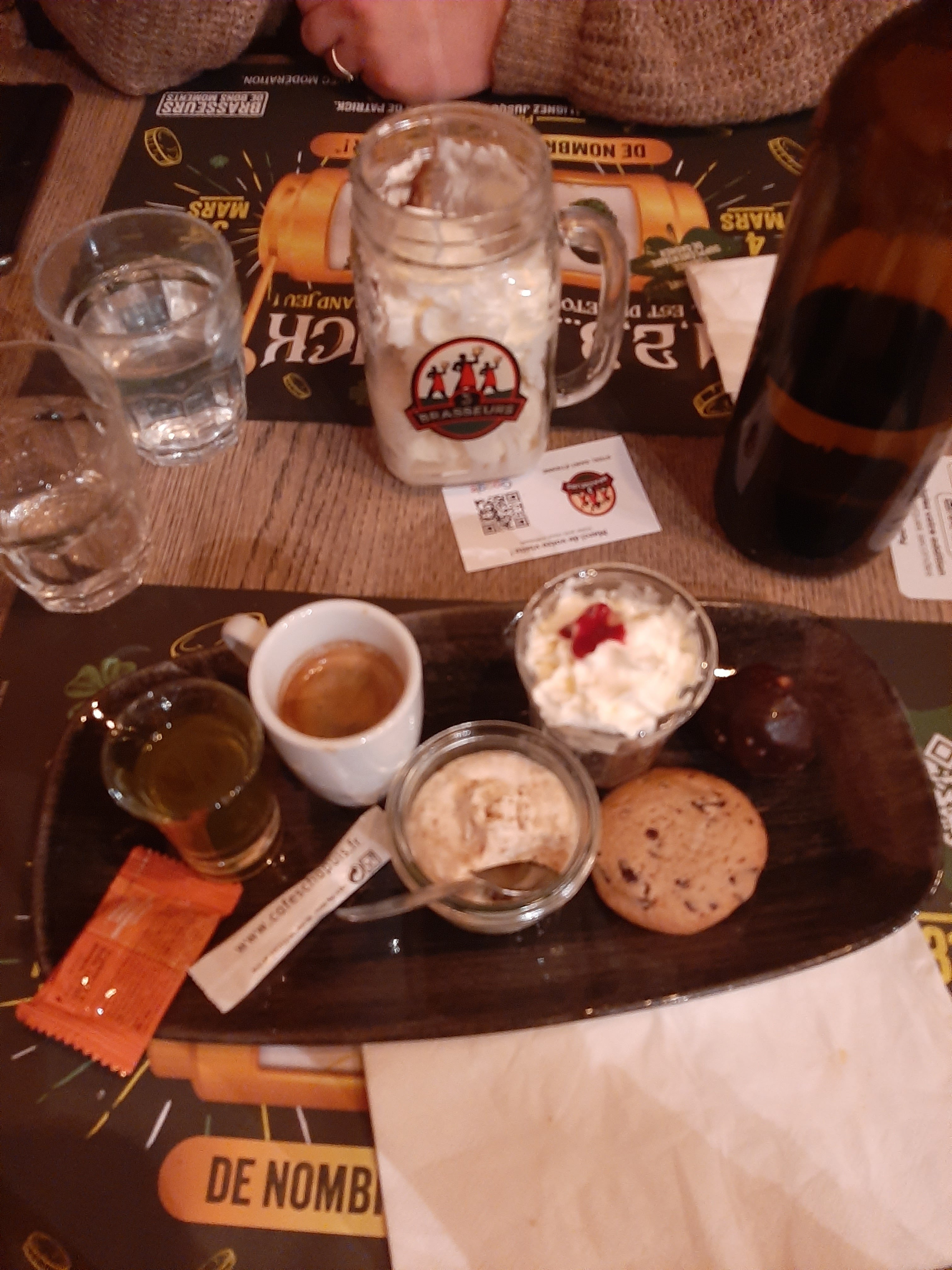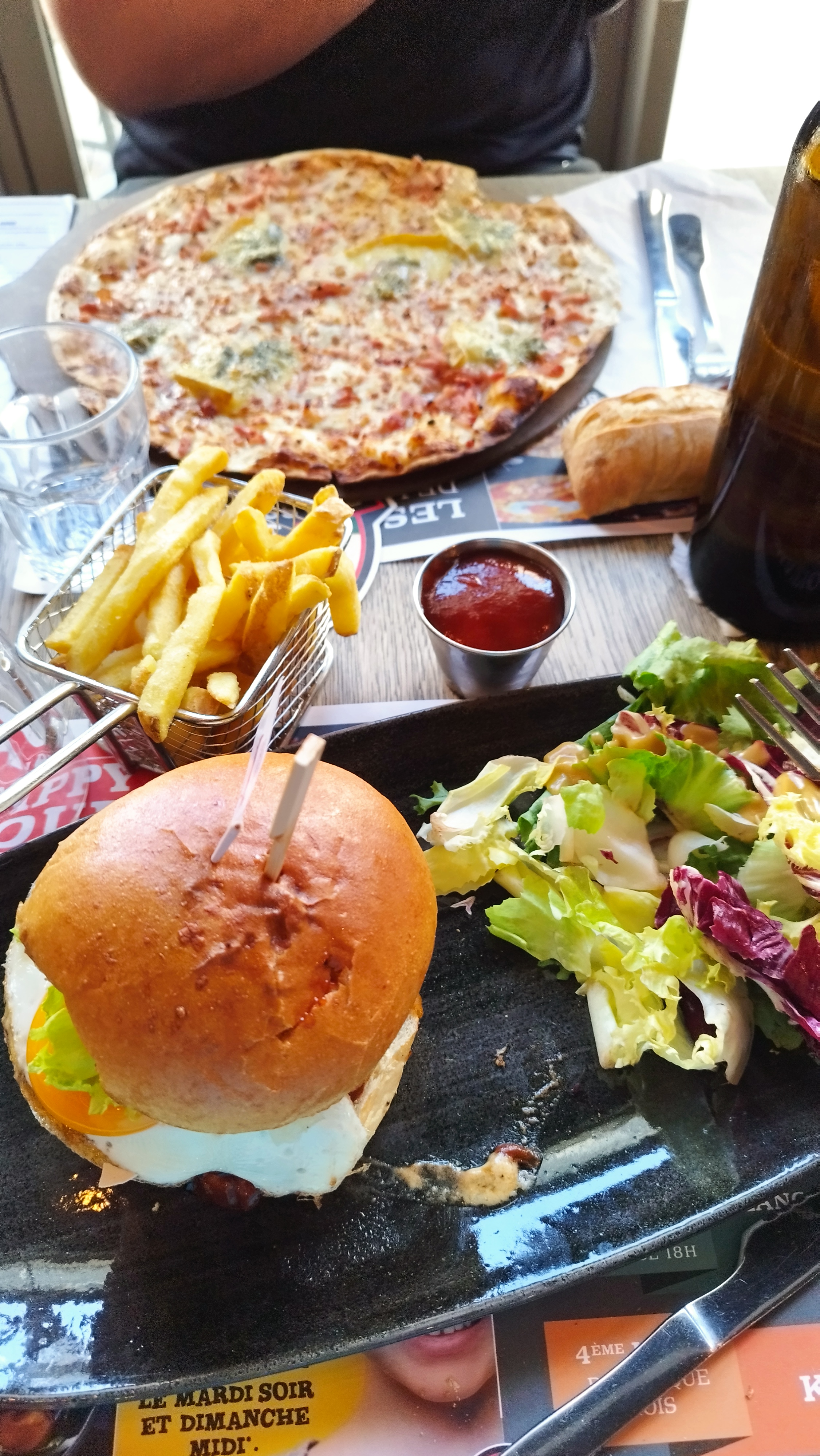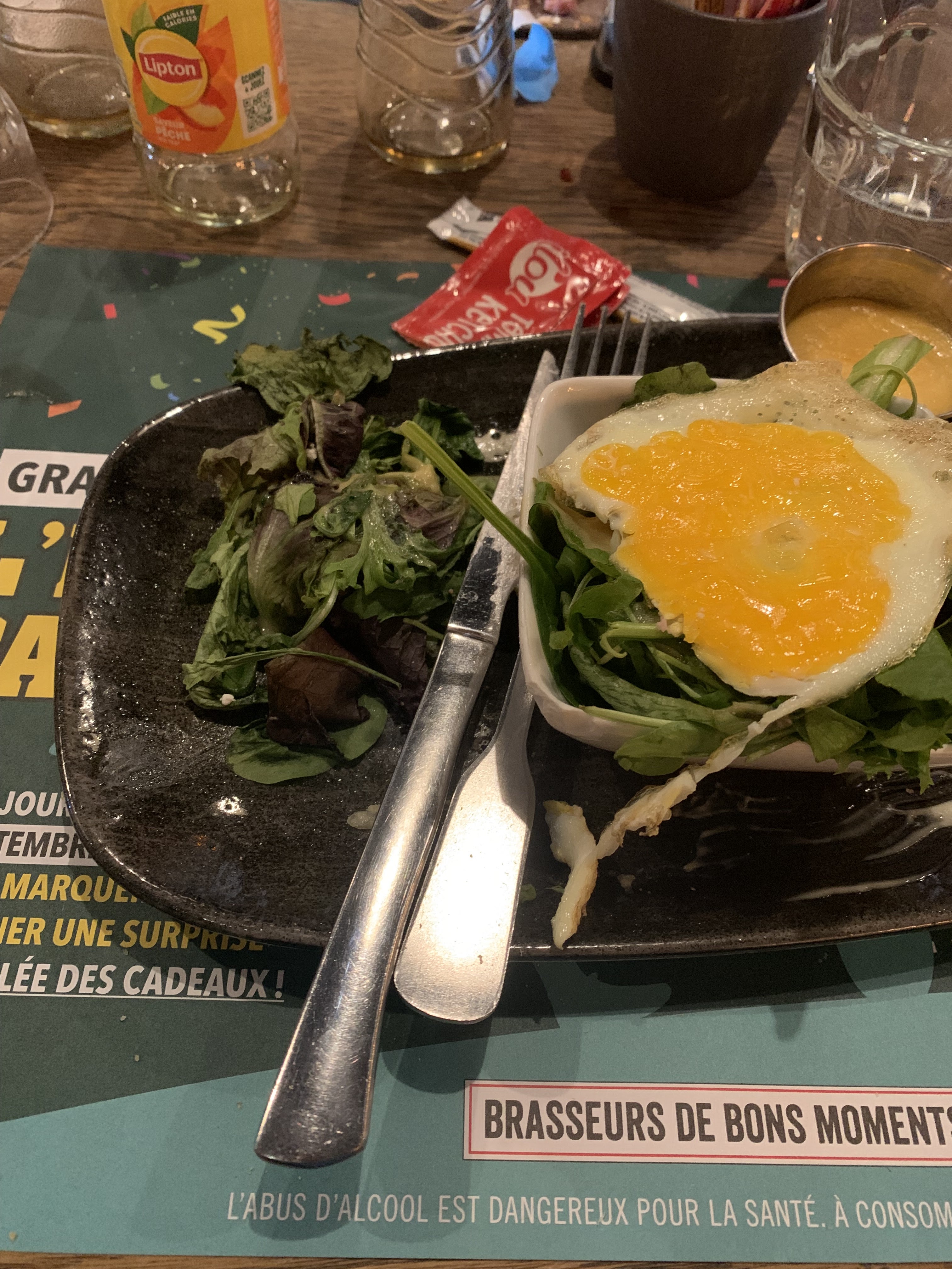 Un repas à 4 ! Repas assez long … nous somme arrivé mais Cela dis nous avons bien vu que l’équipe faisait au mieux pour nous servir et prendre commande ! Ce n’est pas la première fois que nous venons et nous avons jamais autant attendu alors au dire que ce n’était pas « grave » nous avons profité en famille ! De bonne bières ! Cuisine bonne aussi ! Par contre je ne recommanderais pas le croque cheddar .. juste déçu la dessus ! Il devais y avoir du jambon de la crème du cheddar et un œuf. Je n’ai n’ai eu ni de jambon ni de crème … j’ai eu 3 bout de pain hamburger et du cheddar … Le reste était très bien comme d’habitude !