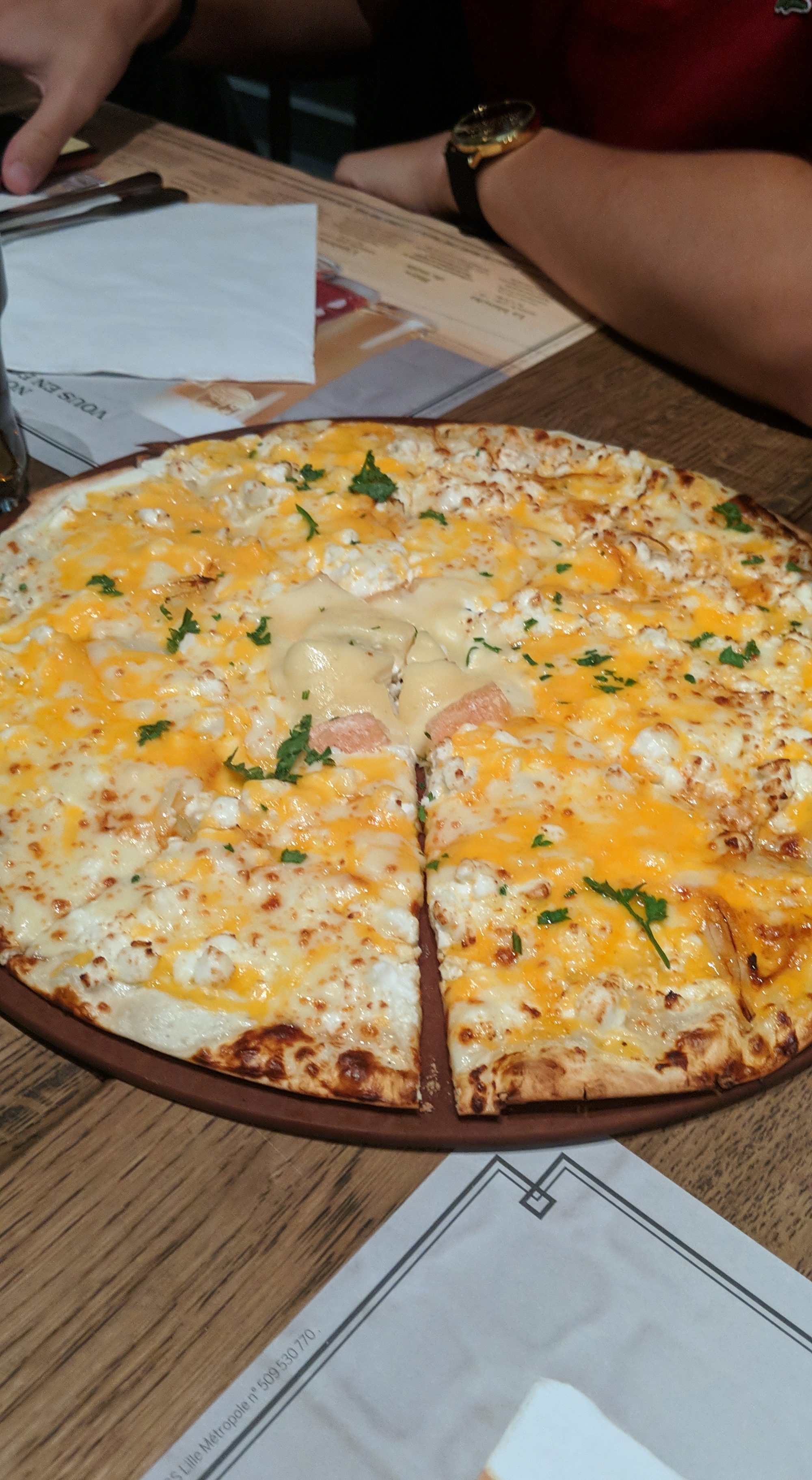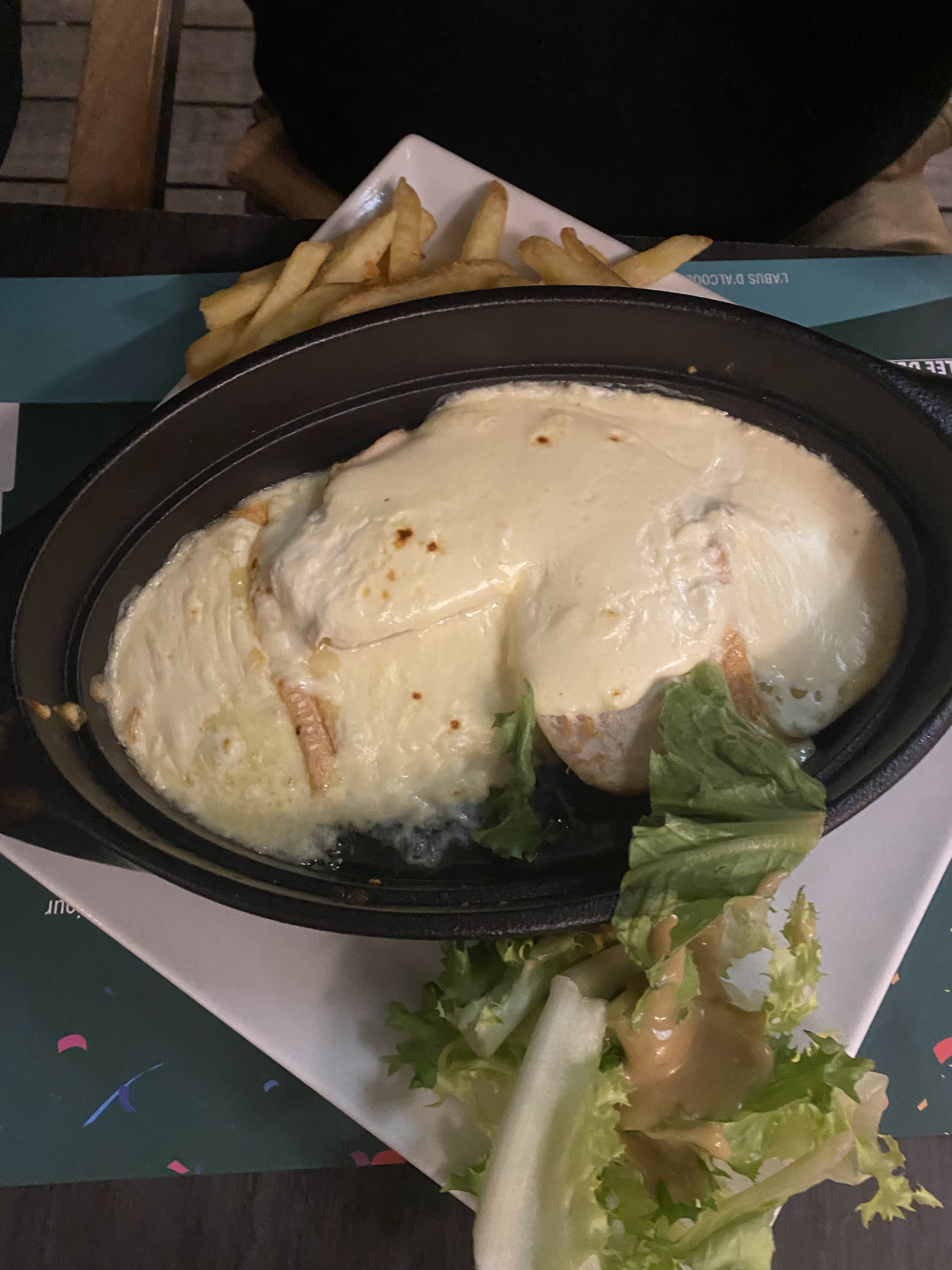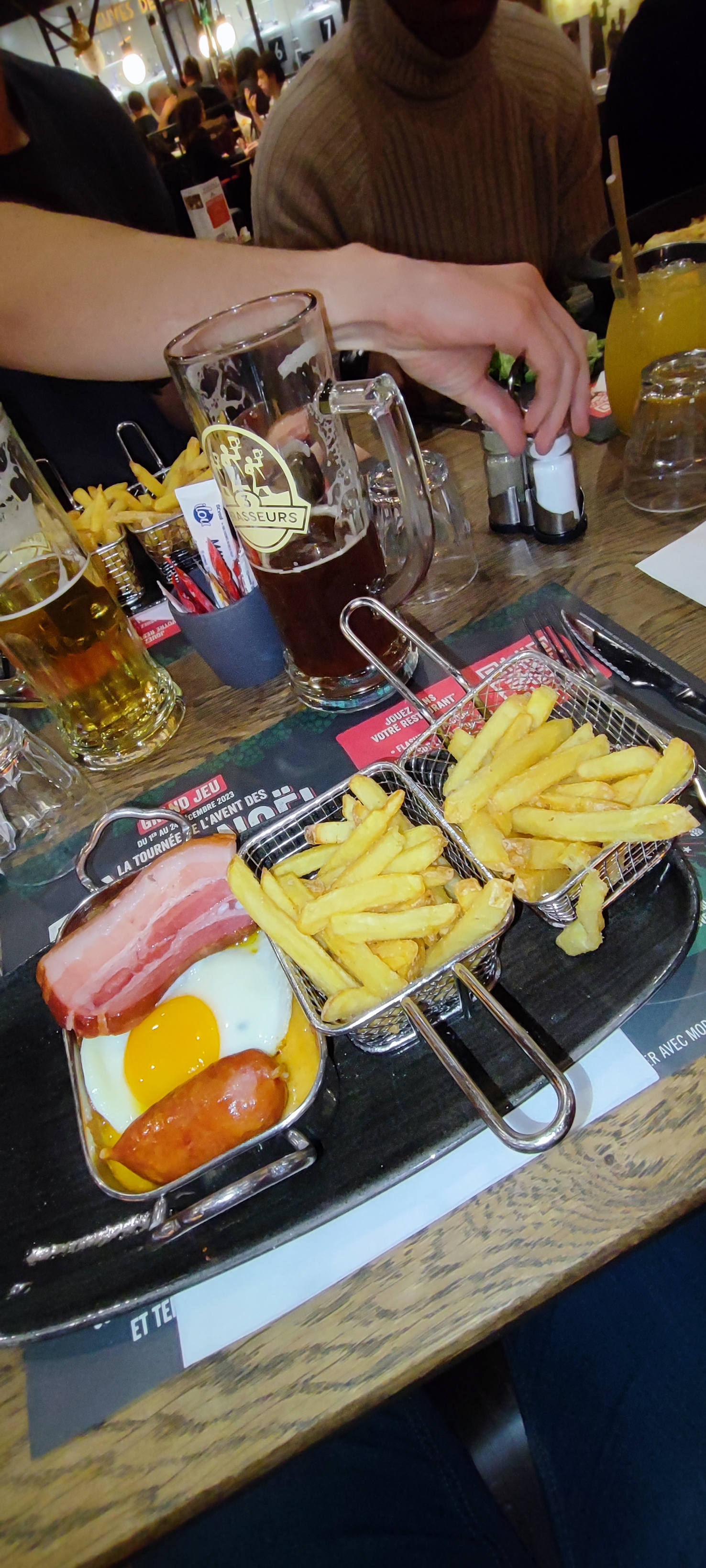 Un repas à 4 ! Repas assez long … nous somme arrivé mais Cela dis nous avons bien vu que l’équipe faisait au mieux pour nous servir et prendre commande ! Ce n’est pas la première fois que nous venons et nous avons jamais autant attendu alors au dire que ce n’était pas « grave » nous avons profité en famille ! De bonne bières ! Cuisine bonne aussi ! Par contre je ne recommanderais pas le croque cheddar .. juste déçu la dessus ! Il devais y avoir du jambon de la crème du cheddar et un œuf. Je n’ai n’ai eu ni de jambon ni de crème … j’ai eu 3 bout de pain hamburger et du cheddar … Le reste était très bien comme d’habitude !