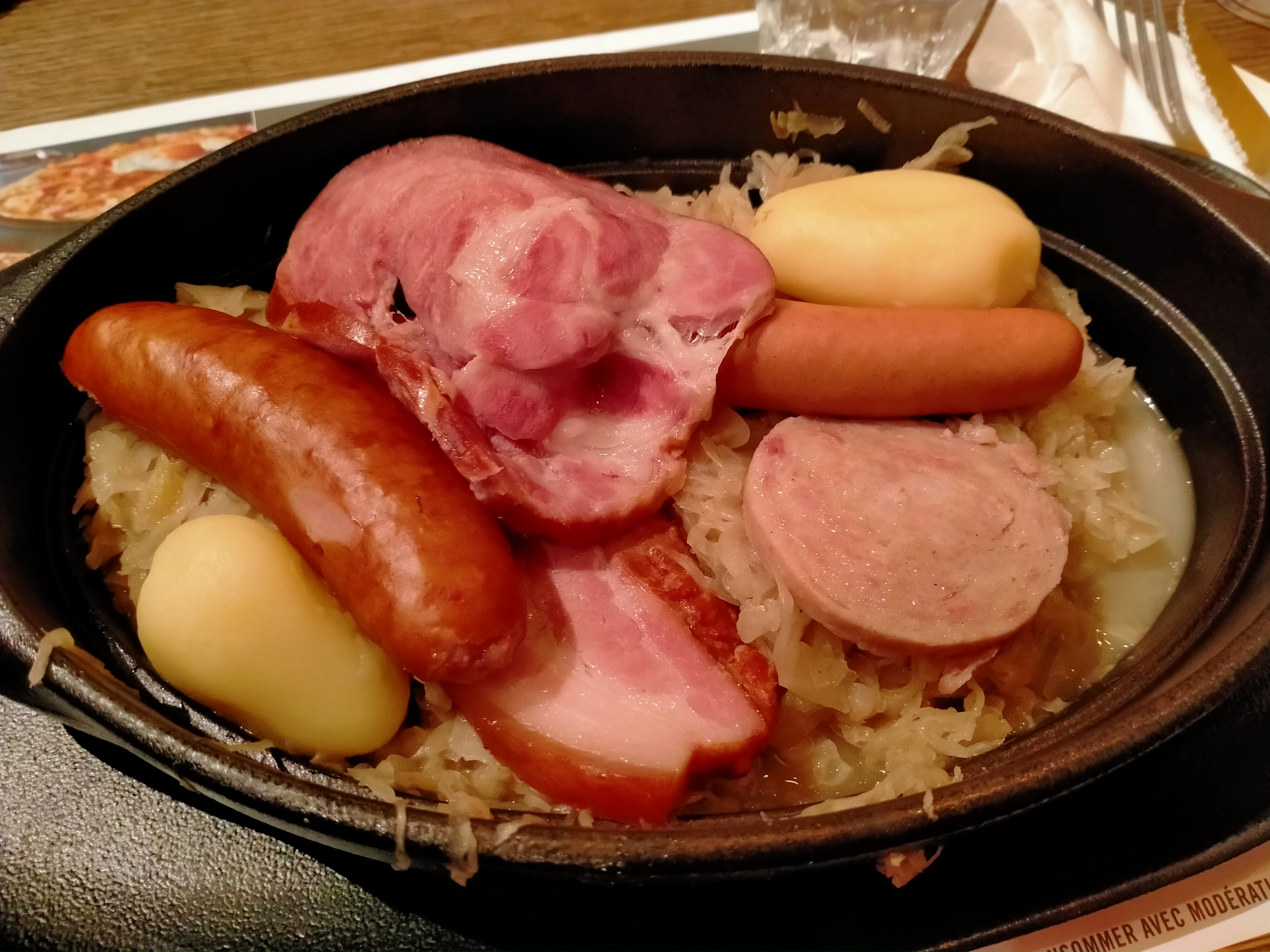 Horrible Choucroute servie réchauffée pour ne pas dire passée. Saucisse de Strasbourg noire … Le gout est à l’image de la piètre présentation ! C’est une honte de servir ce genre de plats … Restaurant à fuir.