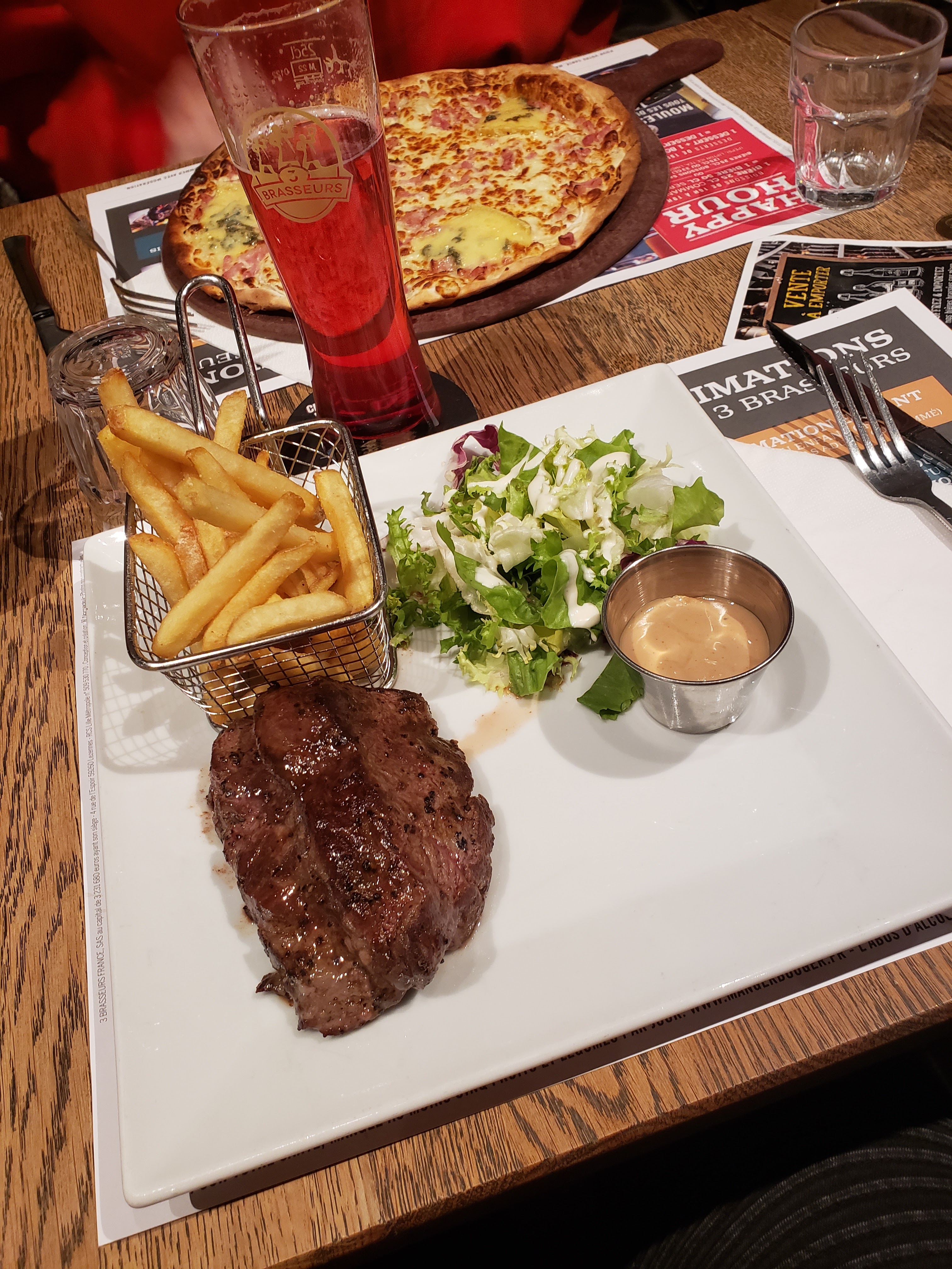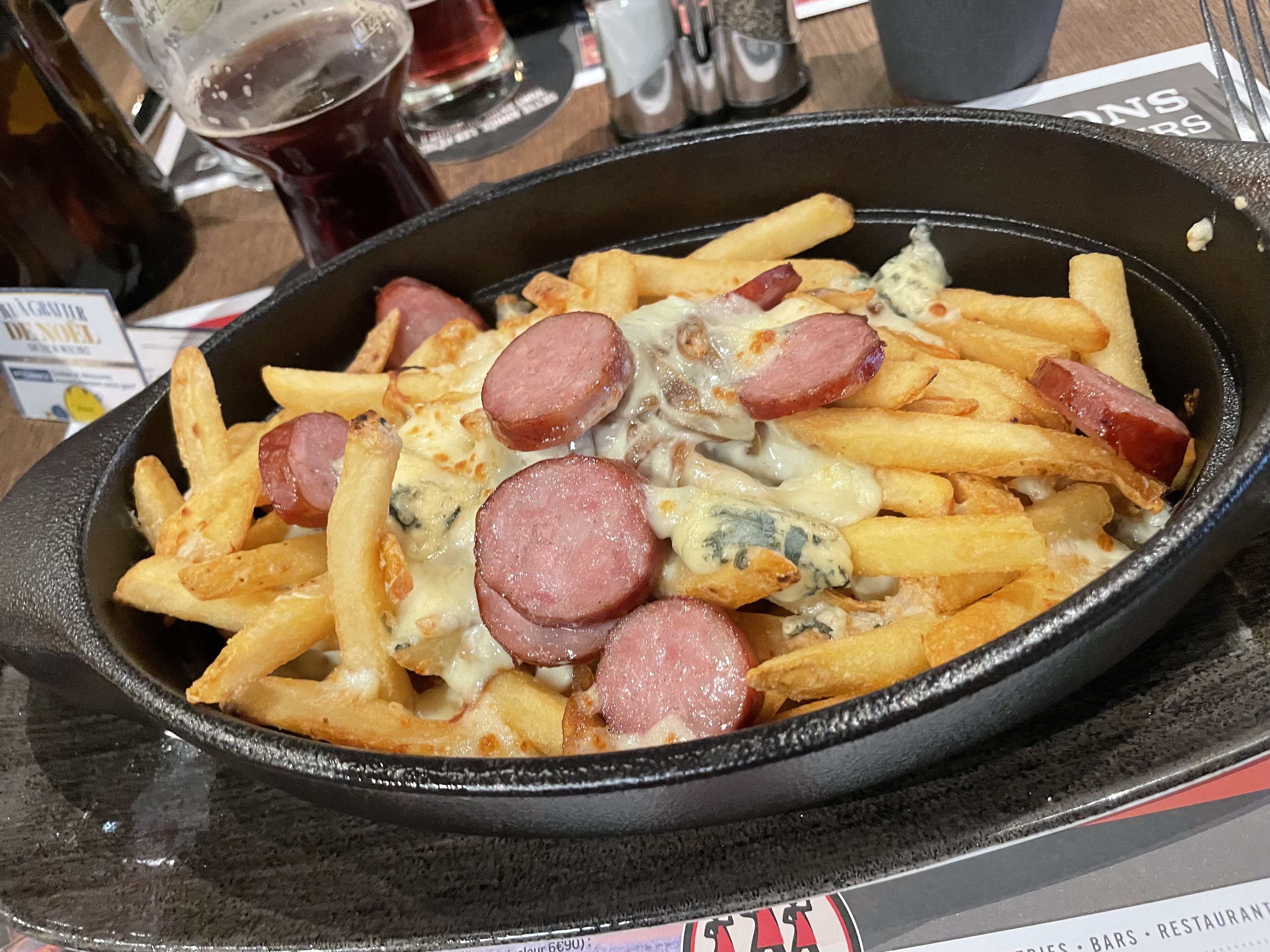 Je suis allée deux fois dans ce restaurant. De manière générale, il est plutôt bon. La première fois, j'ai pris un ensemble de spécialités. Un peu gras, mais le plat veut ça. J'étais ravie. La seconde fois, un panier apéritif (rempli uniquement de fritures diverses) et une entrecôte frites/salade sauce maroilles. Les frites n'étaient pas fraîches (produit sans doute congelé), l'entrecôte très bonne mais la sauce maroilles n'était pas très forte (n'ayez pas peur pour ceux qui veulent goûter !). Niveau dessert, j'ai mangé une bonne et large crème brûlée. Le service est rapide et les serveurs agréables. Pour finir, les bières sont délicieuses : j'ai adoré la rouge aux fruits rouges et la ambrée. Bon appétit !