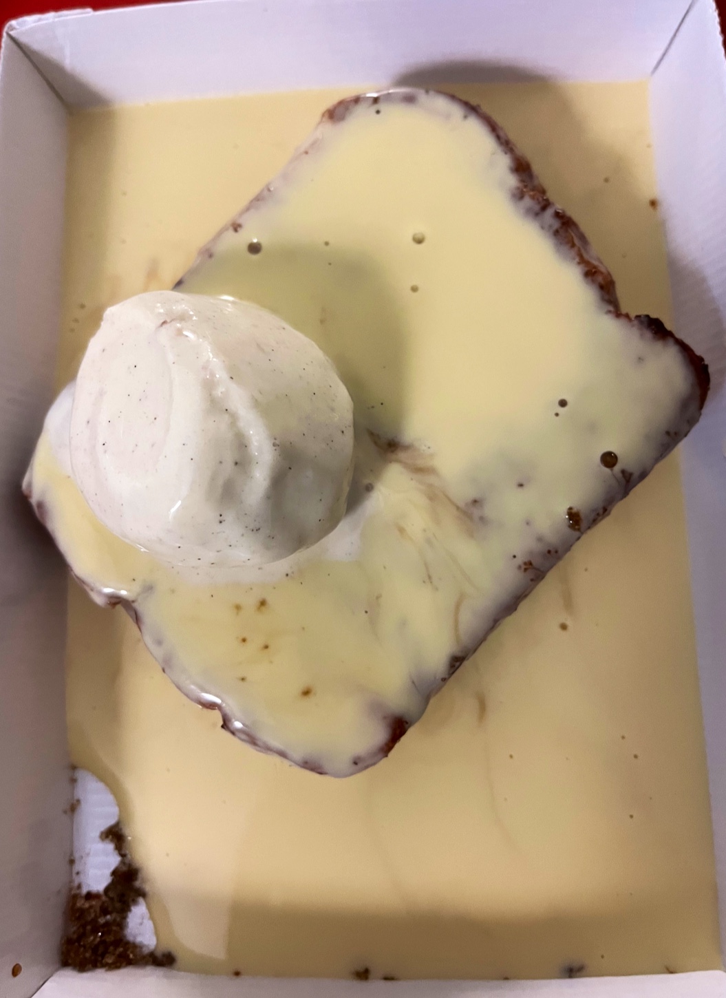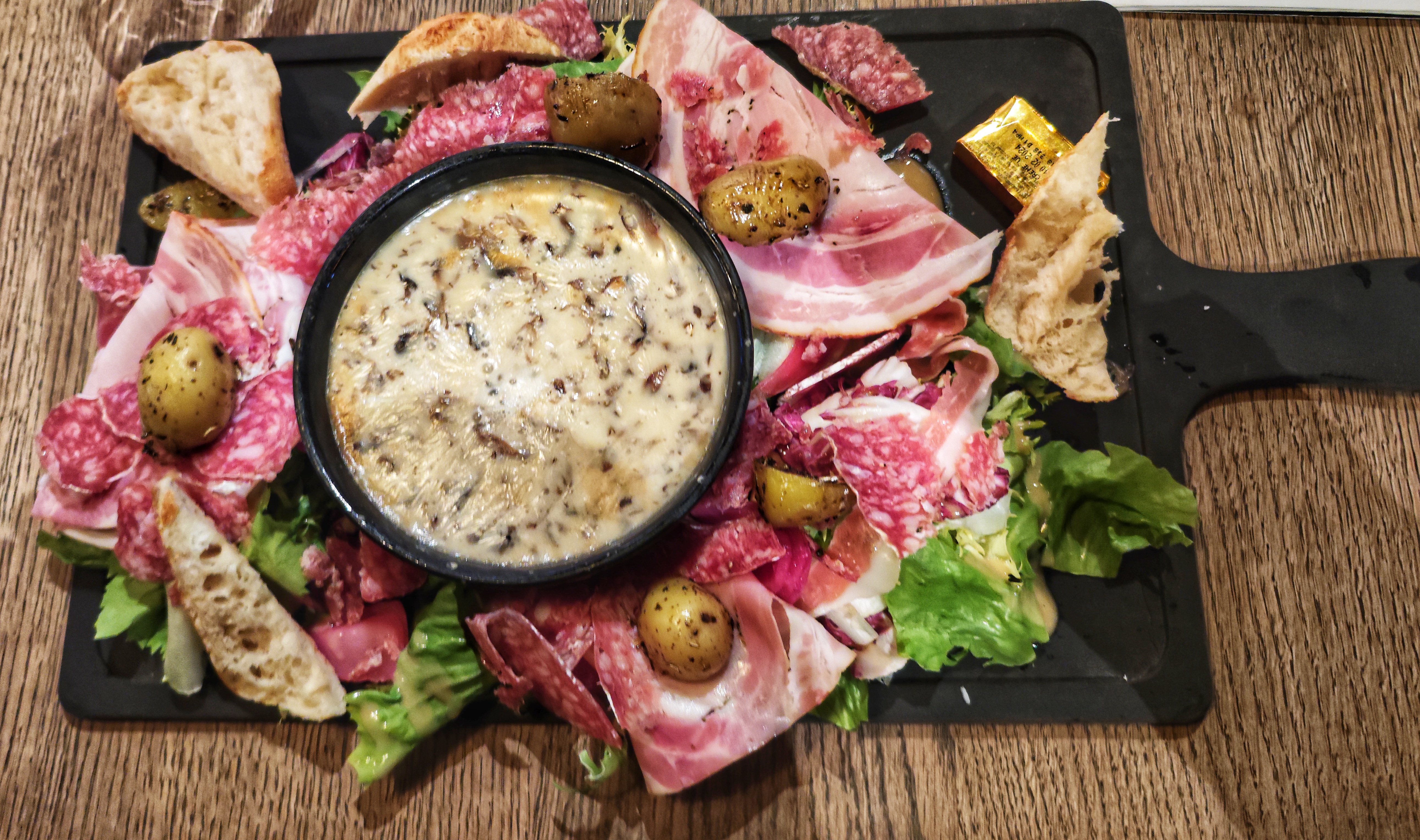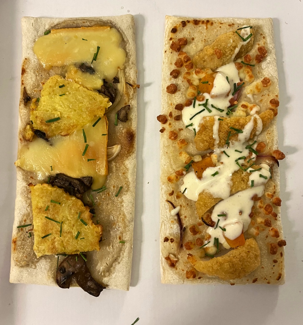J'ai commandé un duo tarti-flam Cesar et chèvre. La taille du produit était respectable et il était très savoureux. En outre, j'ai commandé une brioche façon pain perdu. Elle était accompagnée de crème vanille et de glace. C'était vraiment délicieux ! Je recommande vivement ce dessert.