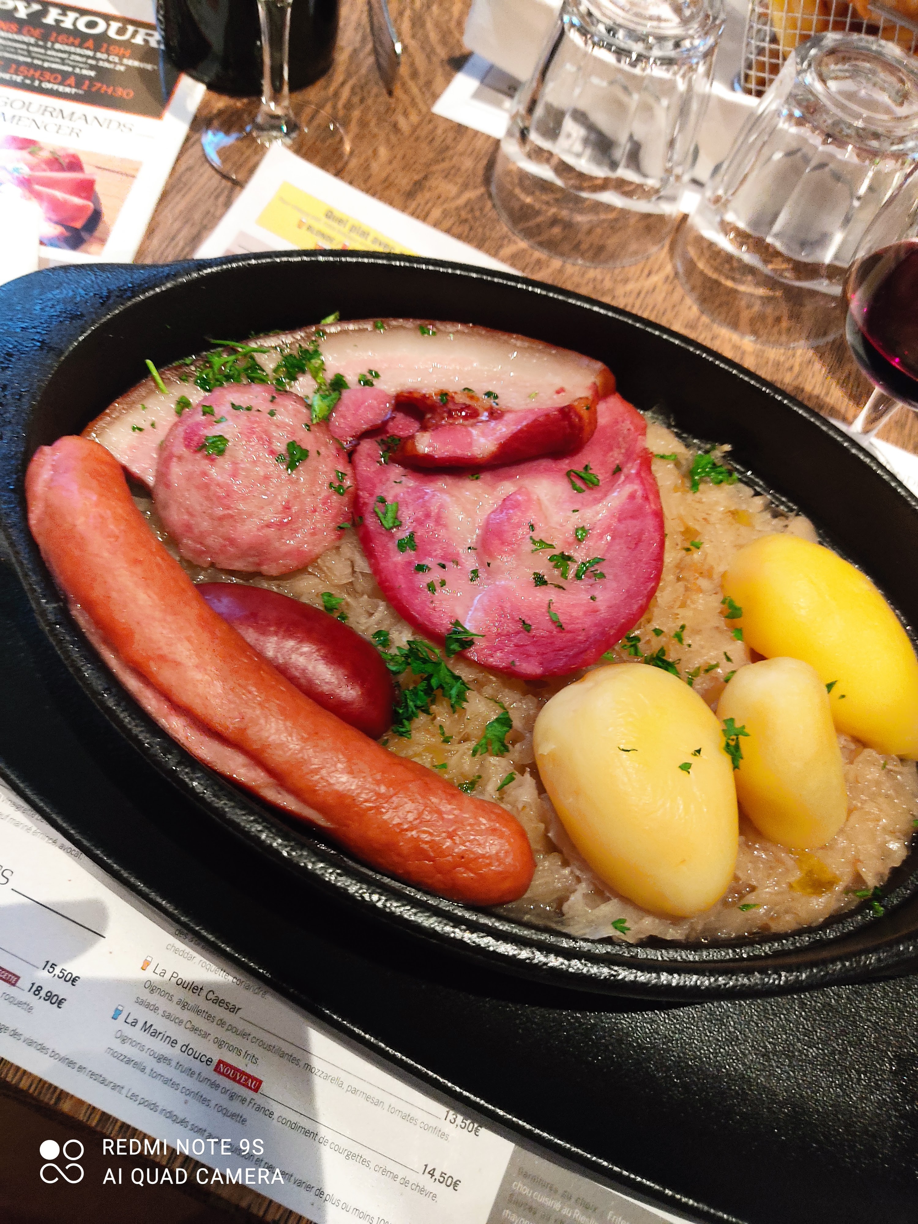 décor sympa serveur super. mais la bouffe ! émincer de bœuf que j'ai retrouver sous des frites cuites au four dur inmangeable noyer dans du ketchup pour 15 eu ça fait mal surtout que un émincer de bœuf c'est pas du bourguignon.!! première impression pas bonne. la choucroute très bien. rien à dire.