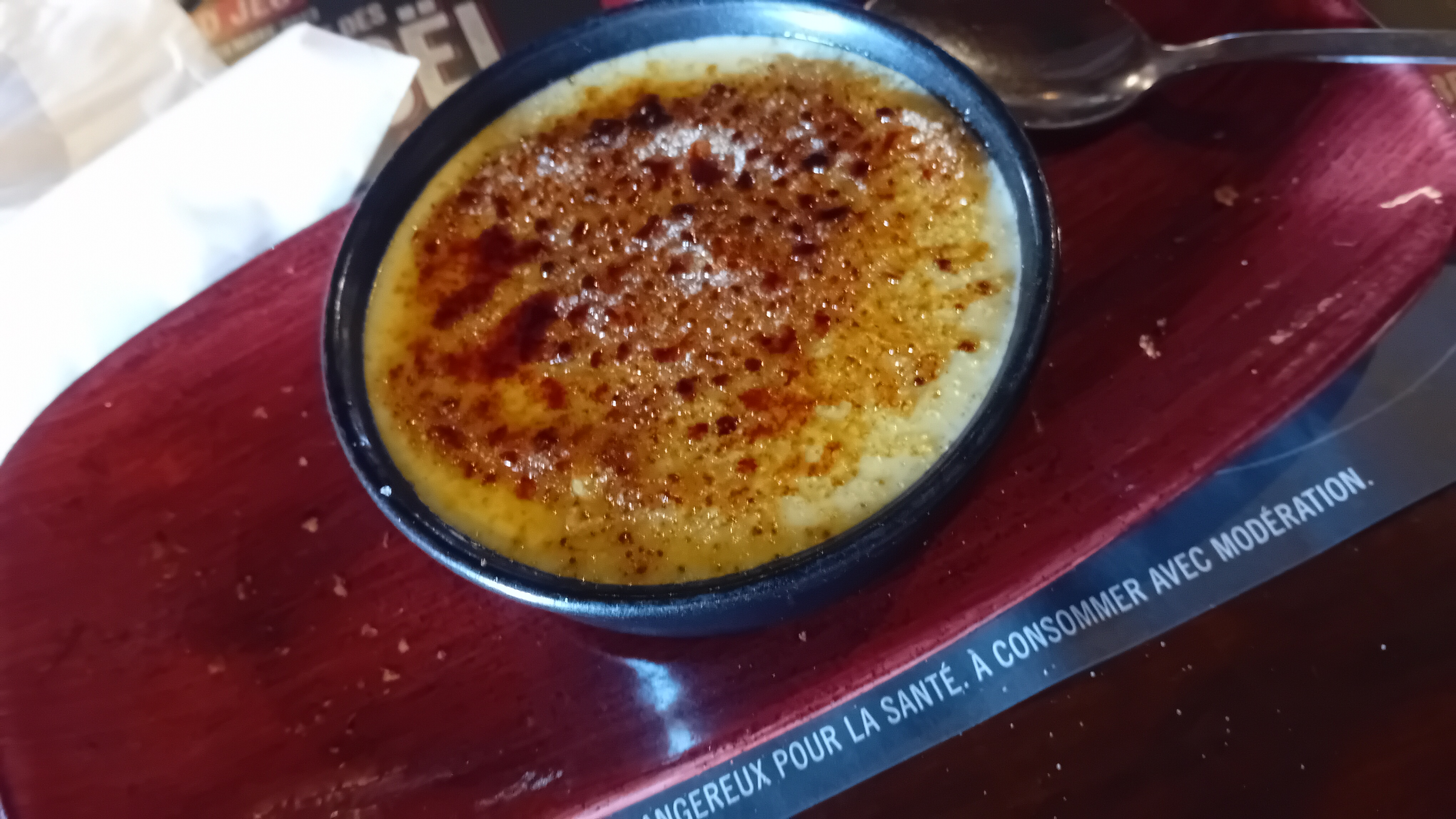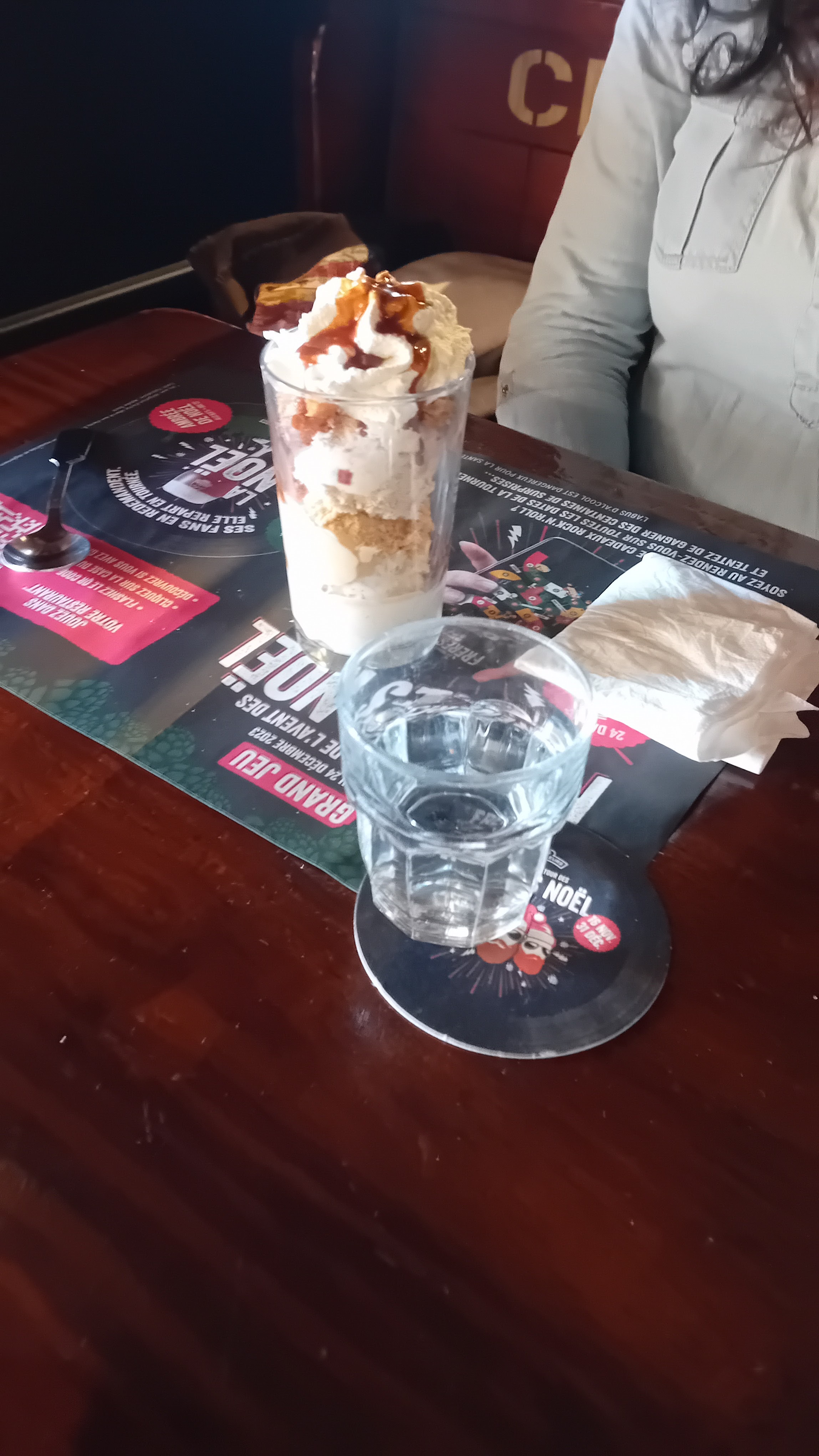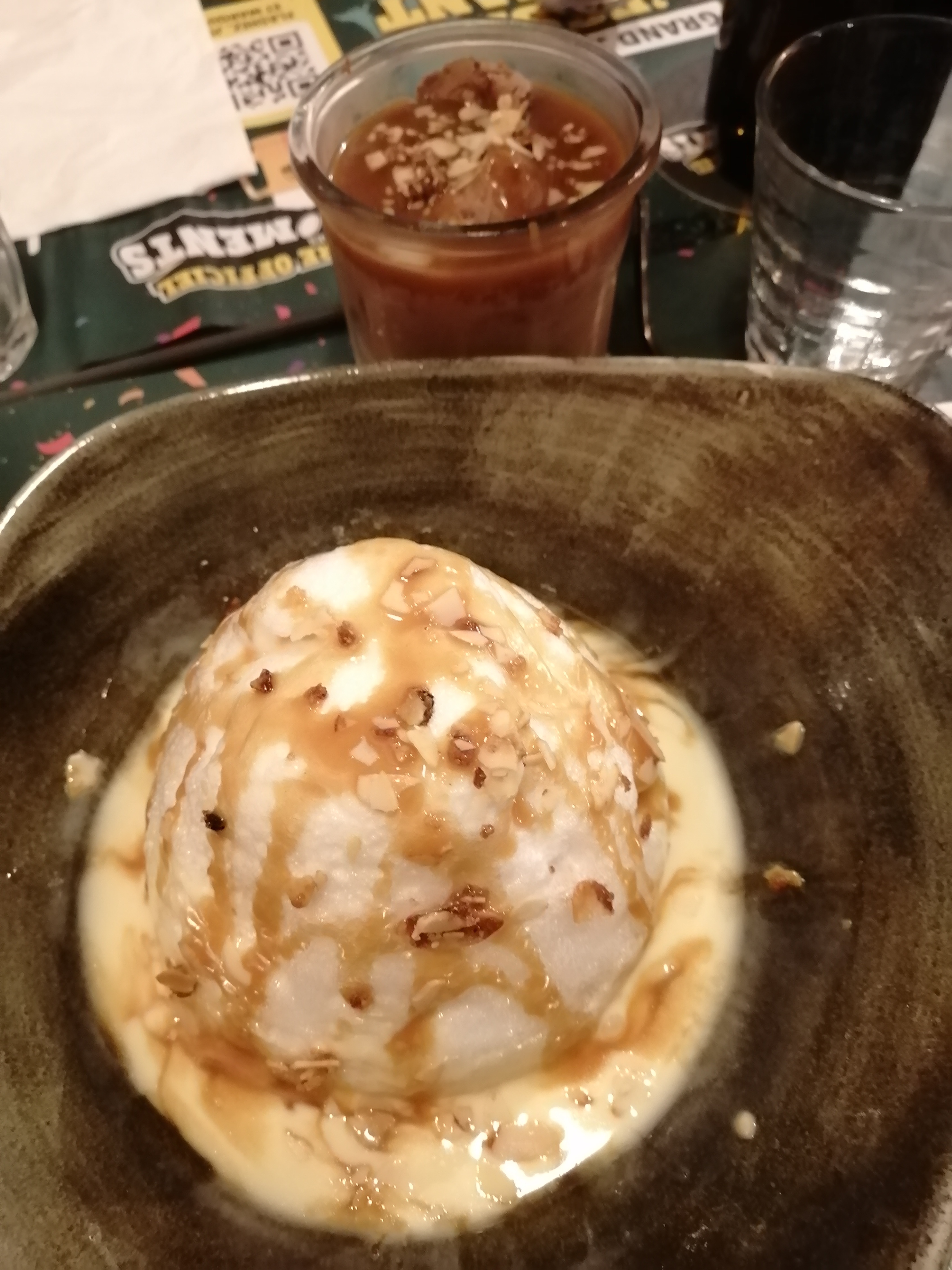 Niveau boissons, c’est très compliqué. Spritz a revoir, Rhum, vodka entrée de gamme. Rupture sur le côté du Rhône rouge. Sur une « carte » de 3 vins rouge… Dommage car le reste passe bien. Ps: j’oubliais les « verres à vins »
