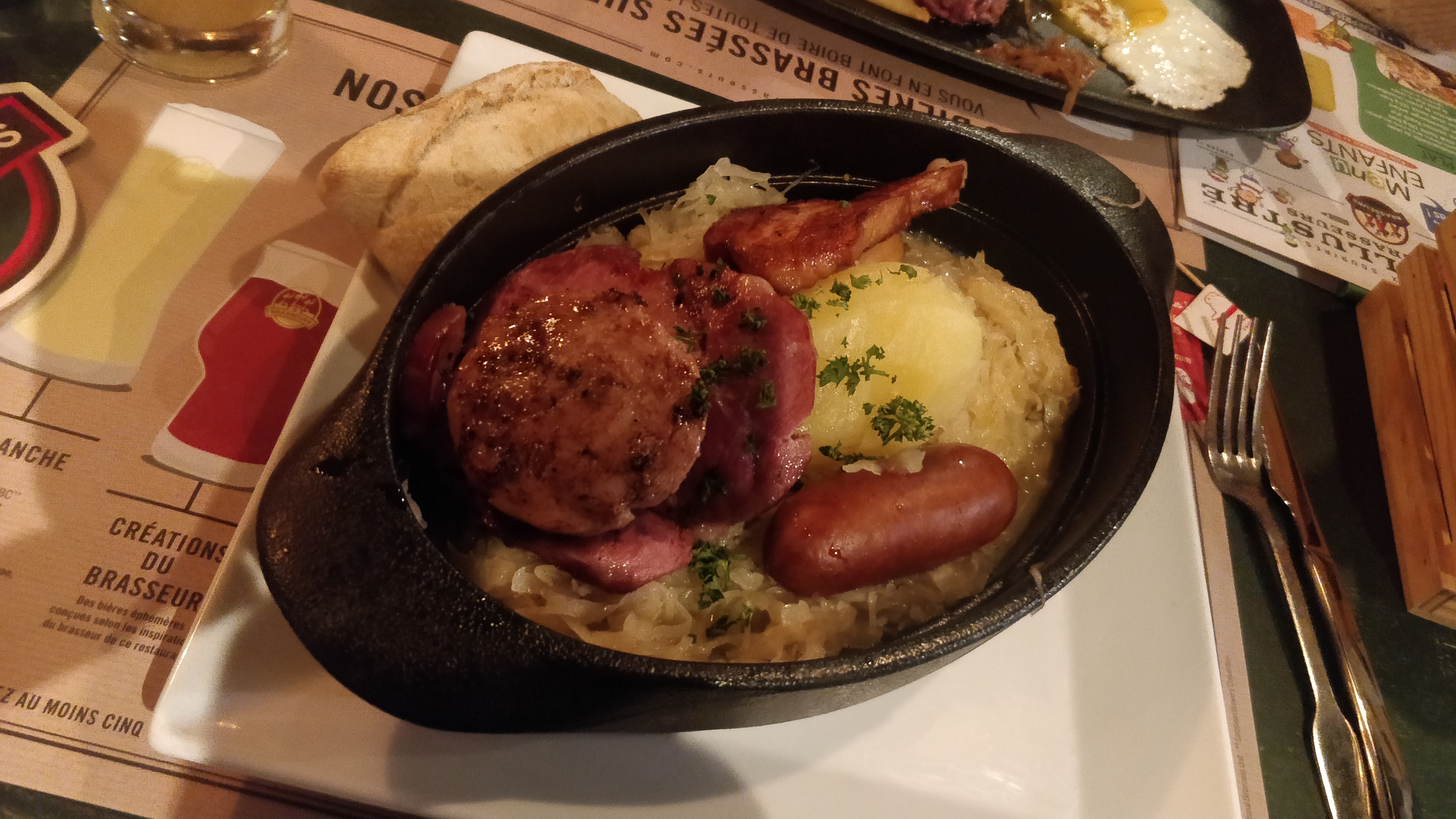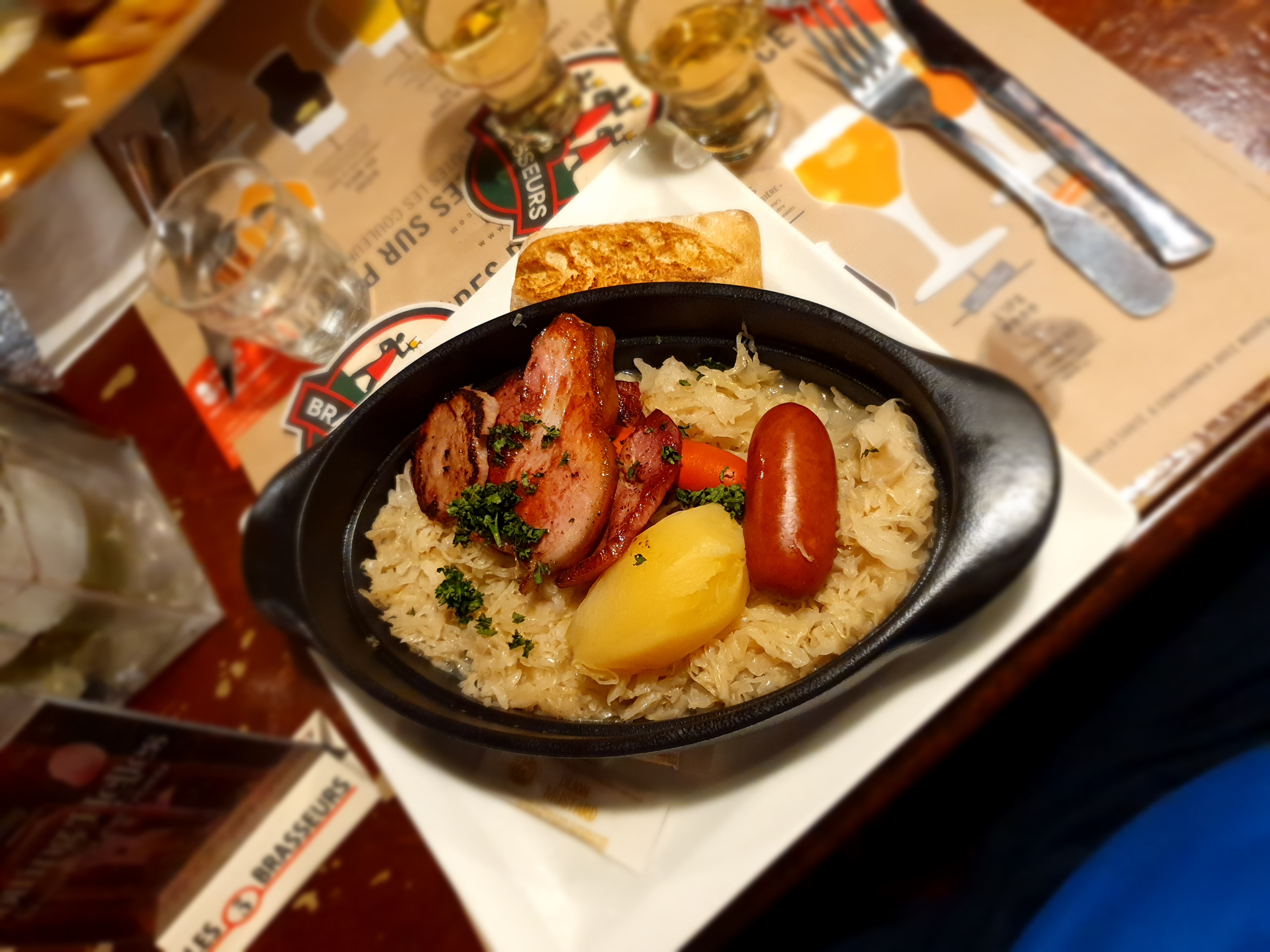 Une choucroute de la mer succulente accompagnée d'une bonne bière ambrée en pinte. Excellent. Sans parler de la gaufre qui est croustillante et moelleuse. Parfait. Le service et l'ambiance sont toujours parfait.