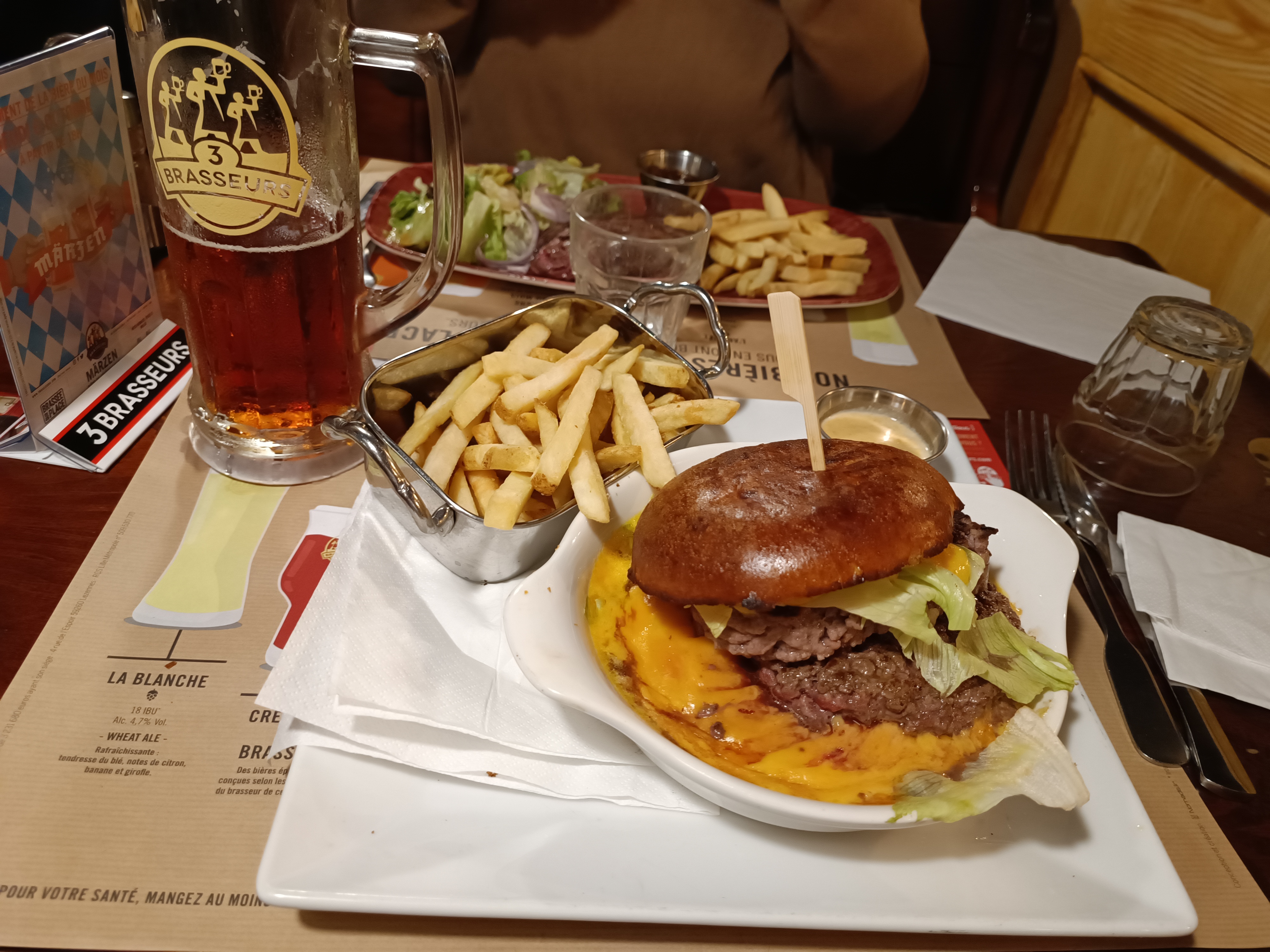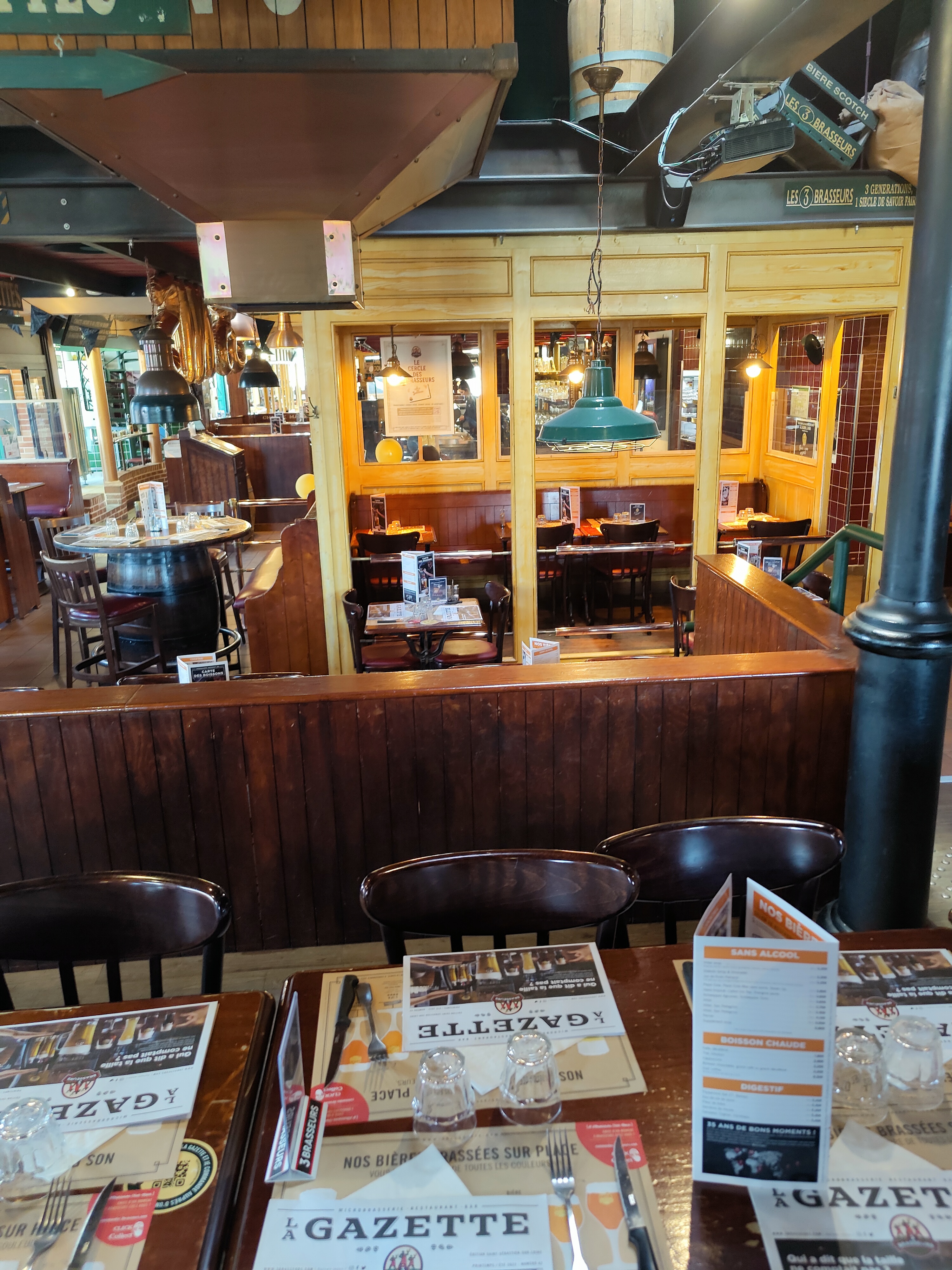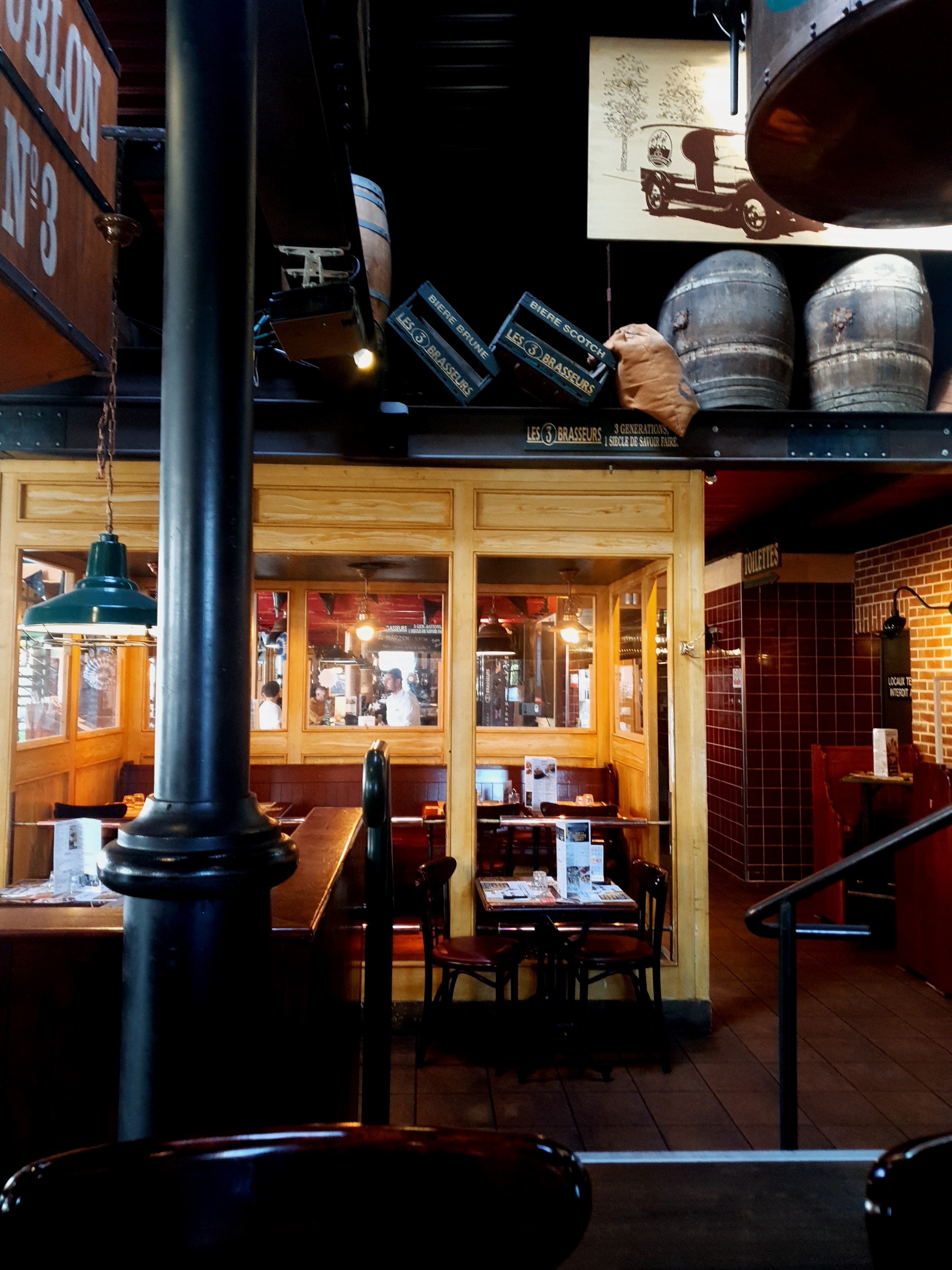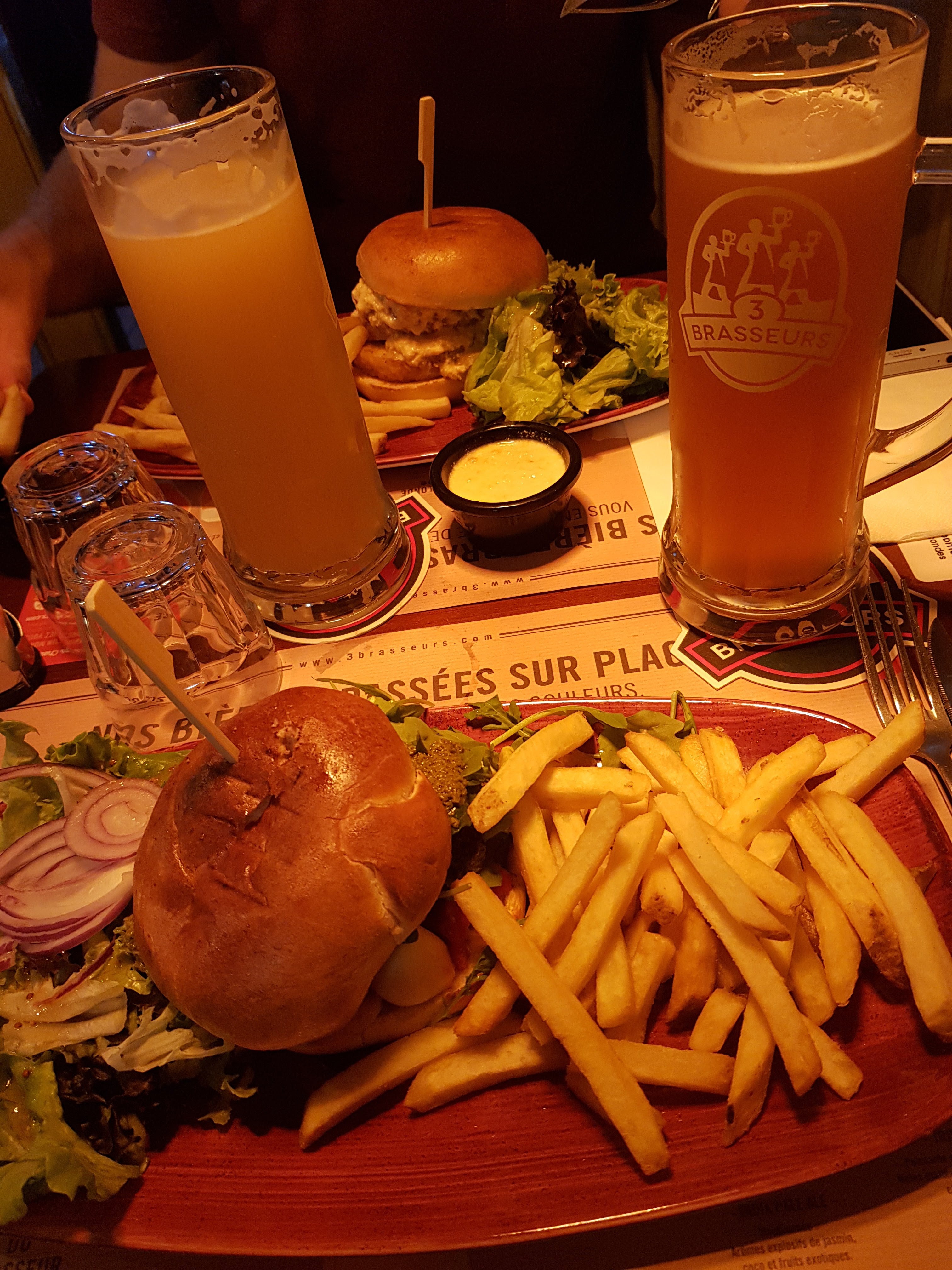Première expérience au 3 brasseurs, pas déçu ! On est venu un samedi soir à 19h30, il y avait un peu d'attente dehors. Une fois rentrée à l'intérieur aux alentours de 19h45, on nous indique une attente de 45 minutes. Finalement, on en a attendu 30 ! Et la commande était prise directement :) Serveurs très sympas, bonne ambiance ! La cuisine est super bonne, les dessert également ! Attention ne venez pas ici pour un régime ;) Je recommande !