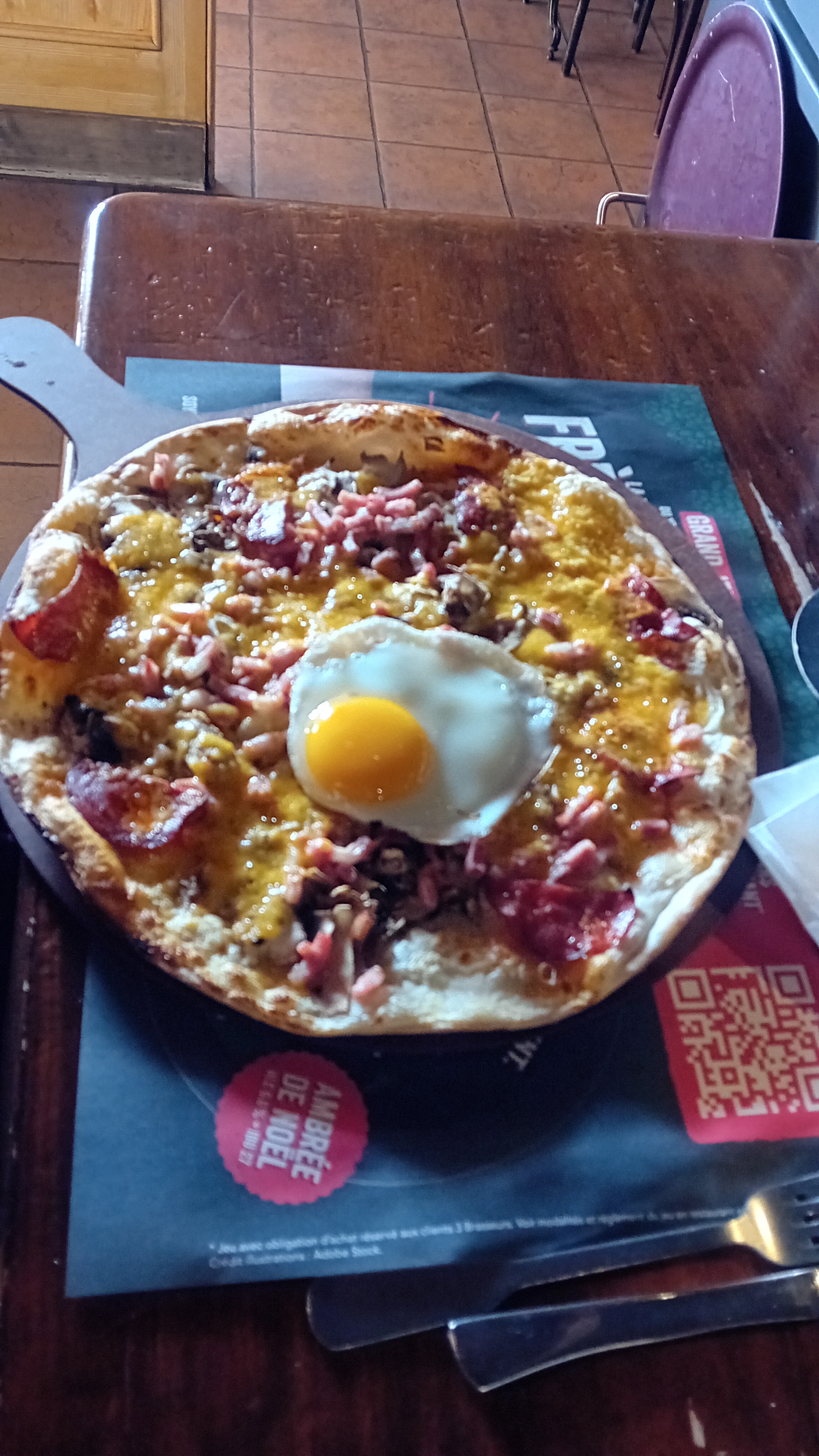 Très très déçus, nous ne reviendrons plus. C'était la première et dernière fois. Nourriture très sèche, pas fraîche. La cuisson du steak ne correspond pas du tout à celle que nous avons demandé . Trouvé du selofane dans le burger... Il manquait des éléments dans l'assiette, nous les avons demandés mais personne ne nous a apporté le manquant. Le plat était froid pour tout le monde. La flammekuch était pratiquement vide et cramée... Vraiment déçus.