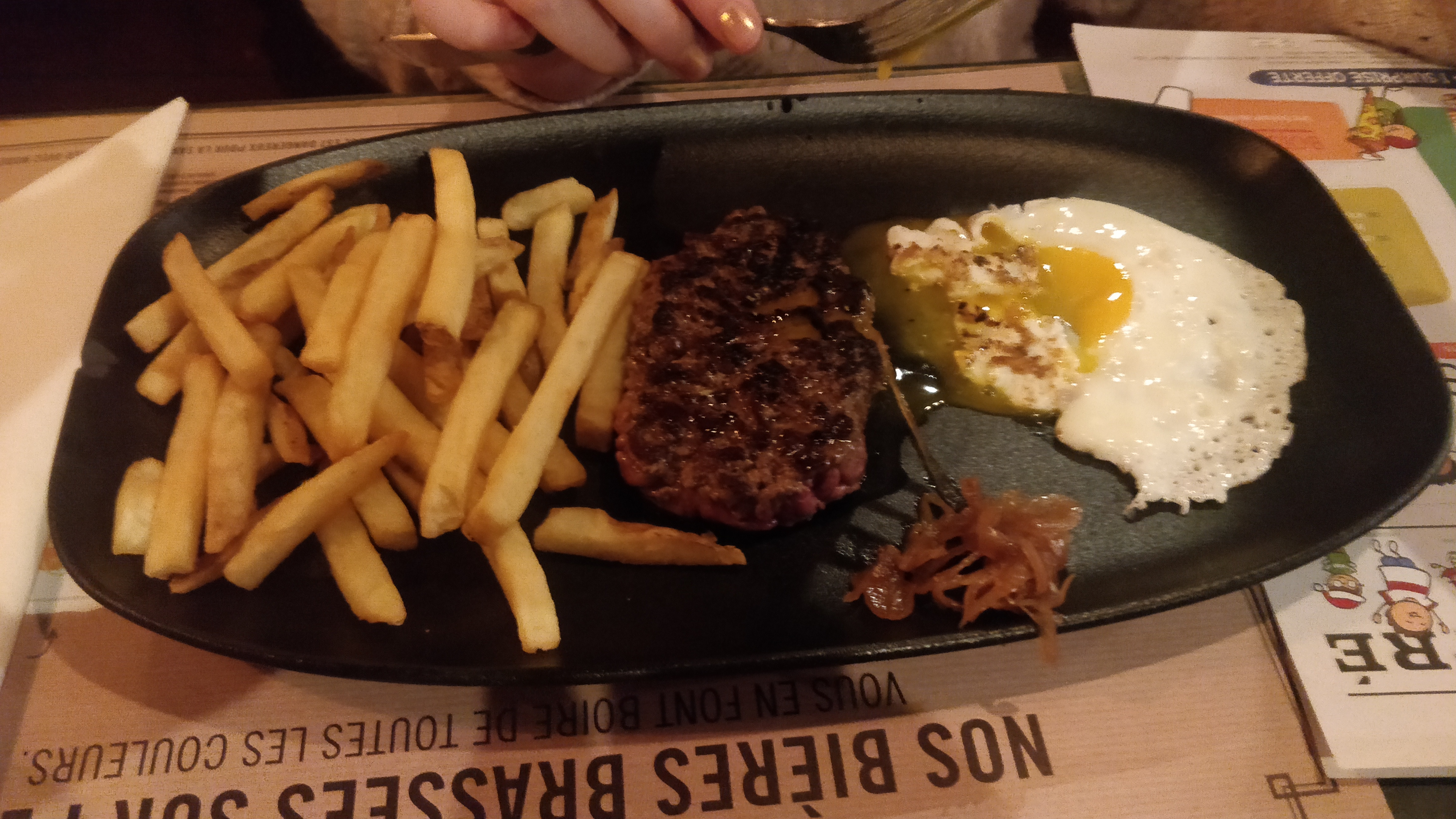 Bonjour, Super accueil et service, merci beaucoup ! Par contre, j'ai demandé une viande saignante et elle était bien cuite. Les frites ne sont pas maison. Et pas d'air dans le fond de la salle, un étouffoir, pas très bon de respirer ce gaz carbonique. Bonne journée.