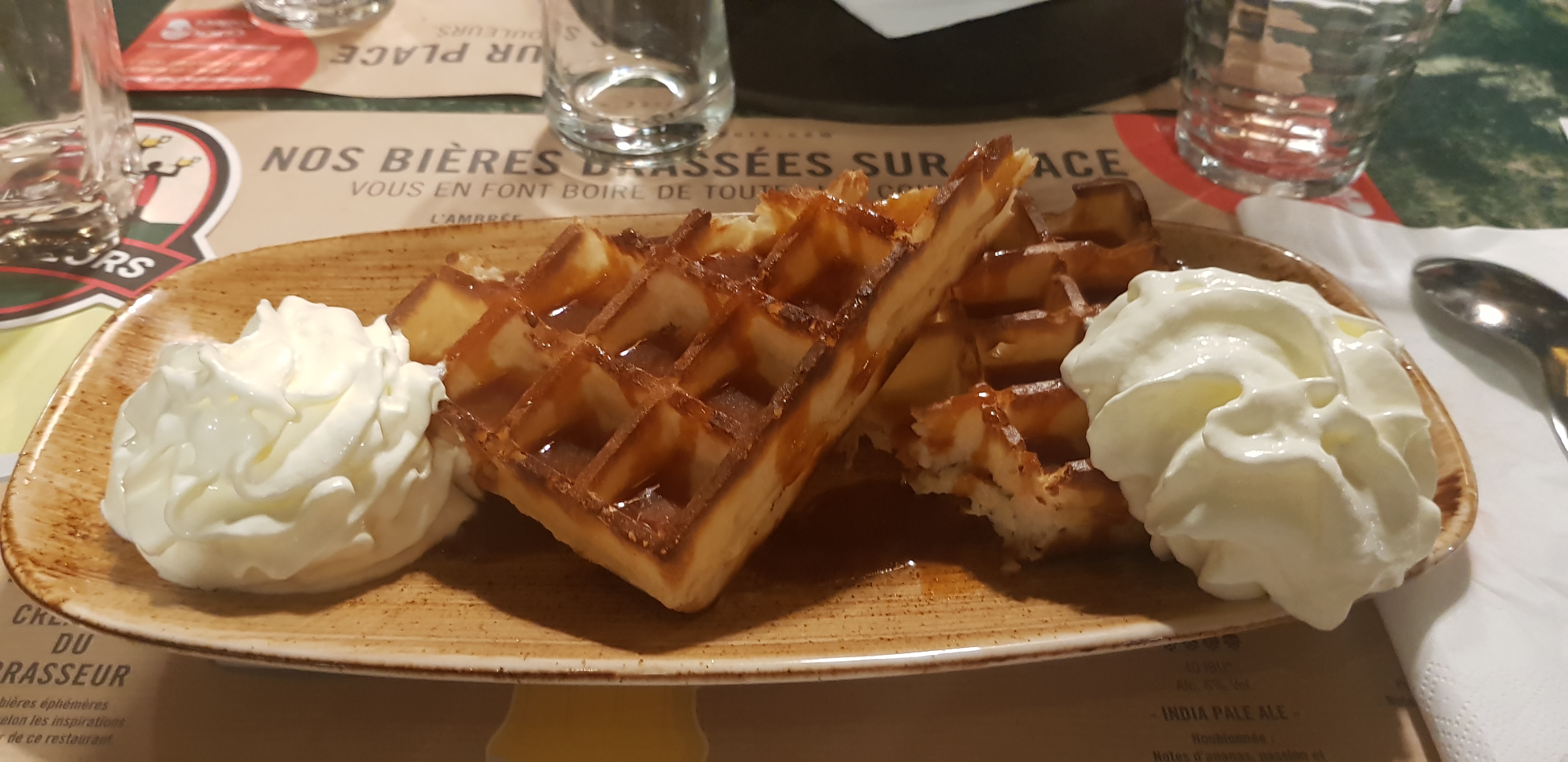 Très belle découverte. Un accueil et un service très professionnel et très sympathique. Fabrice est un serveur exceptionnel, très attentif, extrêmement jovial et particulièrement généreux, une belle dégustation des deux bières du moment pour notre table. Les bières sont nombreuses et très bonnes. Les assiettes sont généreuses et succulentes et les desserts sublime (une belle gaufre façon crème brûlée glace vanille) une tuerie. A très très bientôt. Une adresse à diffuser autour de vous