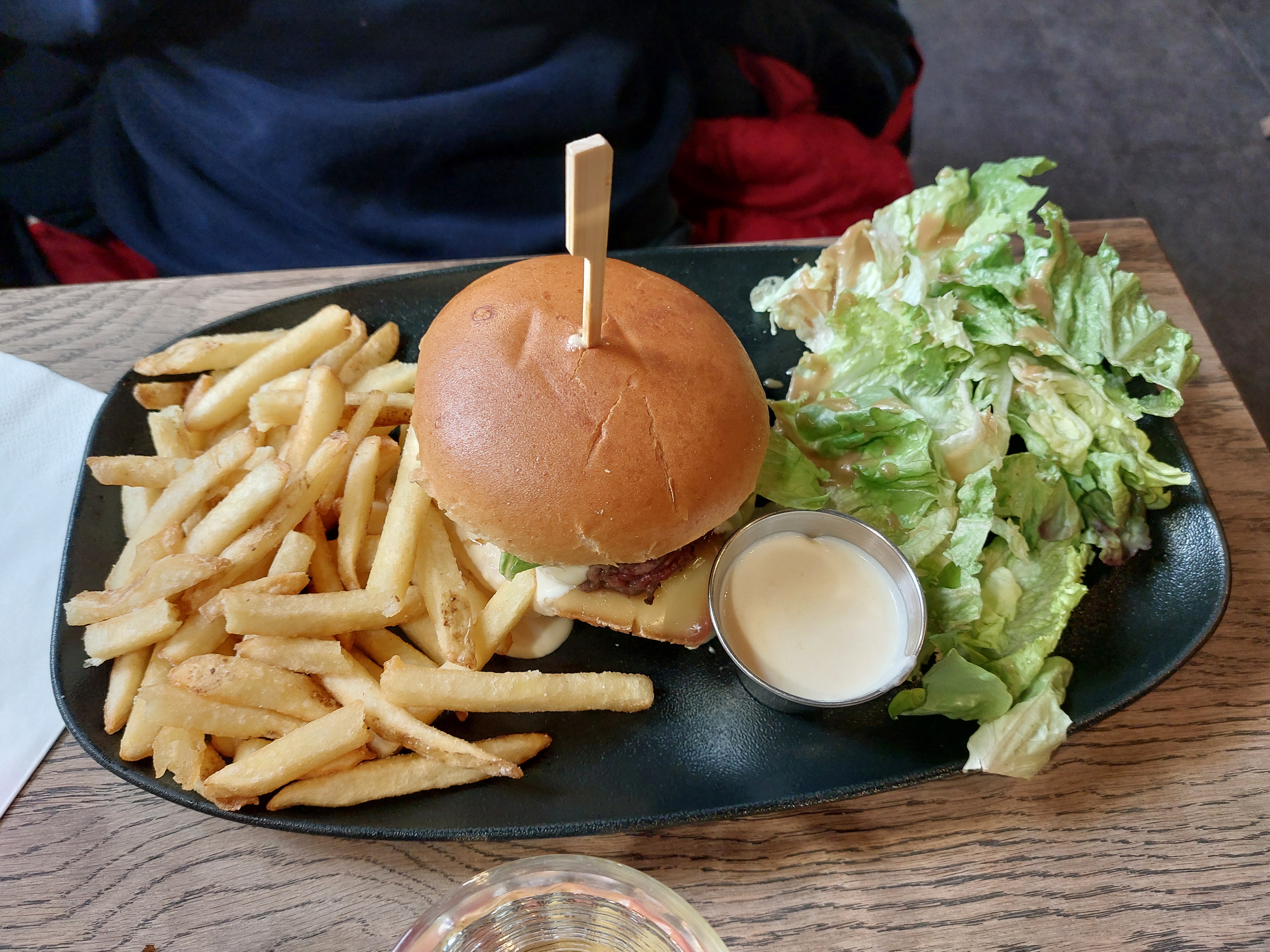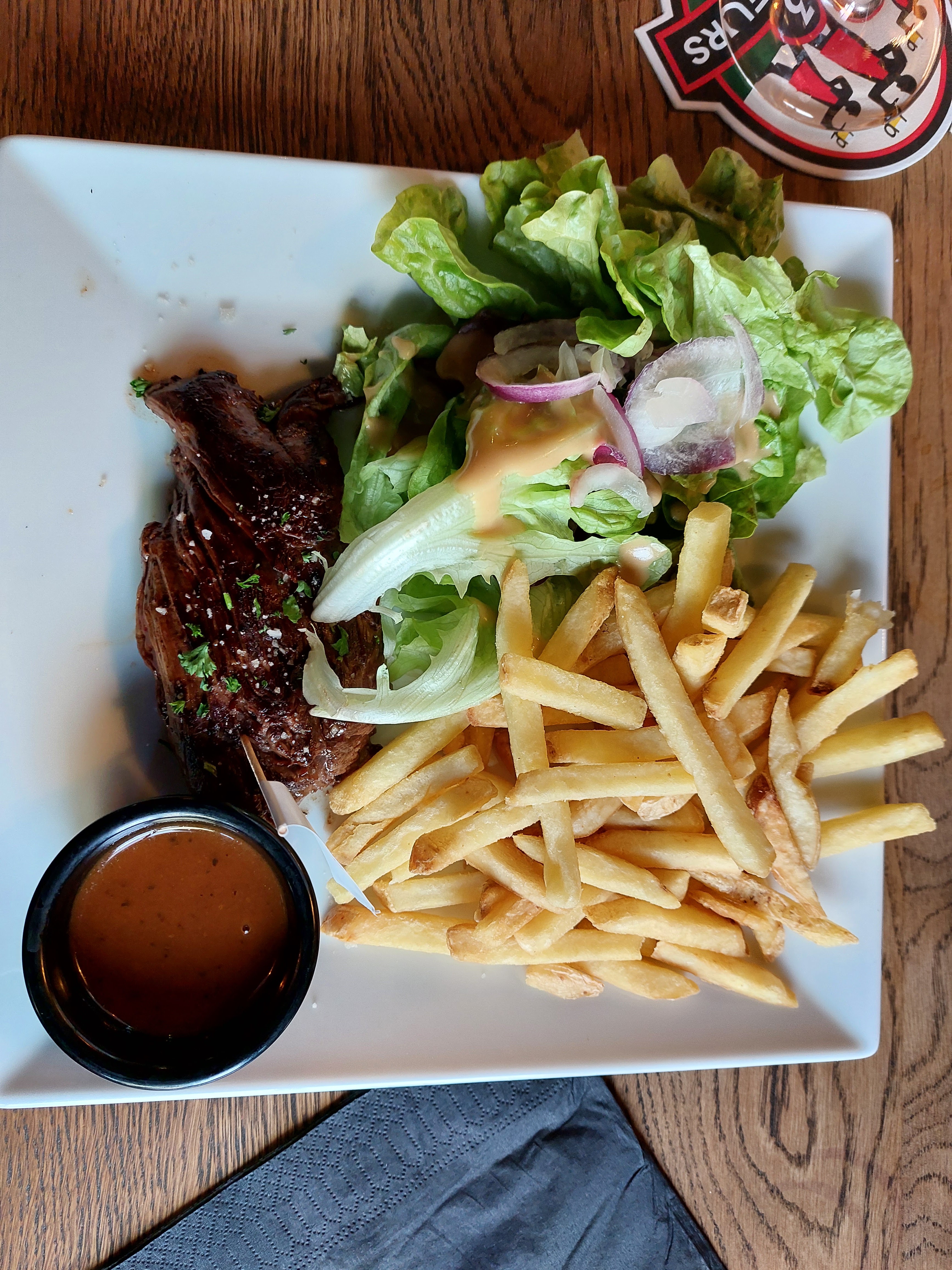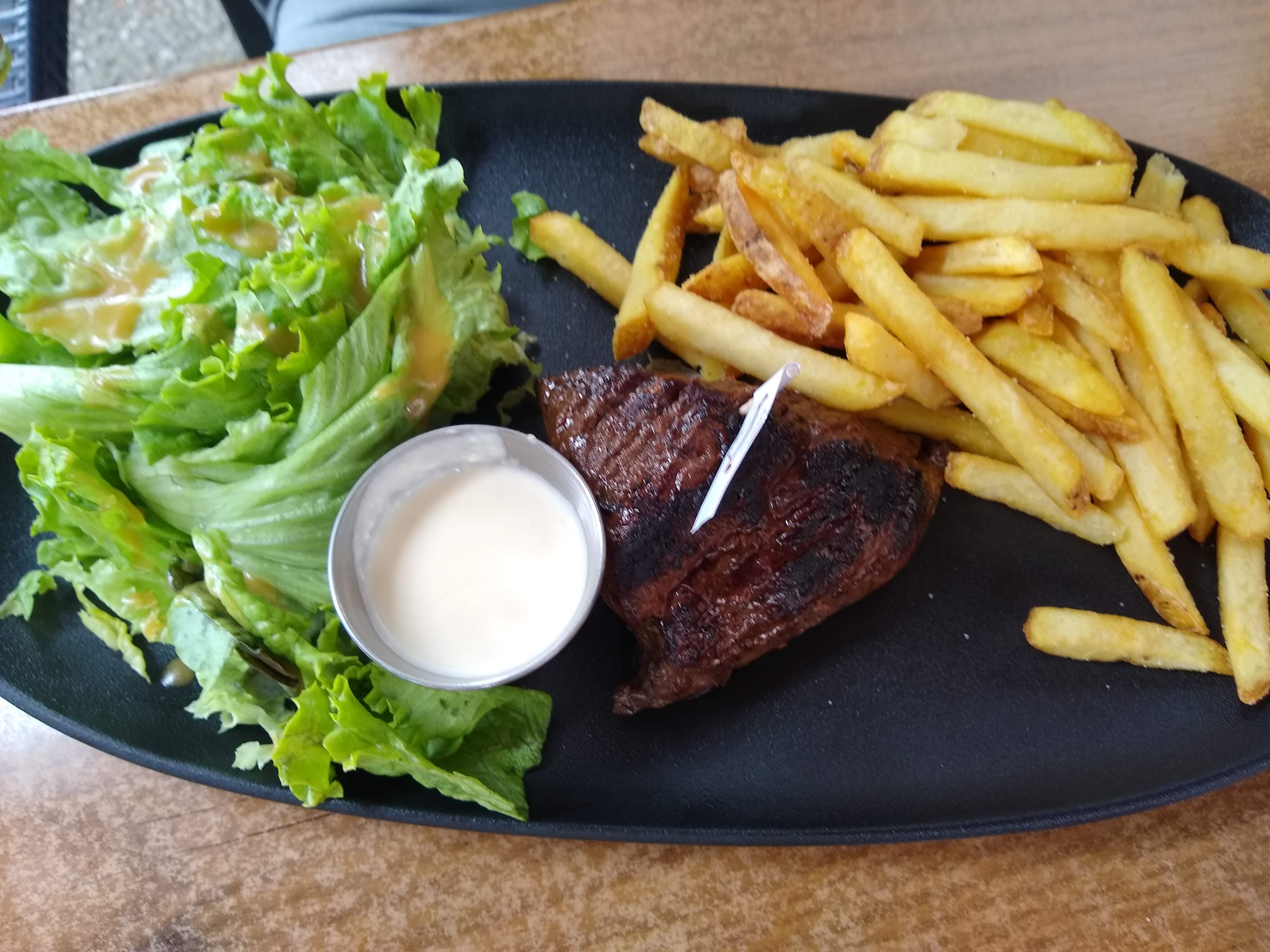 Lieu convivial service rapide mais correct dommage pour les frites un peu trop cuite et manque d'assaisonnement pour la salade mais dans l'ensemble très bon