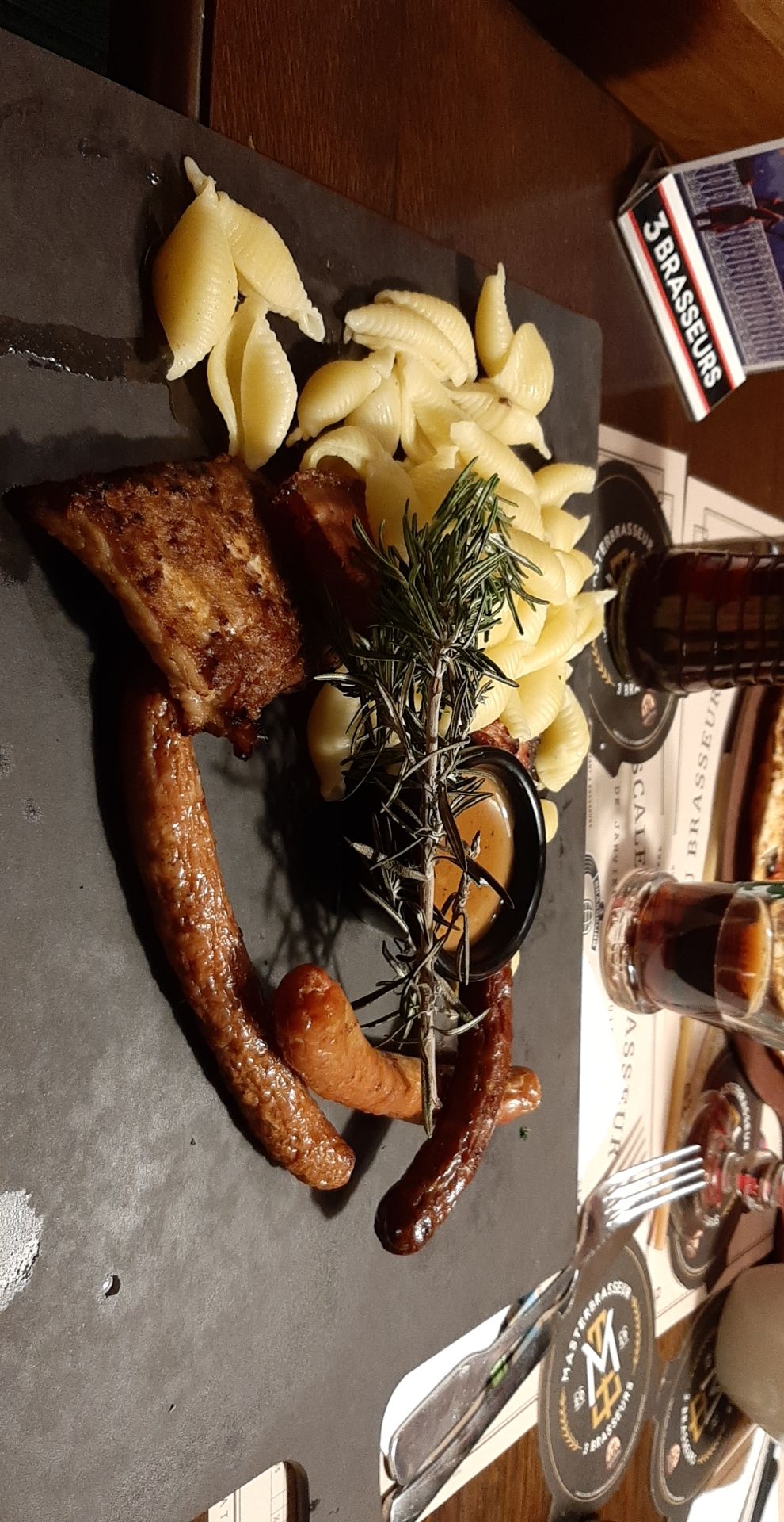 Alors une expérience vraiment catastrophique ce dimanche soir. Alors par étape , en arrivant pas de bière blonde … le nom c est trois brasseurs? Le troisième est en congés ? Bref on se replie sur l ambrée. Par contre pour l apéro on a eu droit à trois coupes de champ non fraîches et pas de glaçons dans le pastis. Bref Alors les plats on est à six adultes et deux enfants soit huit plats. Avec des erreurs dans deux plats on est à 25% d erreurs. Ensuite après avoir manges en décalé ou froid on nous laisse une trentaine de minutes sans venir nous voir. Bref on était à la base venu testé la bière et passer un moment en famille c est vraiment loin de ce que l’on connaît de cet établissement. Bonne chance pour la suite !