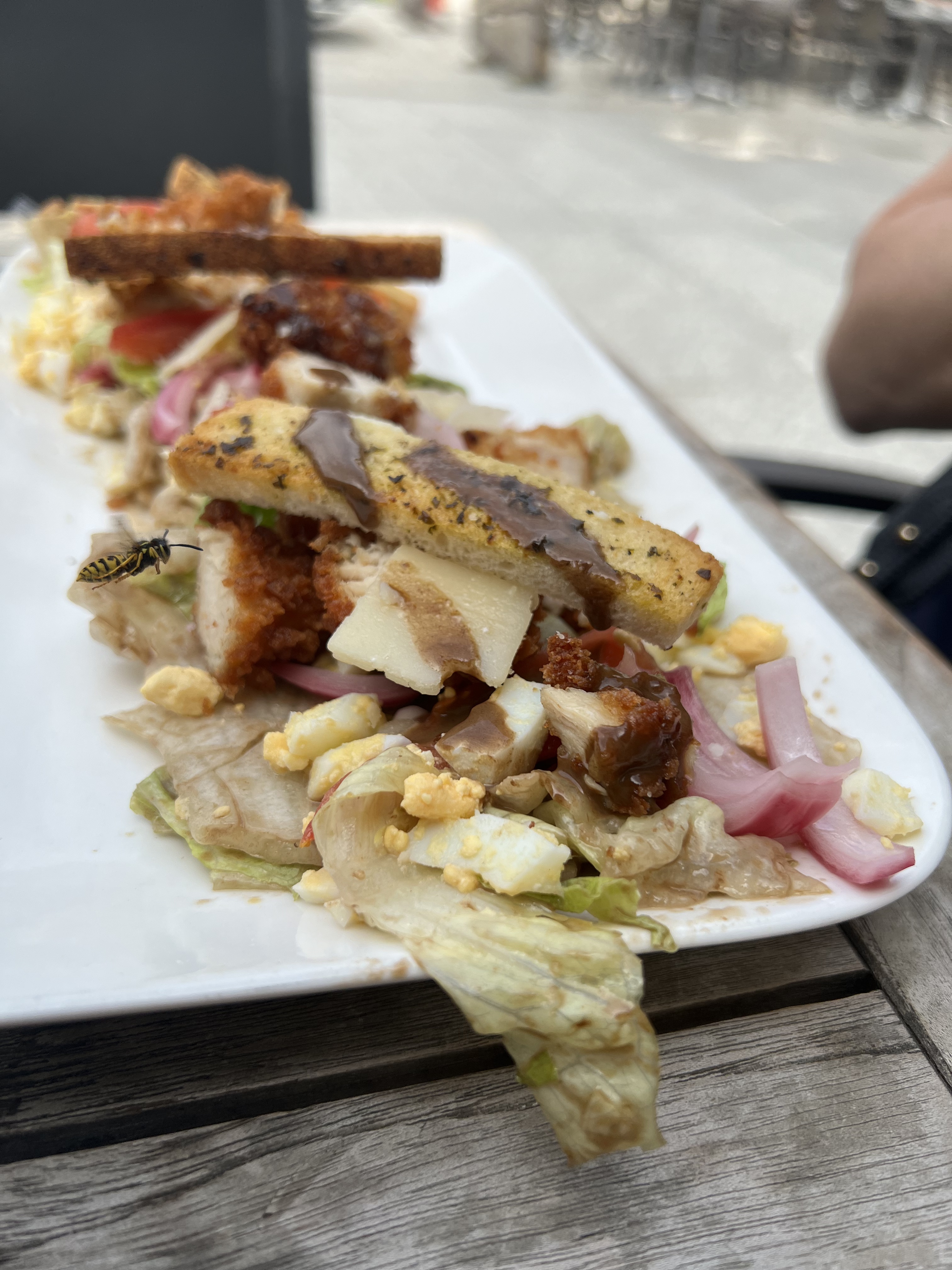 Brasserie sur une Belle place Carte avec du choix Prix raisonnable Belle terrasse Produit frais (pâte brisé maison) de la quiche Salade césar très bien présentée et copieuse Dommage que la sauce césar n’était que de la vinaigrette !!!! Mais ce n’est pas le plus important Puisque les produits sont très bien travaillés et maison. Merci 🙏
