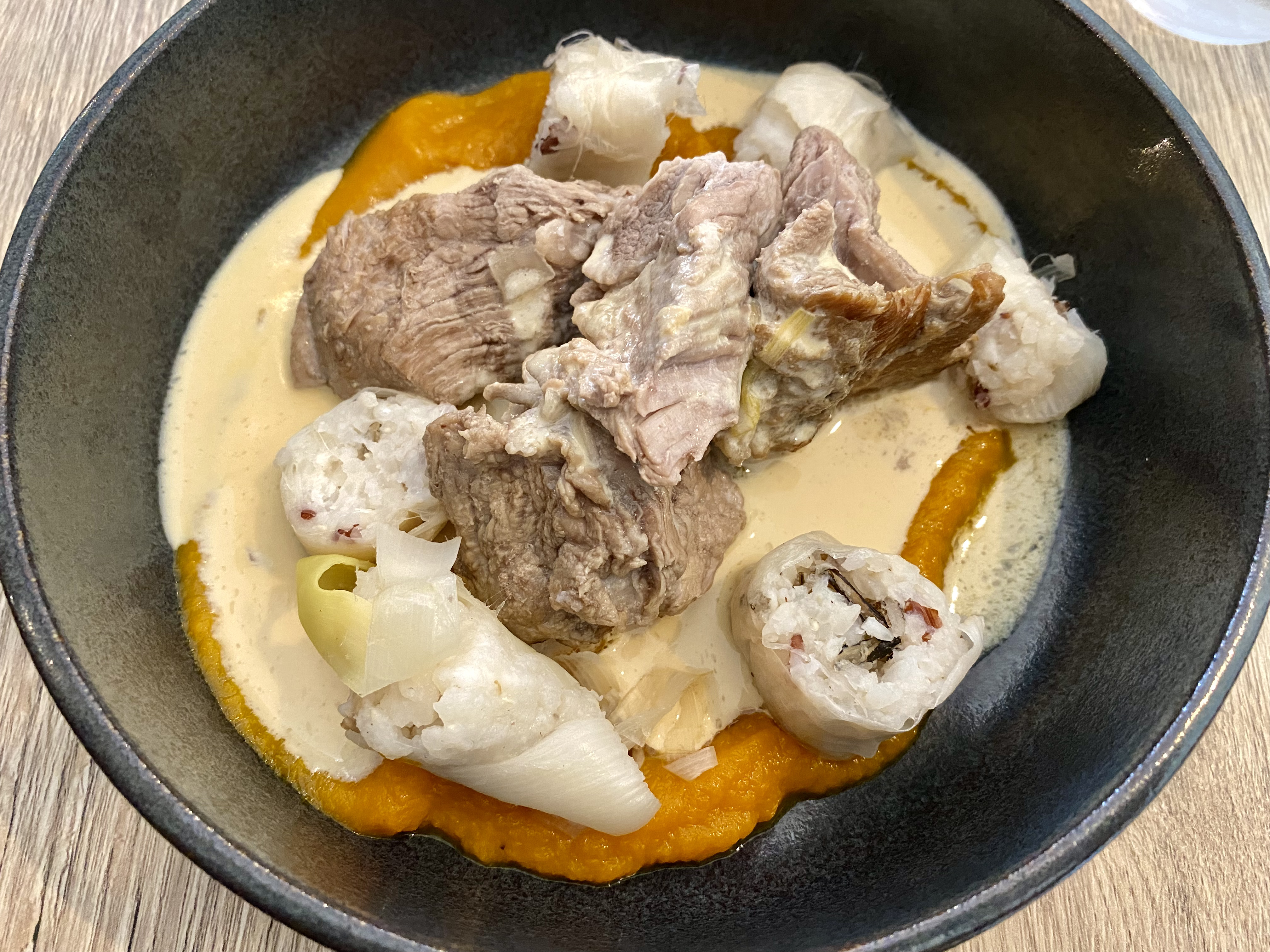Merveilleusement bon, avec la chef qui s'est adaptée avec un repas sans lactose et un autre végétarien. Merci ! Et en plus à un prix plus que raisonnable.