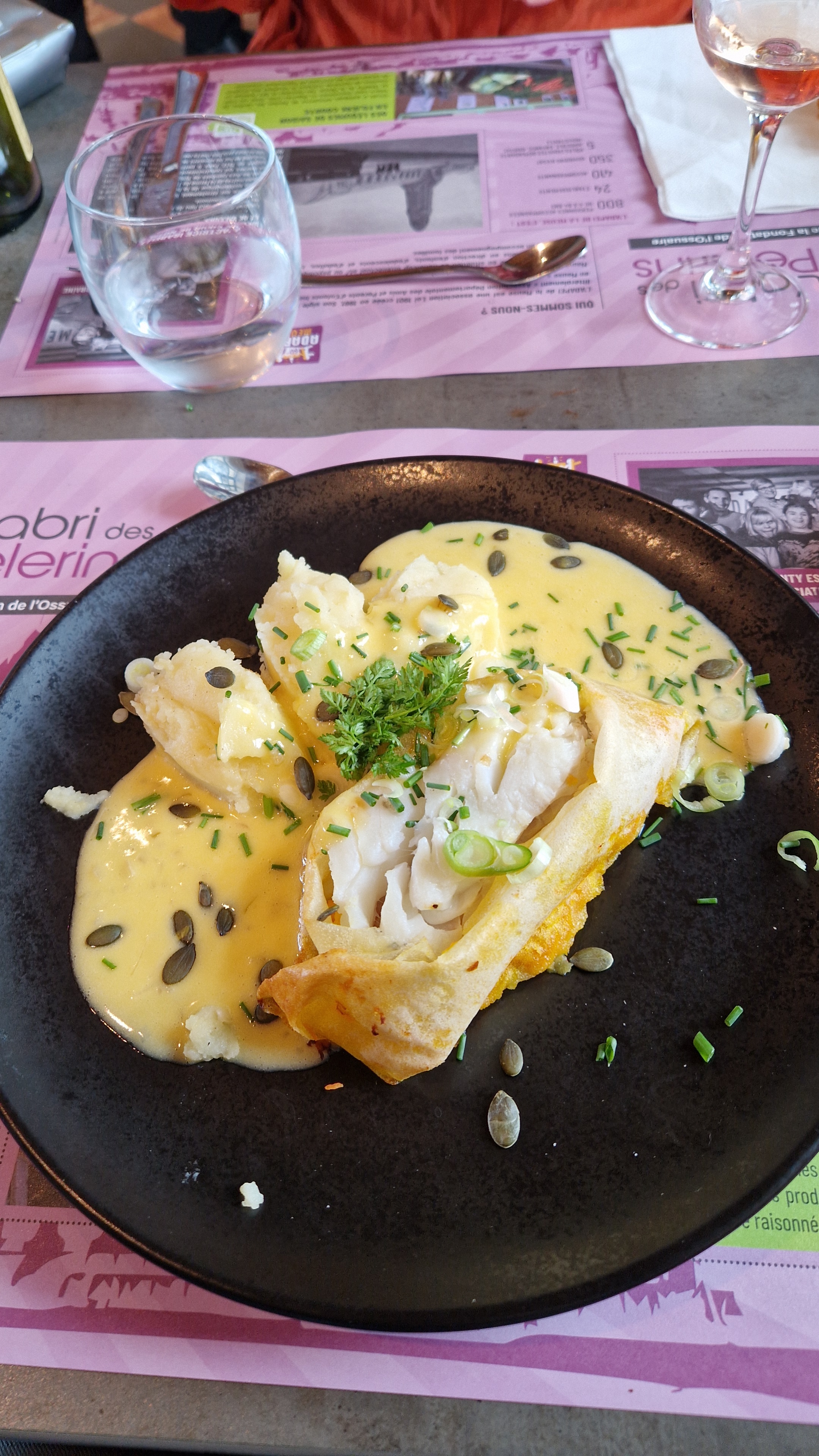 Très bon déjeuner à l’abri des Pèlerins, ce jour. L’accueil du patron est excellente. Il était souriant, agréable et gentil. Les repas sont copieux et bons. Le décor est beau et moderne. Merci pour la gentillesse et l’accueil de l’ensemble du service. Valentine & son papy Mosellan.