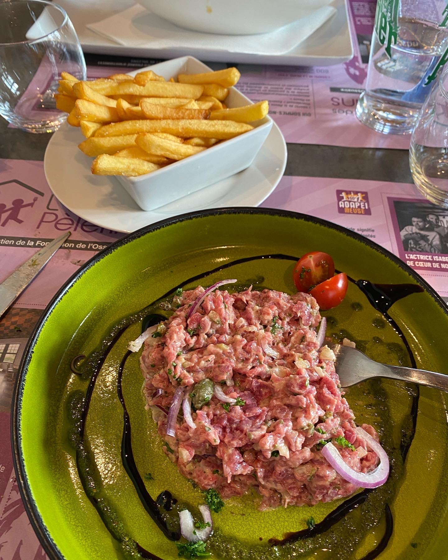 Service assuré par des jeunes de l'adapei, de supers personnes qui bossent vraiment dur comme peu de serveurs....et avec le sourire.. Le plat excellent, un steak tartare, une tuerie, le dessert idem , soupe de fraises avec glace citron.... Et le cuistot sympa également... Bref une adresse à recommander