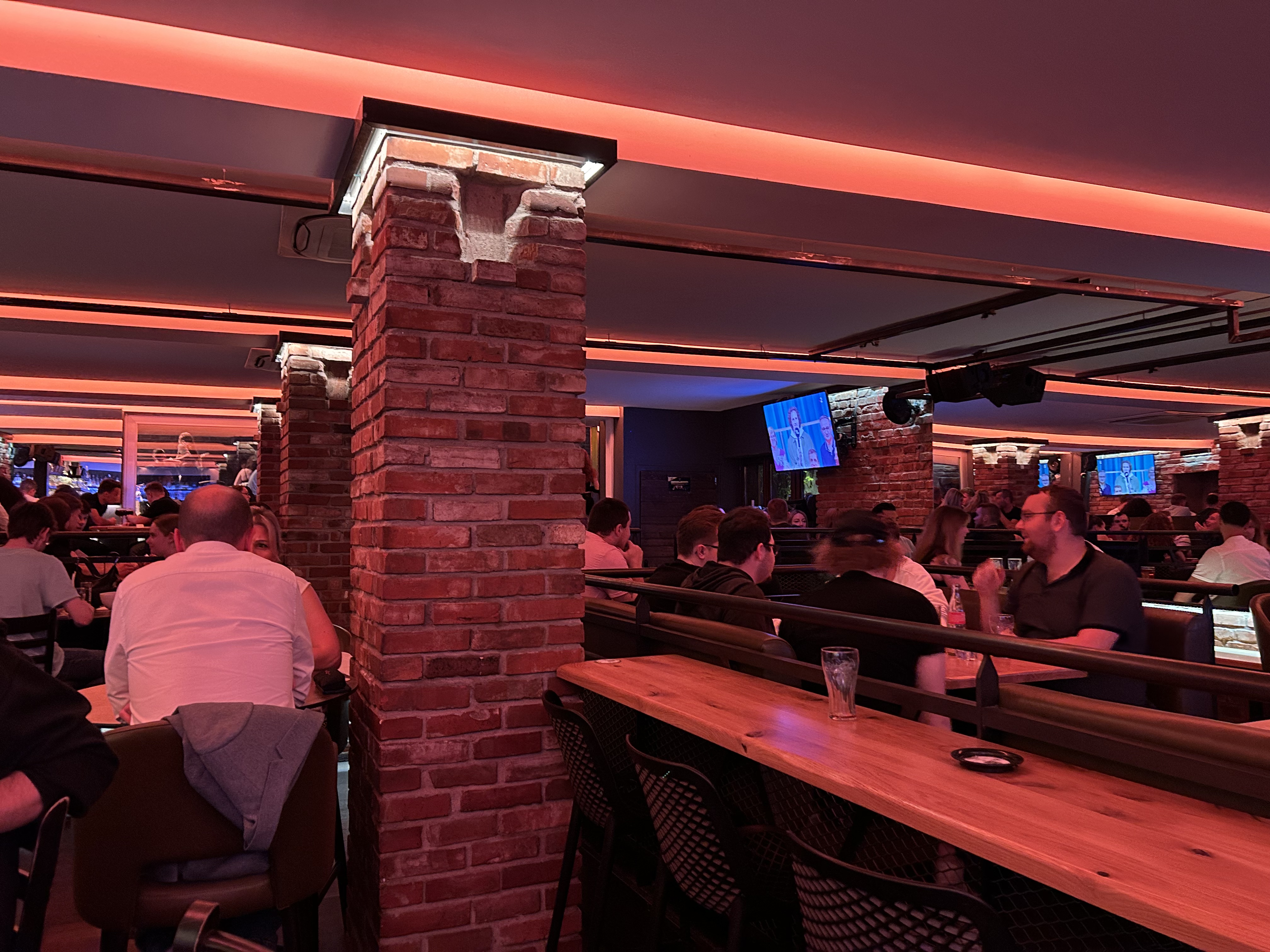 Nous sommes allez voir le match de la coupe du monde avec plusieurs amies. Les serveurs sont polis, rapide et ne font pas d'erreur. Ambiance très cool mais le dj n'est pas à mes goûts musicales