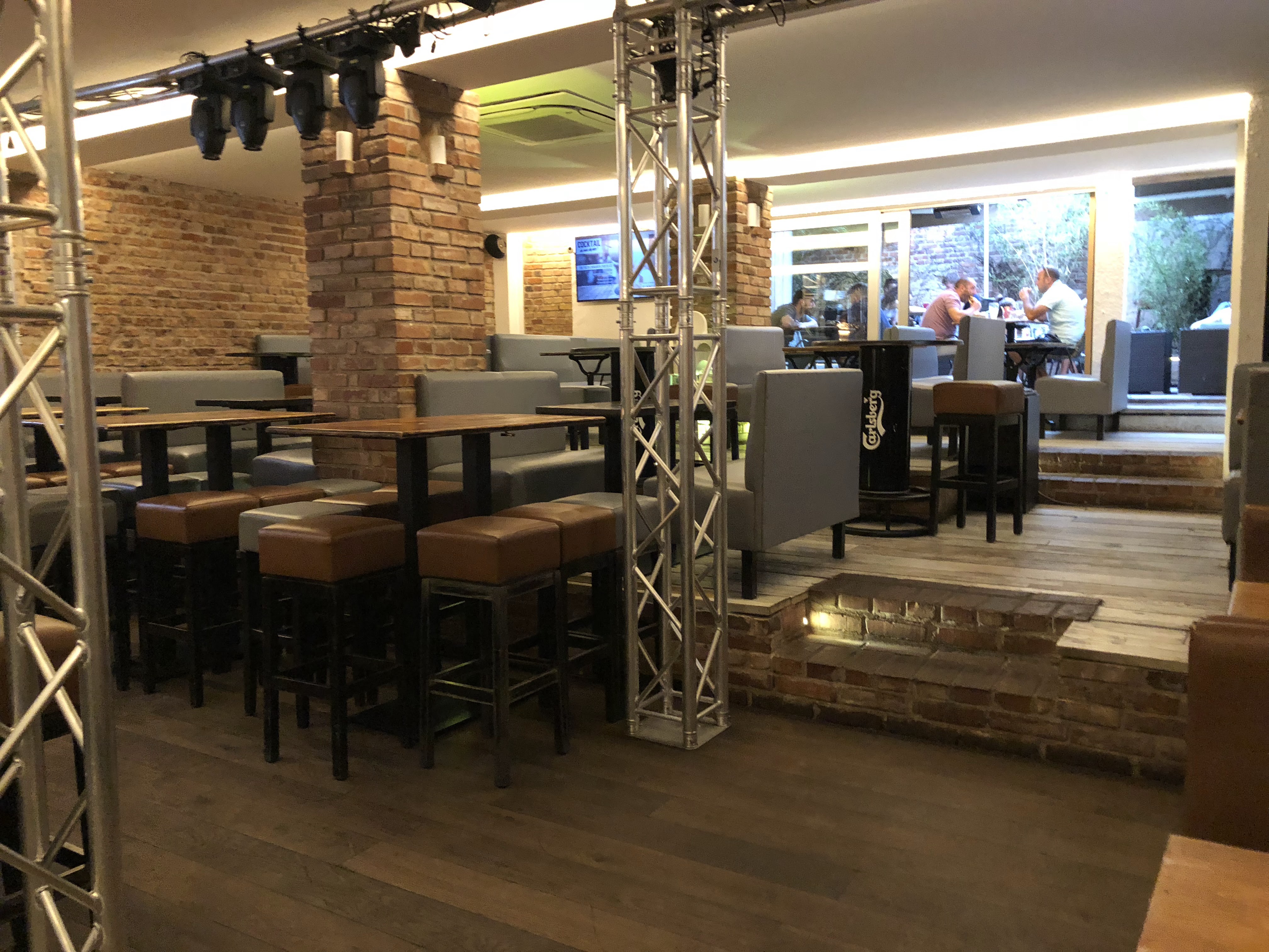 Avec tous les travaux effectués, le cadre est posé et autant dire que c'est réussi, superbe terrasse intérieure couverte (un + pour les fumeurs) une ambiance chaleureuse avec un aspect bois très présent et un bon choix de bières ! Ne passez pas à côté des tenders de poulet ^^