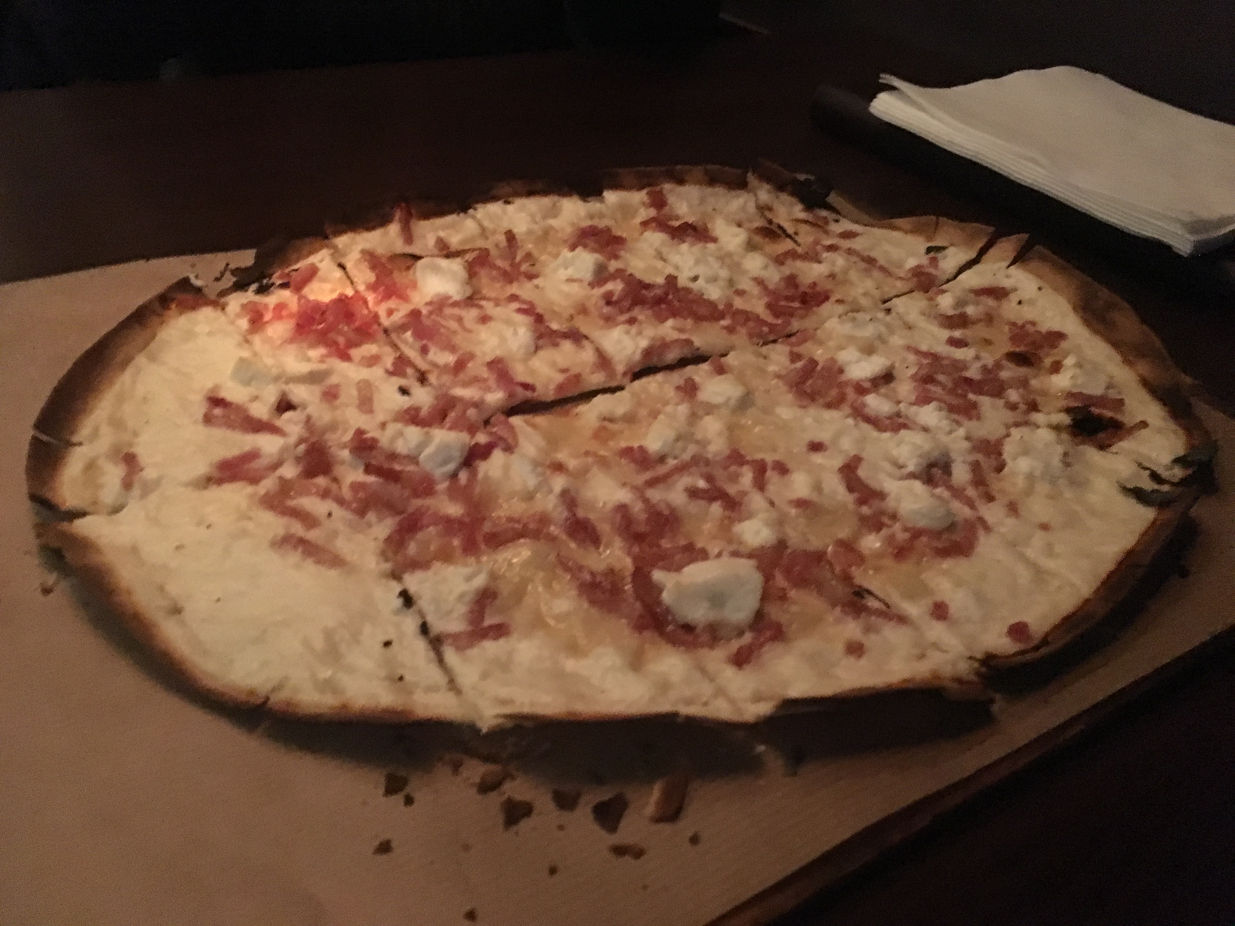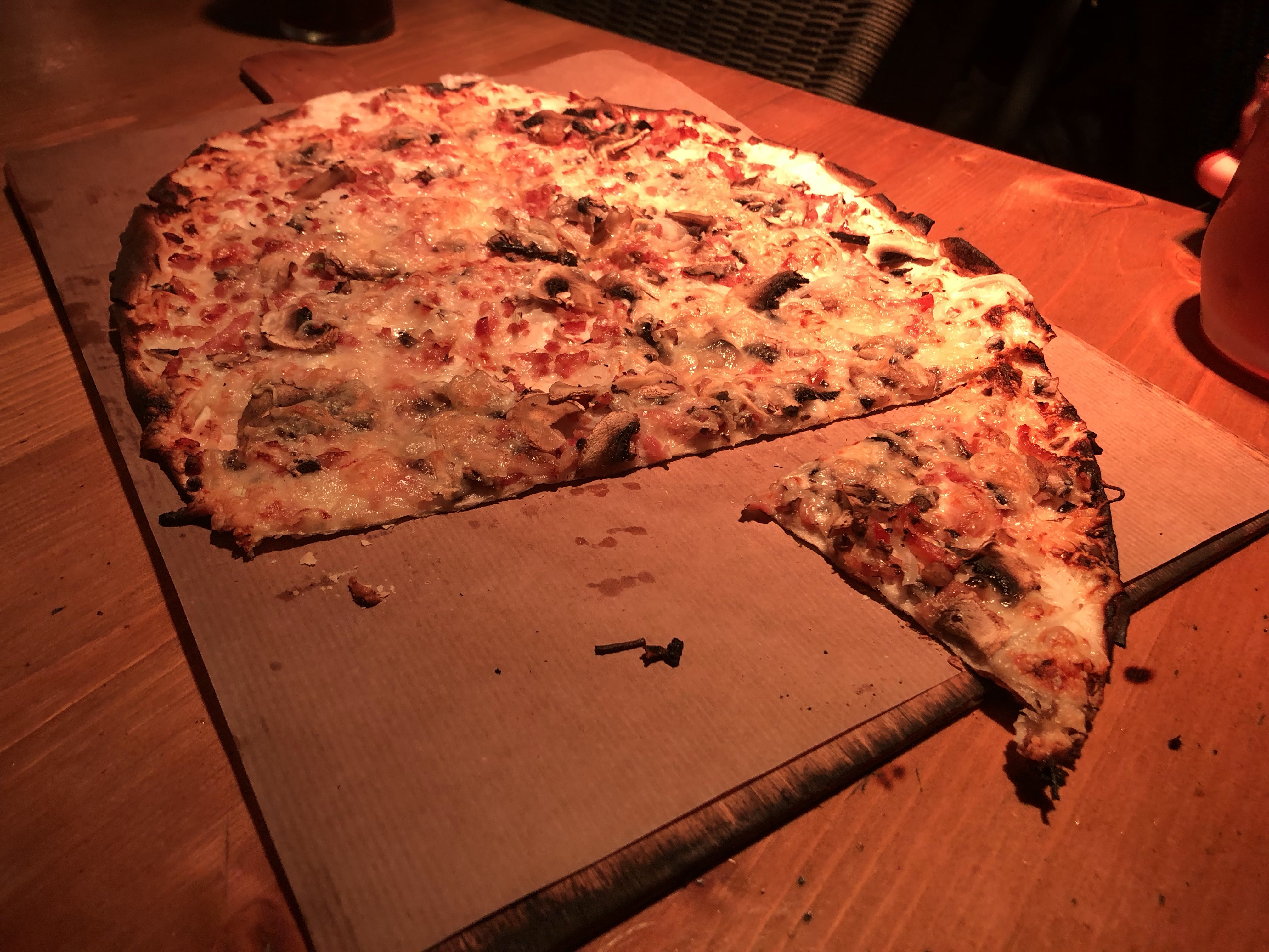 Aaaah les bières pression.... La Slash Mango pour ma part... Et la tarte flambée au munster est un véritable délice. Ambiance lounge tout y est.