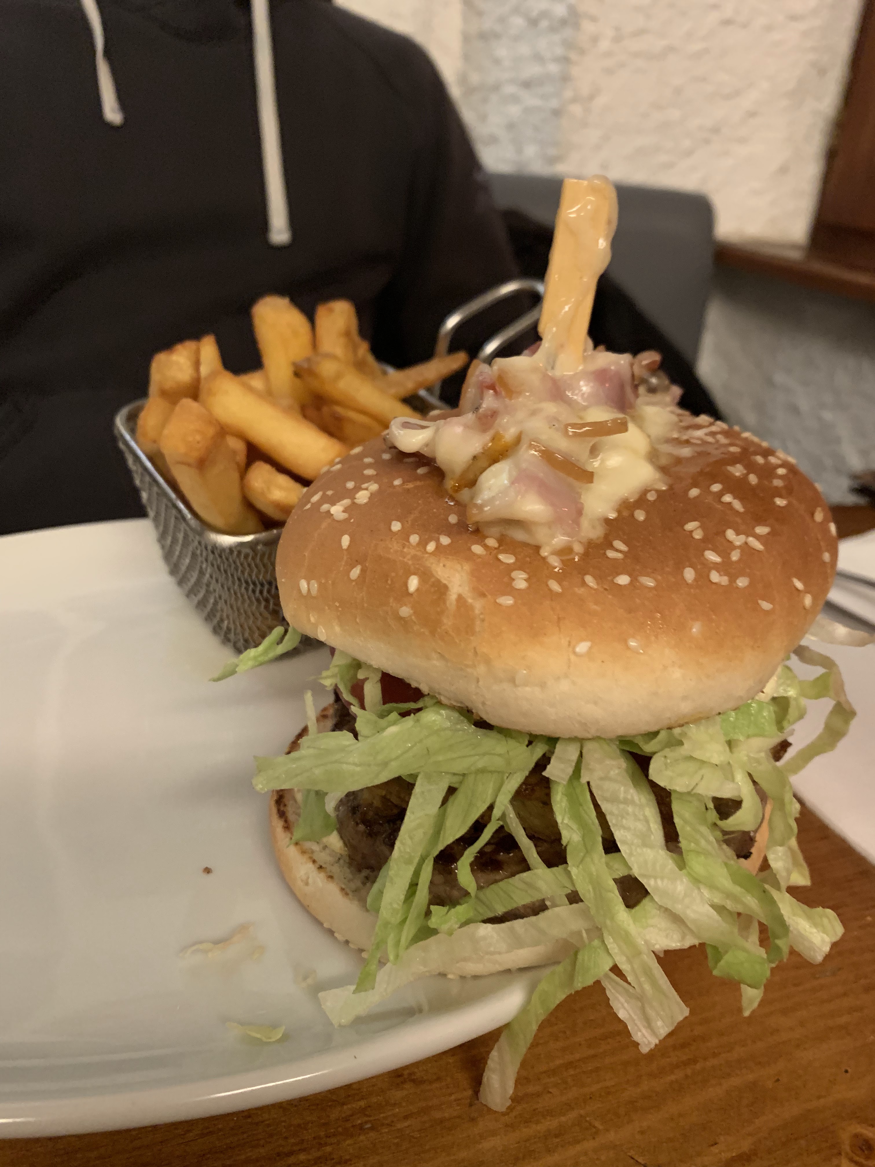 Burger bon et bien garnis ++ et prix relativement raisonnable. -- Mais cadre trop bruyant . CUISINE PETITE donc très longue attente. Trop de jeunes irrespectueux qui fument, qui gueule et qui sous prétexte d alcool sont totalement imbuvable. Je me demande qui est le plus à plaindre Le client ou le serveur ?