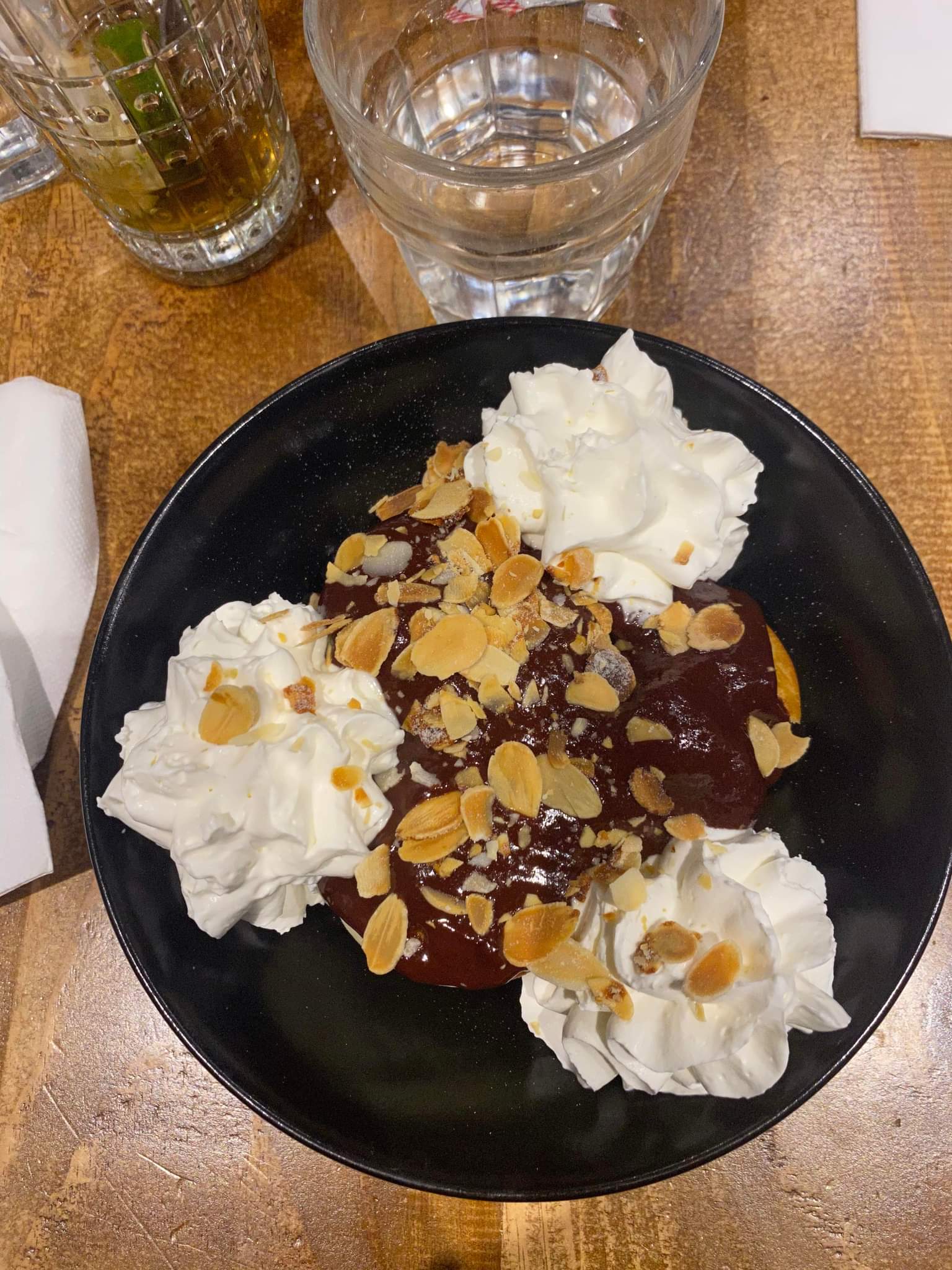 Expérience du jour : prendre une collation dans cette brasserie. Au menu un capuccino où la mousse prend le pas sur le café. Un café liégeois où le café est noyé dans de la crème chantilly. Deux moelleux au chocolat avec une boule de glace vanille et de la:crème chantilly. Si au premier abord cela semblait agréable, nous avons terminé nos,assiettes avec un sentiment d'ecoeurement tellement tout était sucré à outrance. Impression de manger un kilo de sucre à la petite cuillère. Nous n'y retournerons pas. Terminé pour nous
