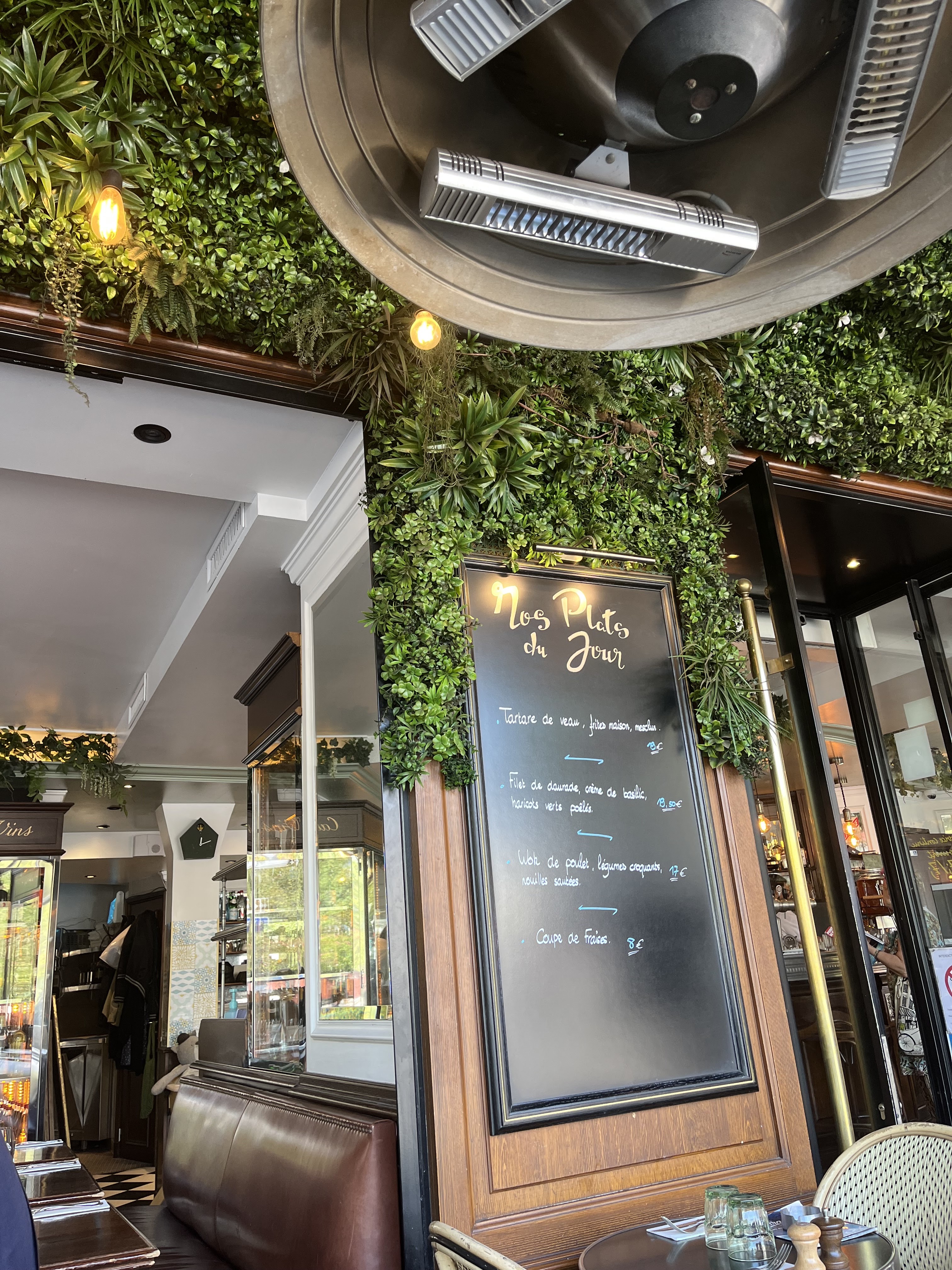 Serveurs aux petits soins, une belle terrasse intérieure et la partie intérieure est très agréable, intimiste avec une déco classique de brasserie parisienne comme je les aime avec de longues banquette . Sobre et élégant, avec une carte tres sympa, un lieu que je conseille à tous!