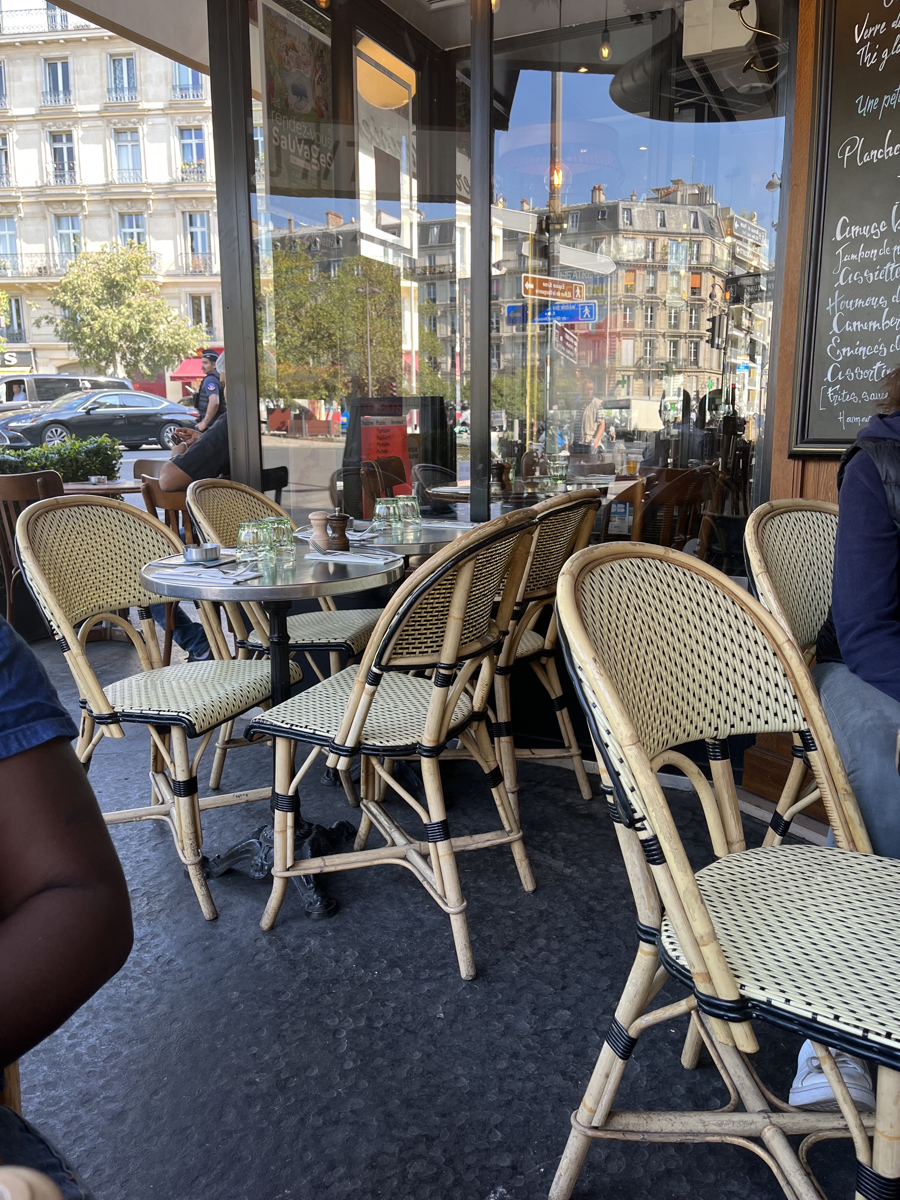 Une brasserie parisienne avec une véranda au soleil au déjeuner et très agréable Sur cette place passagère, l’endroit peut être utile pour un service rapide. La nourriture y est standard. Pas de remarque particulière. L’accueil agréable.