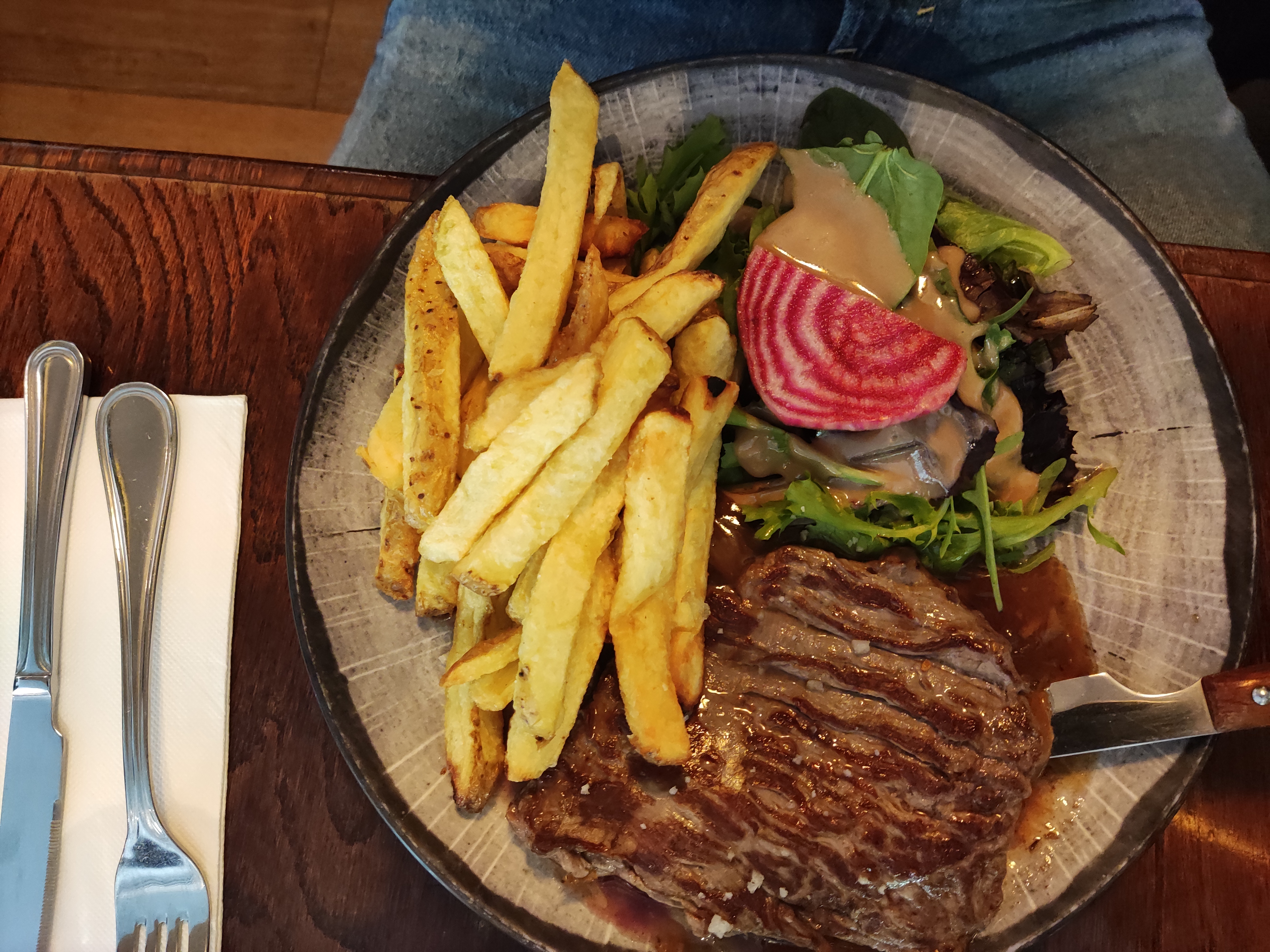 Service irréprochable, merci à la serveuse pour son professionnalisme et sa bonne humeur. Très bonne qualité des produits et cuissons parfaites (viandes et poisson). Je recommande ce restaurant.