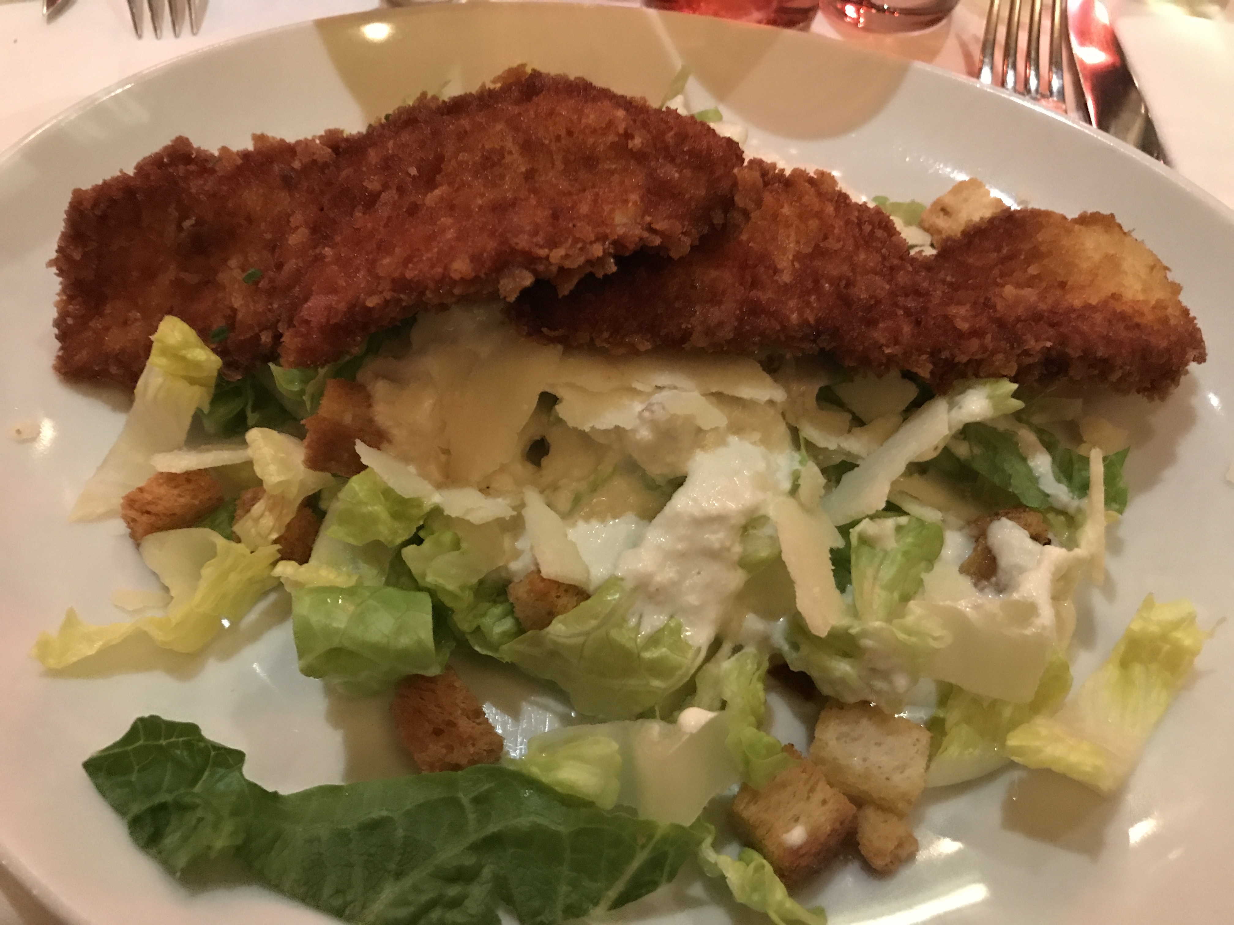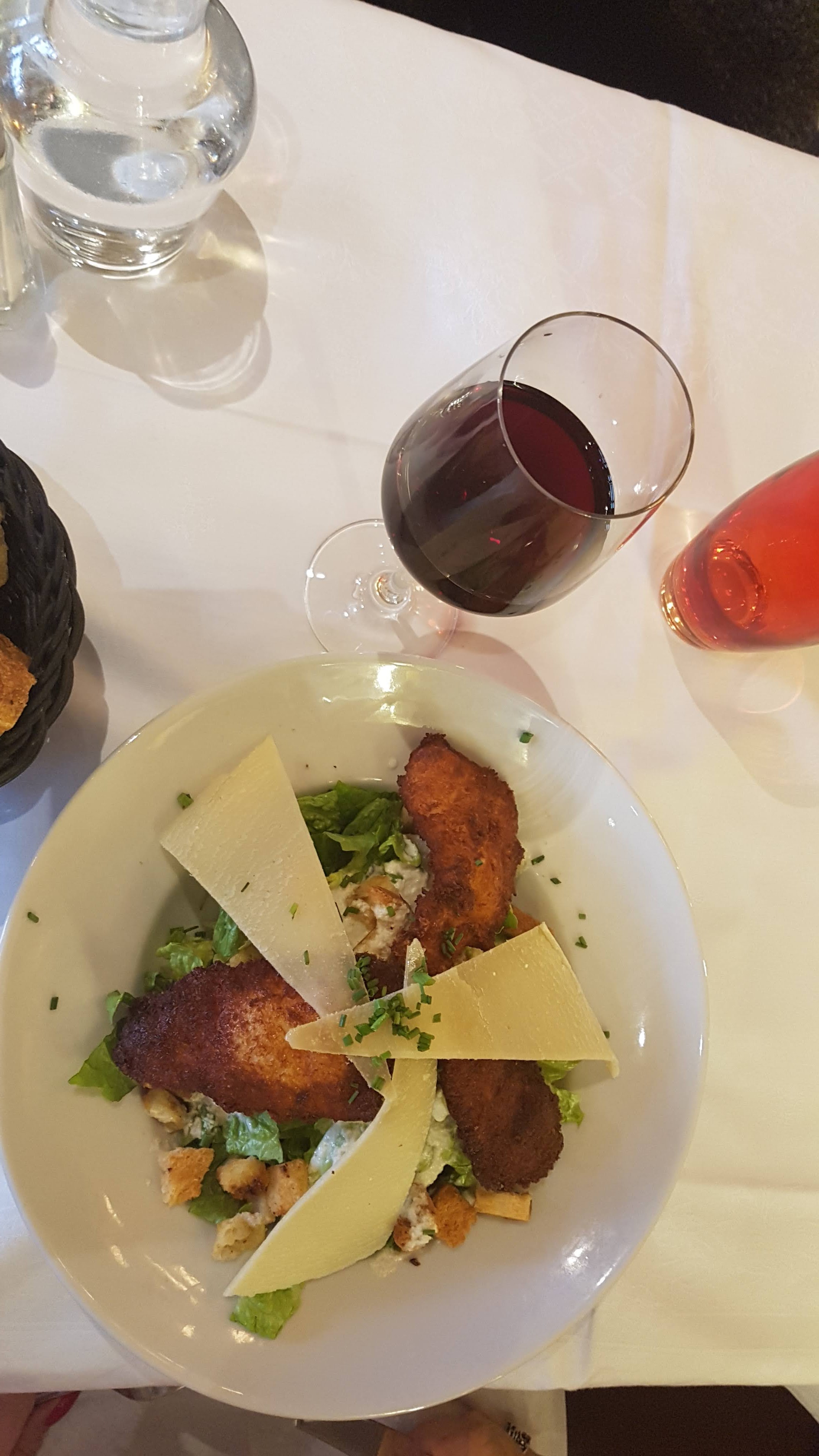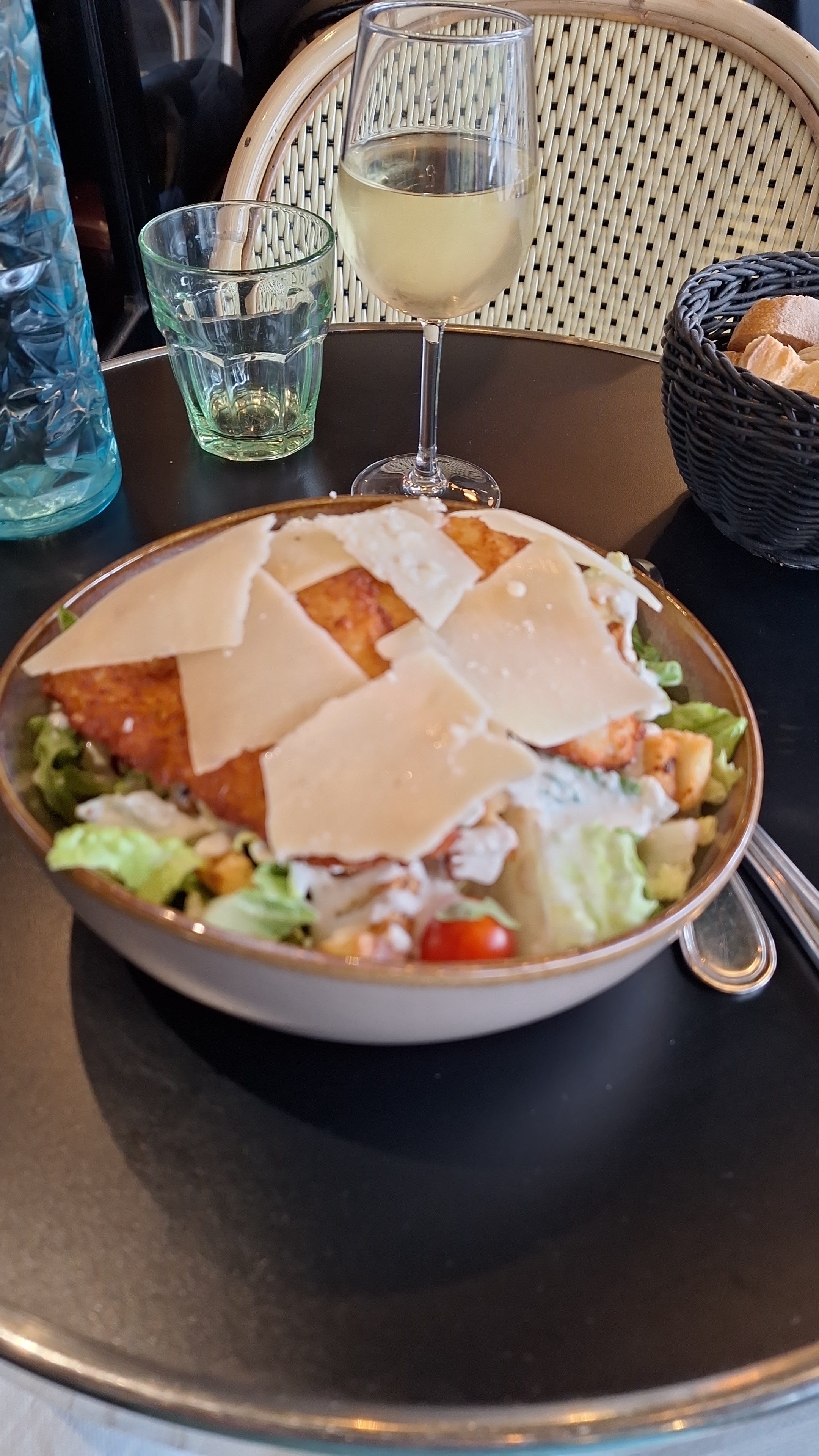 Salade César délicieuse avec un poulet super croustillant ! Topissime ! Dessert à la hauteur Cadre typique parisien assez bruyant et encombré mais sympathique