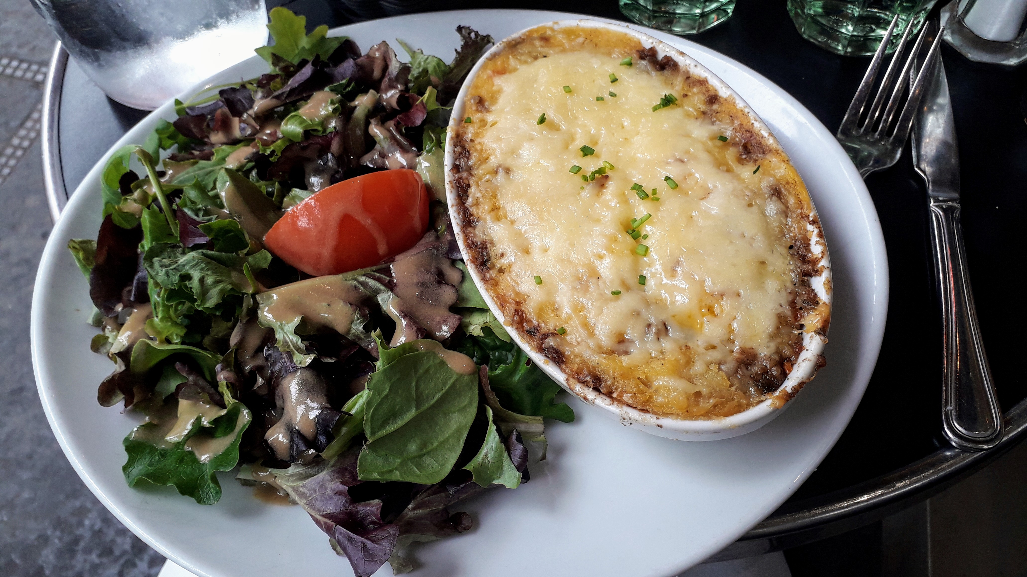 La serveuse est énergétique, elle m'a proposé un plat et c'était bon. Le chocolat chaud et le café crème étaient délicieux
