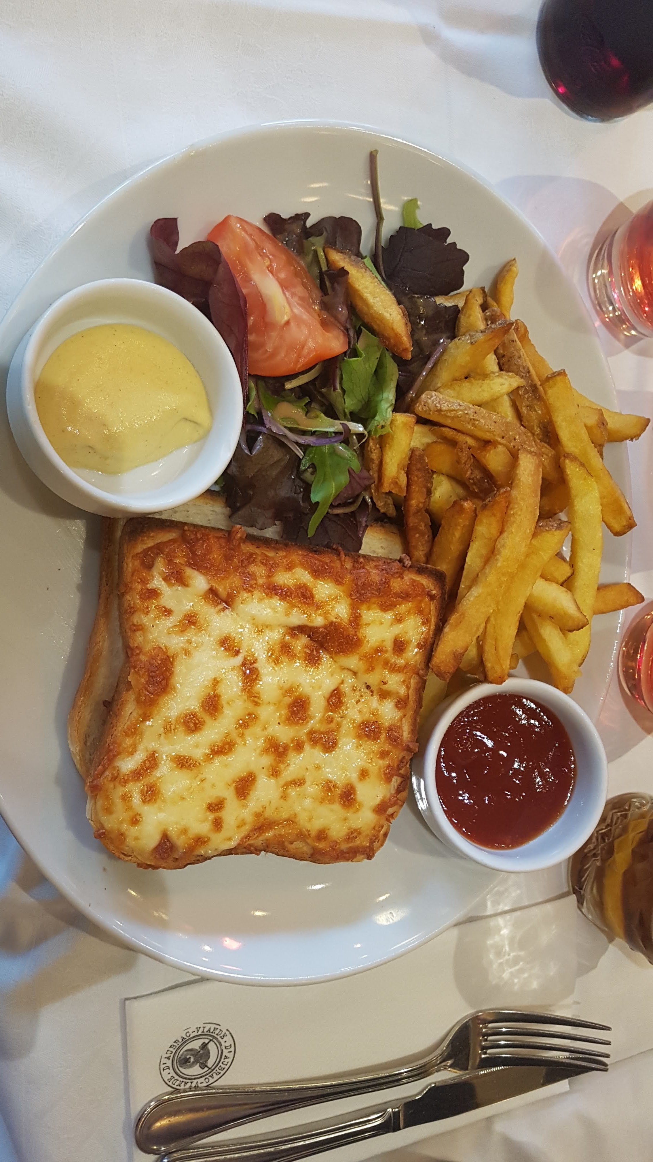 J'avais pris une bavette avec frites et salade. Celle-ci était bonne. Par contre, le café était un peu fort. Je recommande.