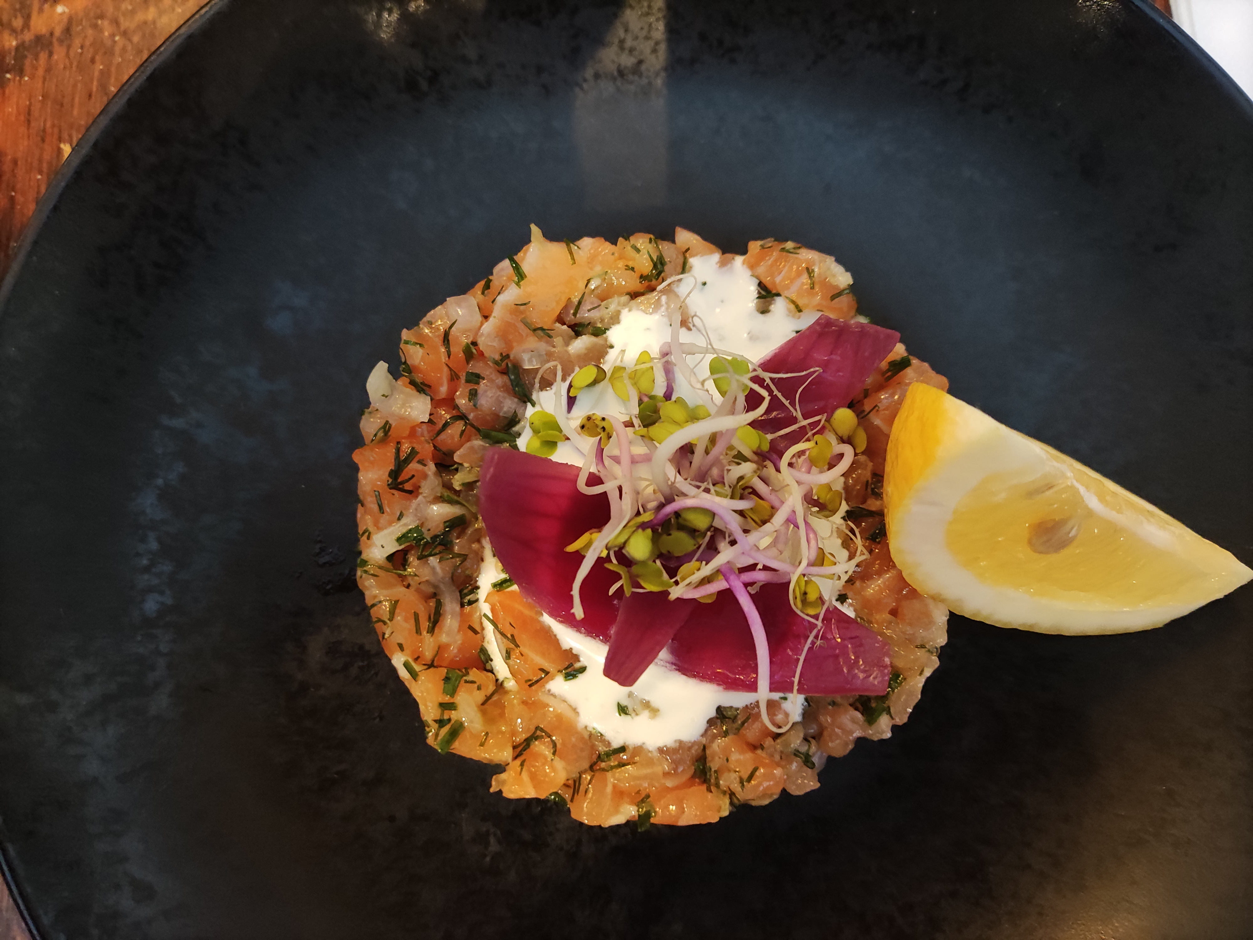 La carte semble sympathique cependant le mojito n'était pas bon et en apéritif une immense tranche de pain (mou de surcroît) comparé à la quantité du saumon minime. Cependant le saumon était de qualité.