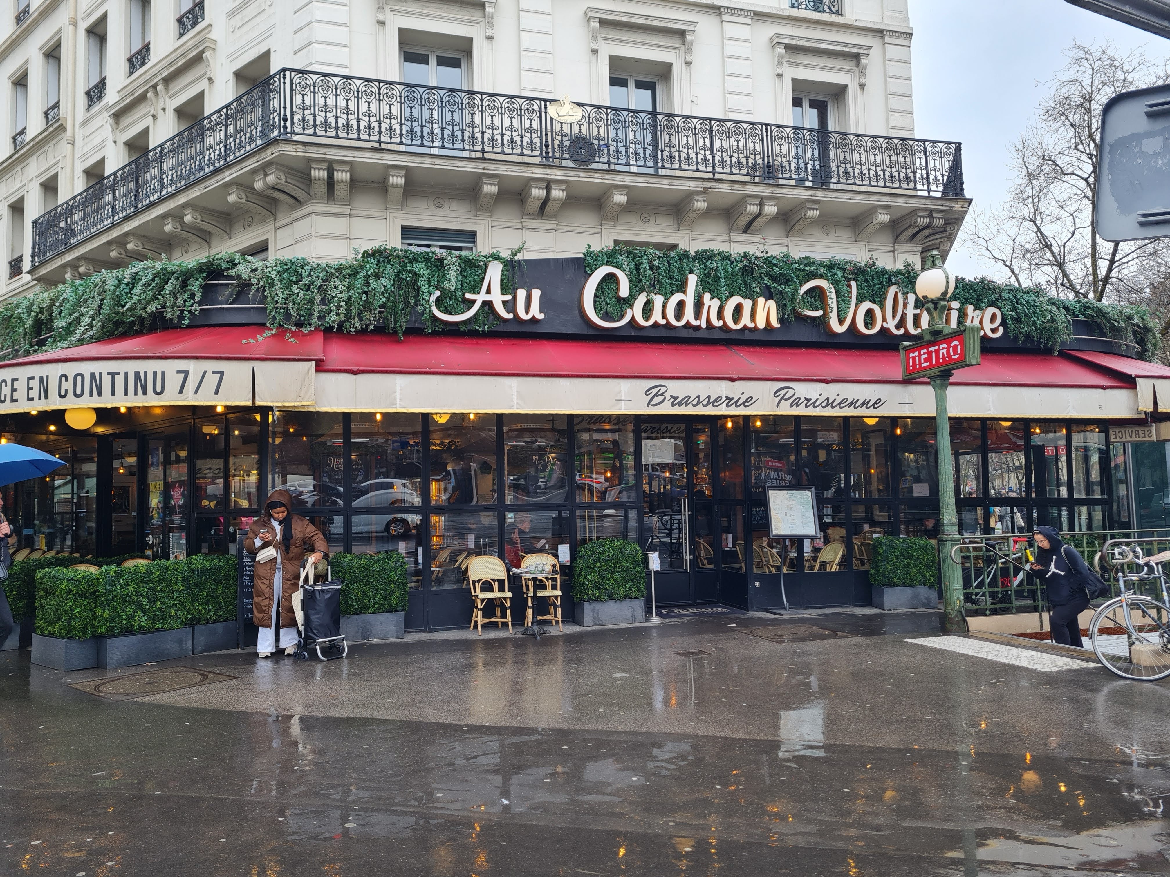 J'habite le quartier depuis près de deux ans et c'est au Cadran Voltaire que j'ai pris mes habitudes. Pour le personnel toujours souriant, pour la terrasse douillette en hiver et ouverte en été, et parce que les vins et la carte sont classiques et sans défaut. Pas donné, mais prix tout à fait justifiés étant donné la qualité.