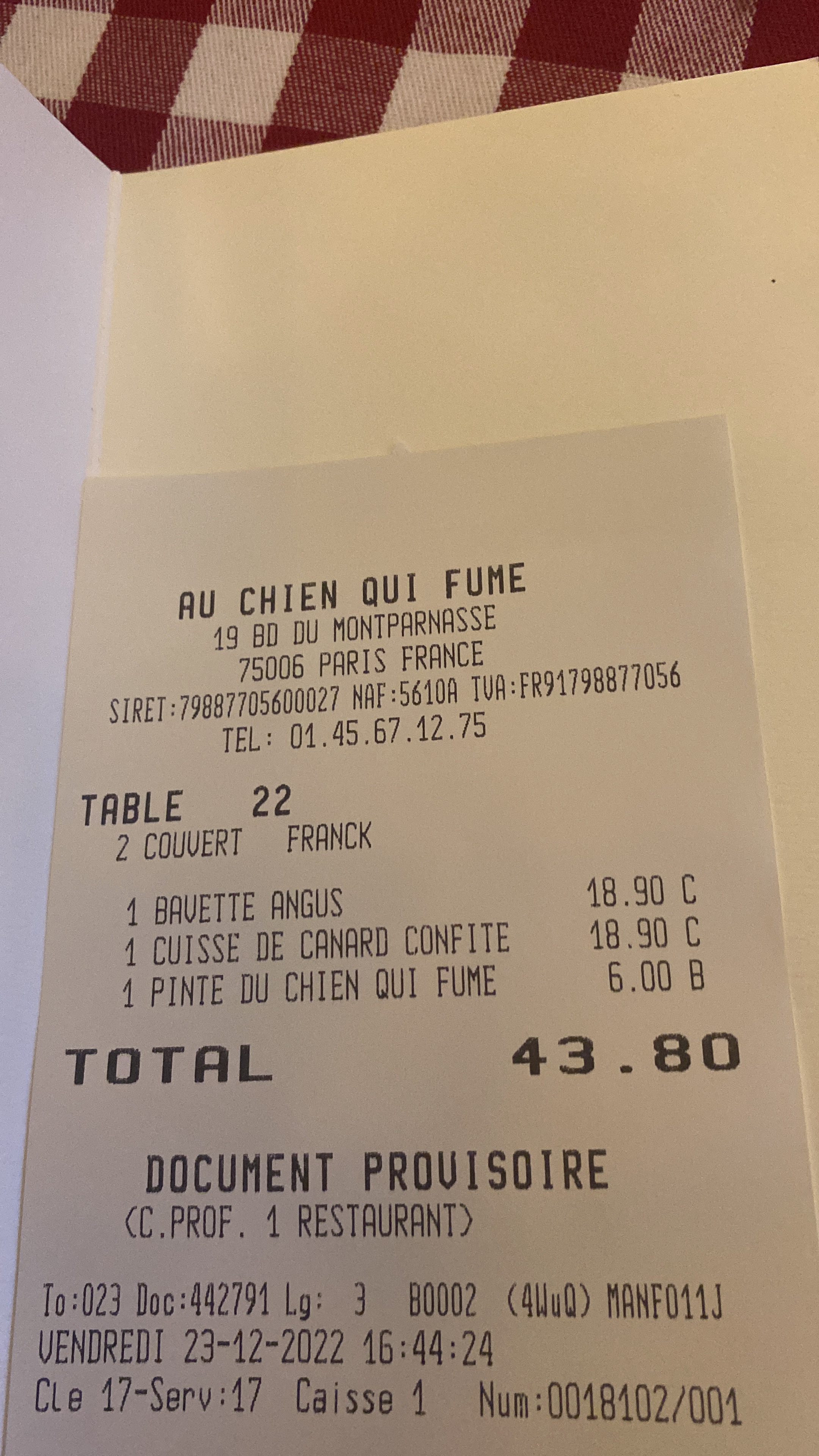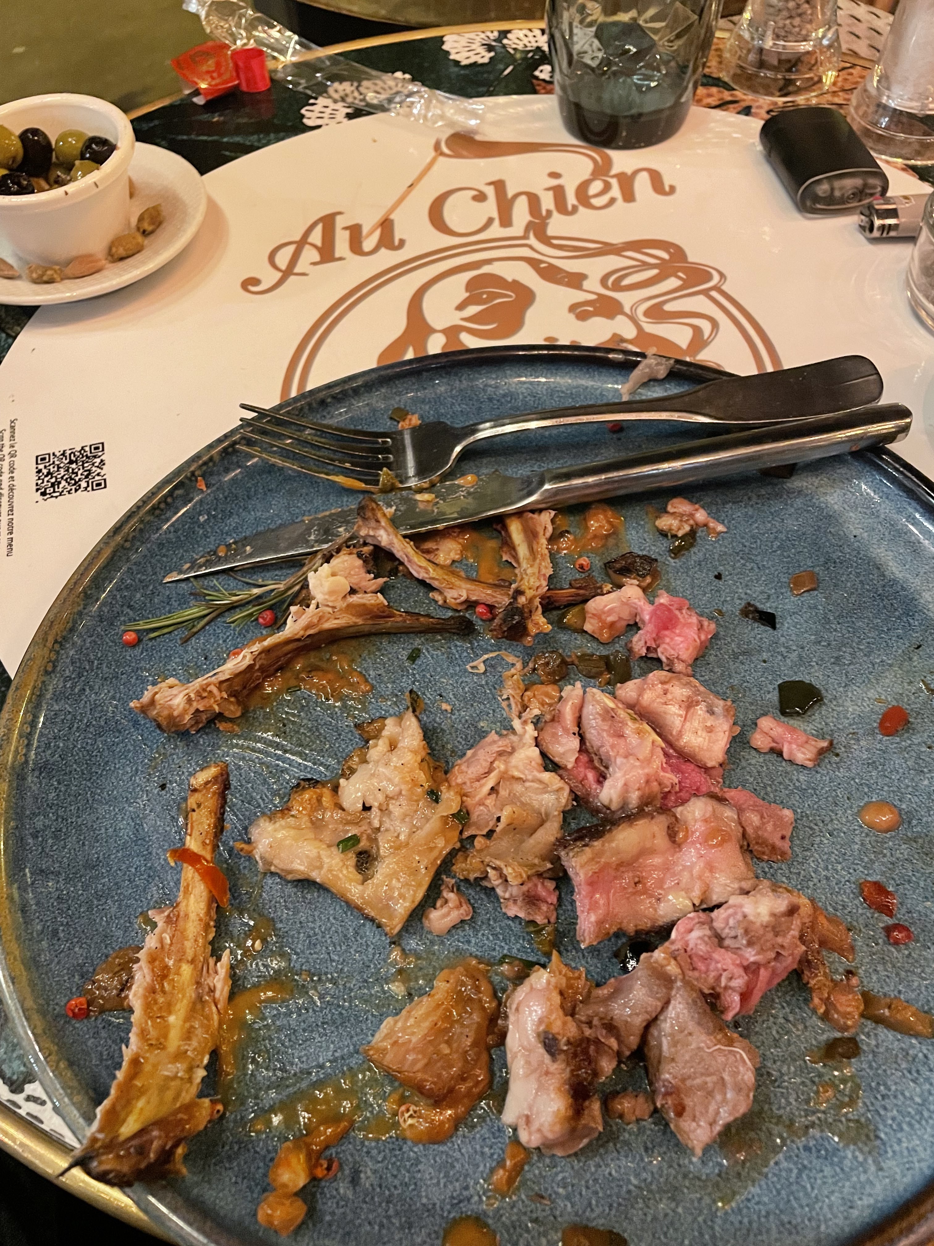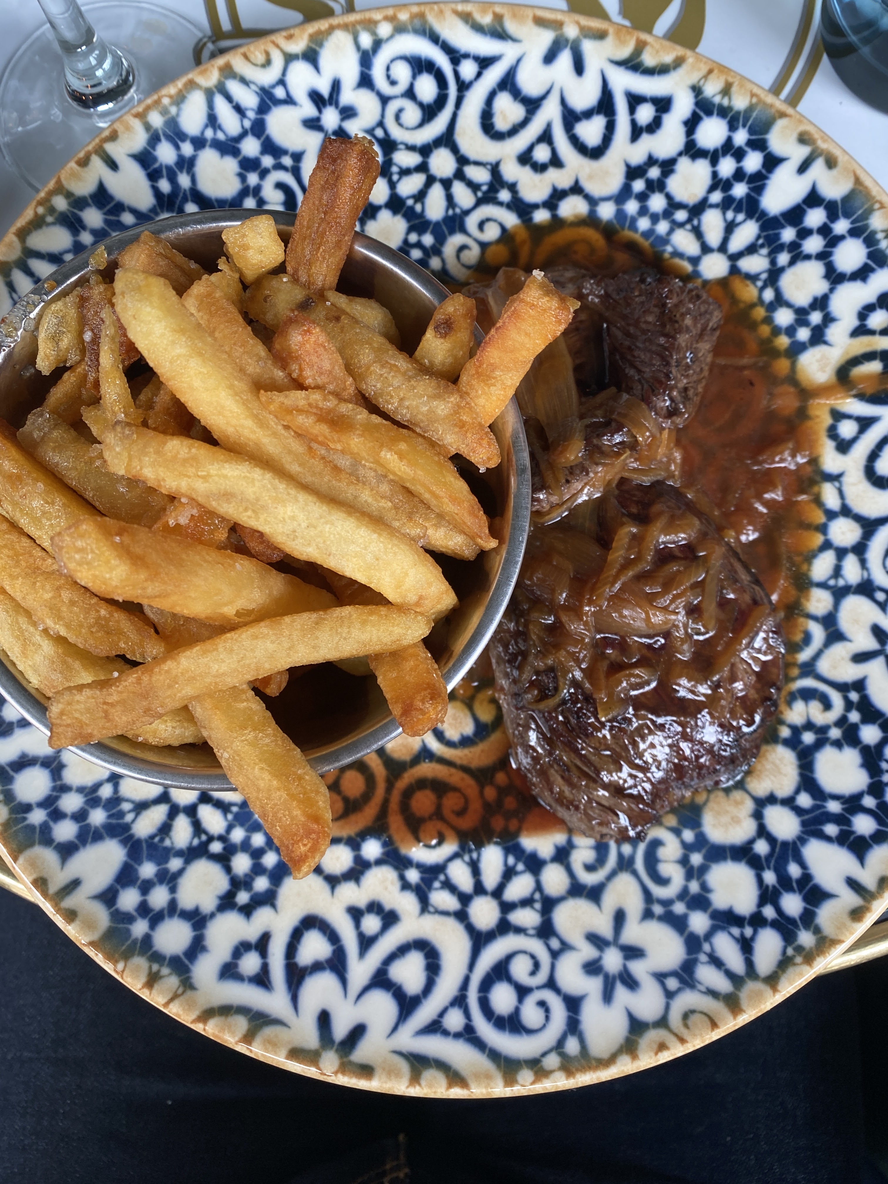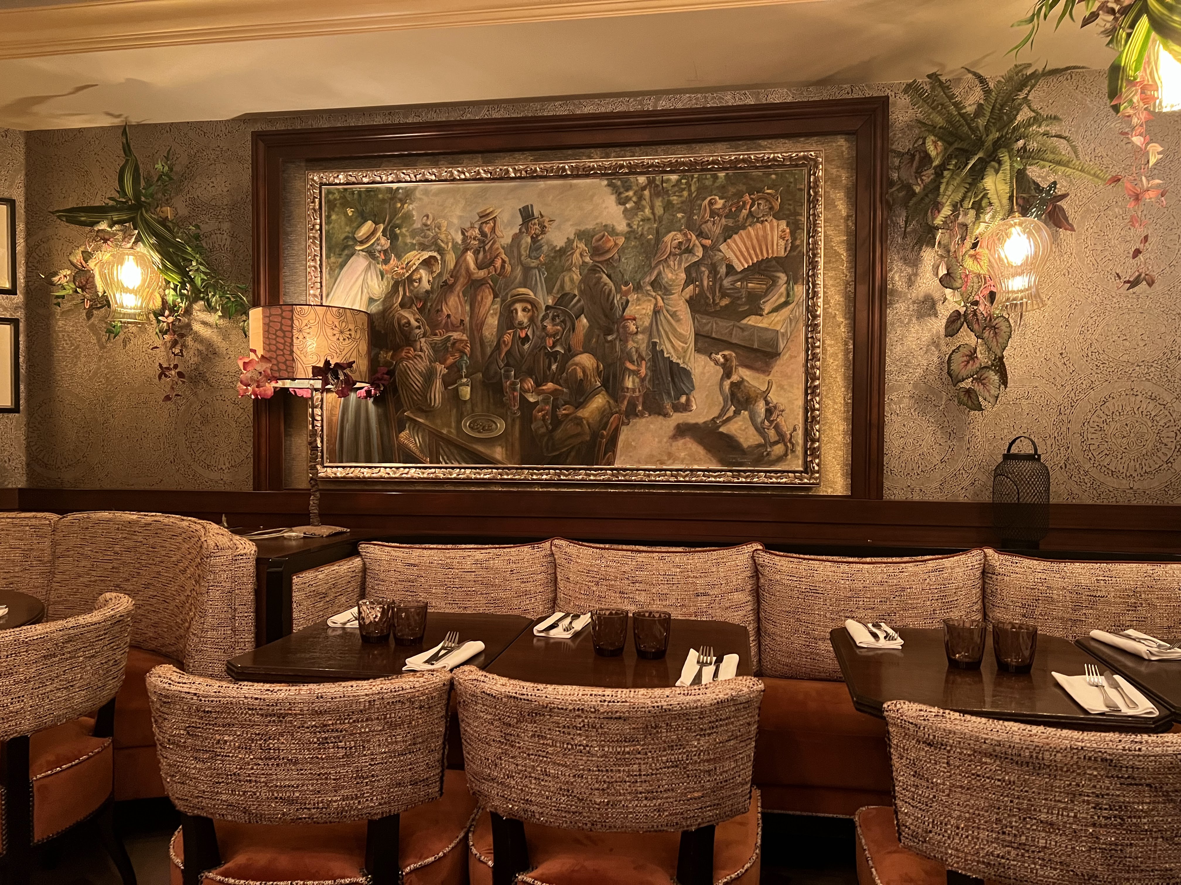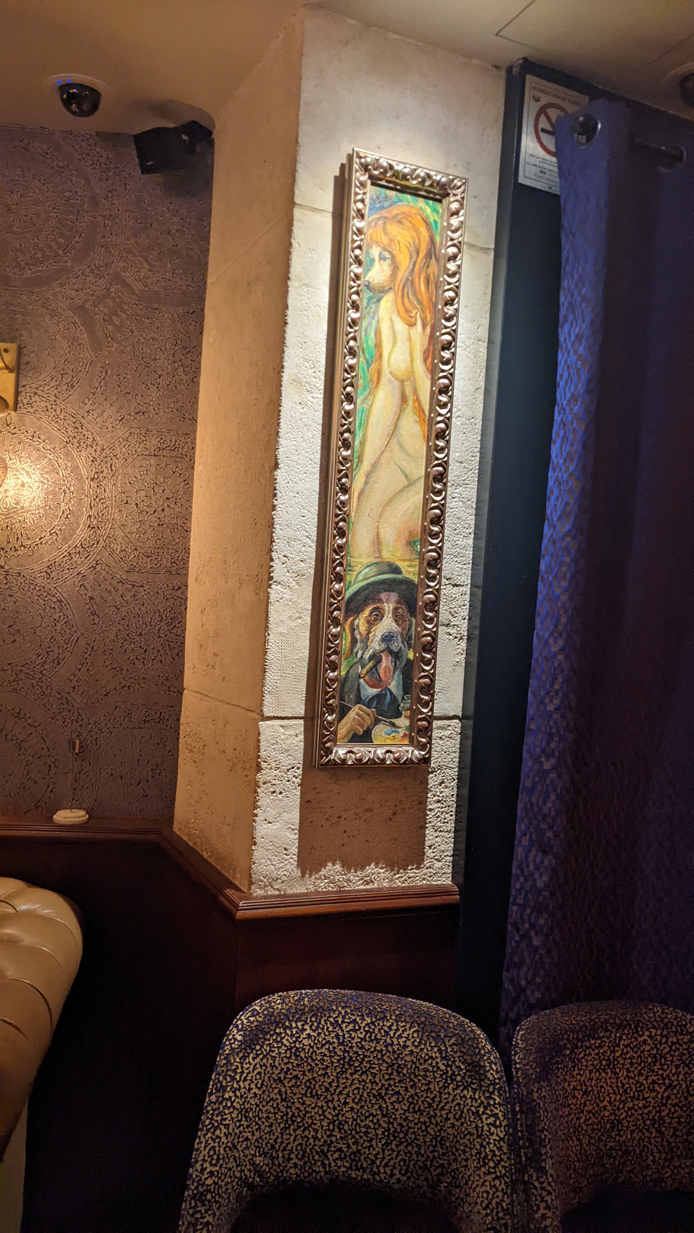 J'ai été attiré par le nom, après avoir été indécis quant à l'endroit où manger, et je sens que j'ai pris la bonne décision ! Mon serveur Nomane était très gentil et attentionné et parlait un anglais incroyable (même si j'ai essayé de parler mon français GCSE rouillé). La décoration était vraiment magnifique, avec des peintures de chiens partout. J'ai pris un steak tartare et un verre de Chinon, et le tartare était magnifiquement assaisonné.
