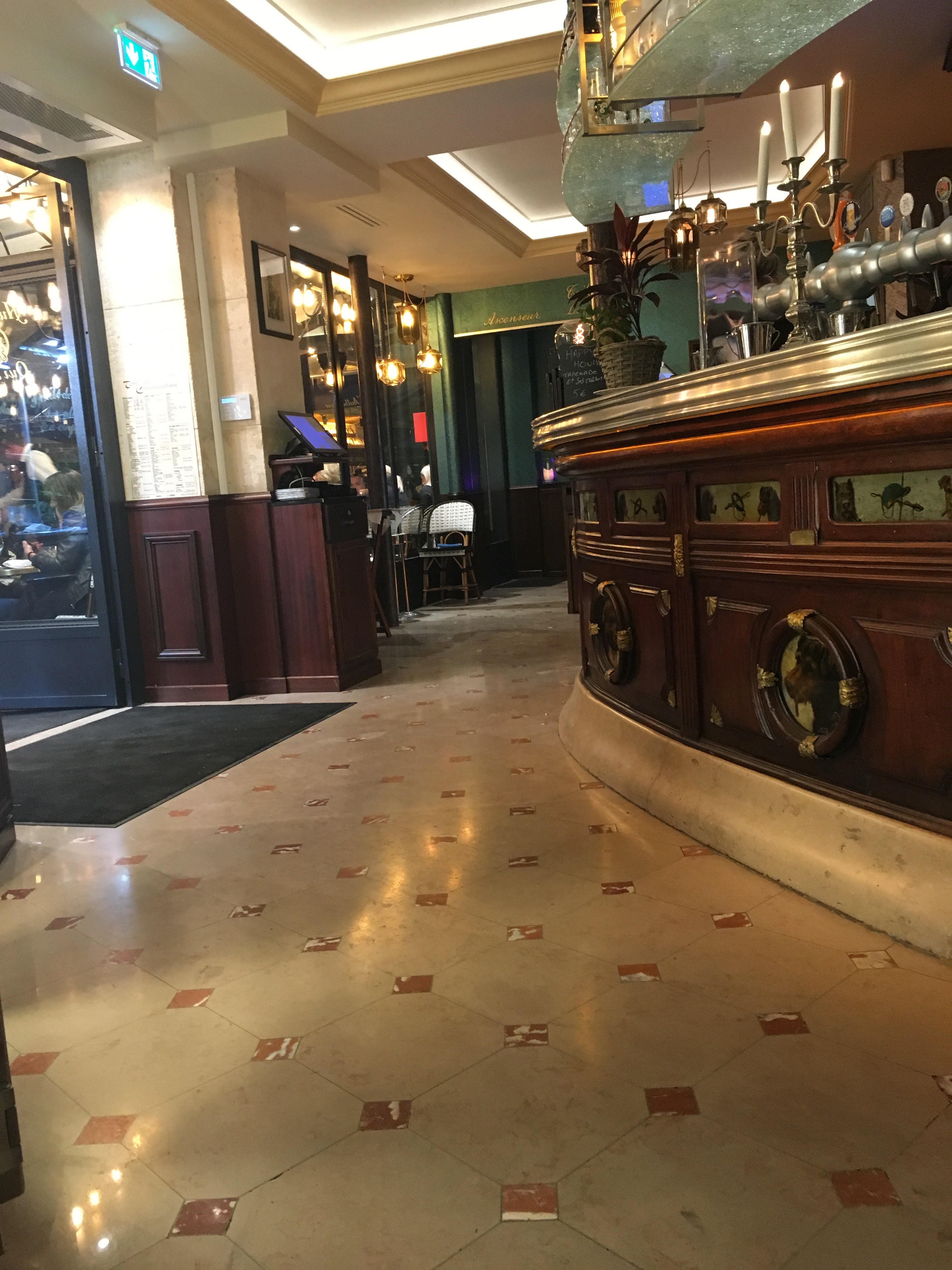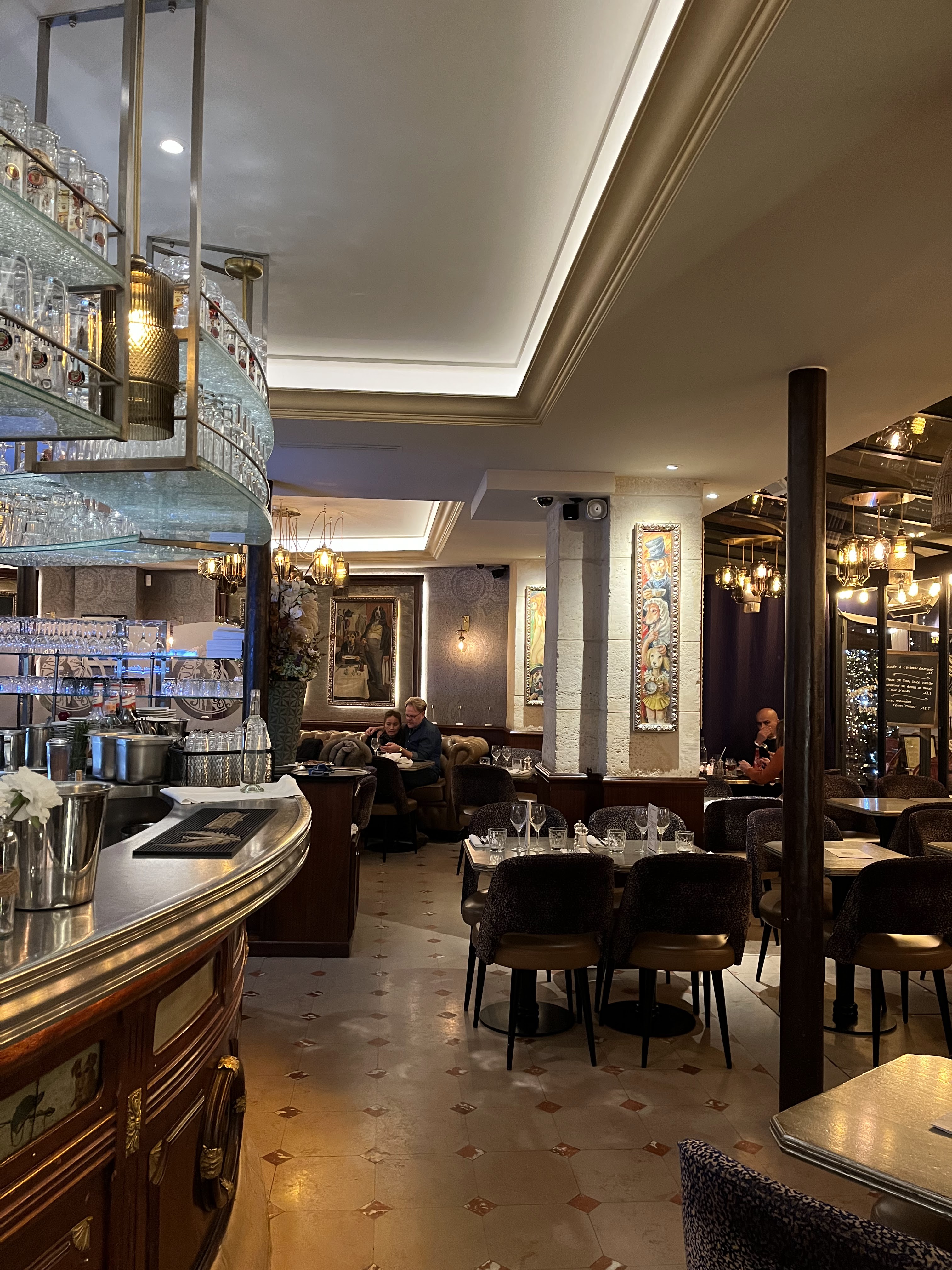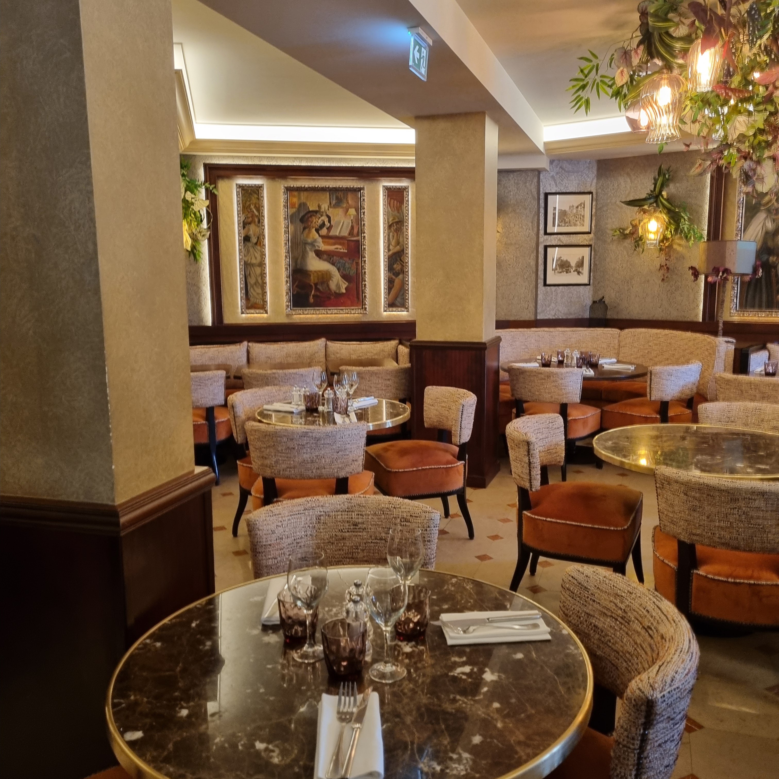 Brasserie plutôt haut de gamme dans un cadre cossu, qui fleure bon la bourgeoisie de la fin du 19ème siècle. Le jour où j'y suis allé, beaucoup de touristes asiatiques, les lieux sont sans doute référencés dans les guides internationaux. Confortable et assez intime à l'étage, le rez-de-chaussée est plutôt bruyant et dense en clientèle. Toilettes impeccables. Les plats sont de bonne qualité, ça reste classique, dans l'esprit brasserie. Soupe à l'oignon un peu carbonisée, dommage, par contre excellent wok de calamars, épicé à point. Mon invité a bien apprécié le hamburger maison. Un beau choix de vins au verre, mais compter 8 euros minimum. Service de bonne qualité, accueil sympathique avec local pour mettre la trottinette. Notre serveur a fait des prouesses car le personnel à l'étage était un peu réduit. On peut y aller sans risque, même si c'est un peu cher. Une bonne adresse dans le quartier des halles pour inviter des amis.