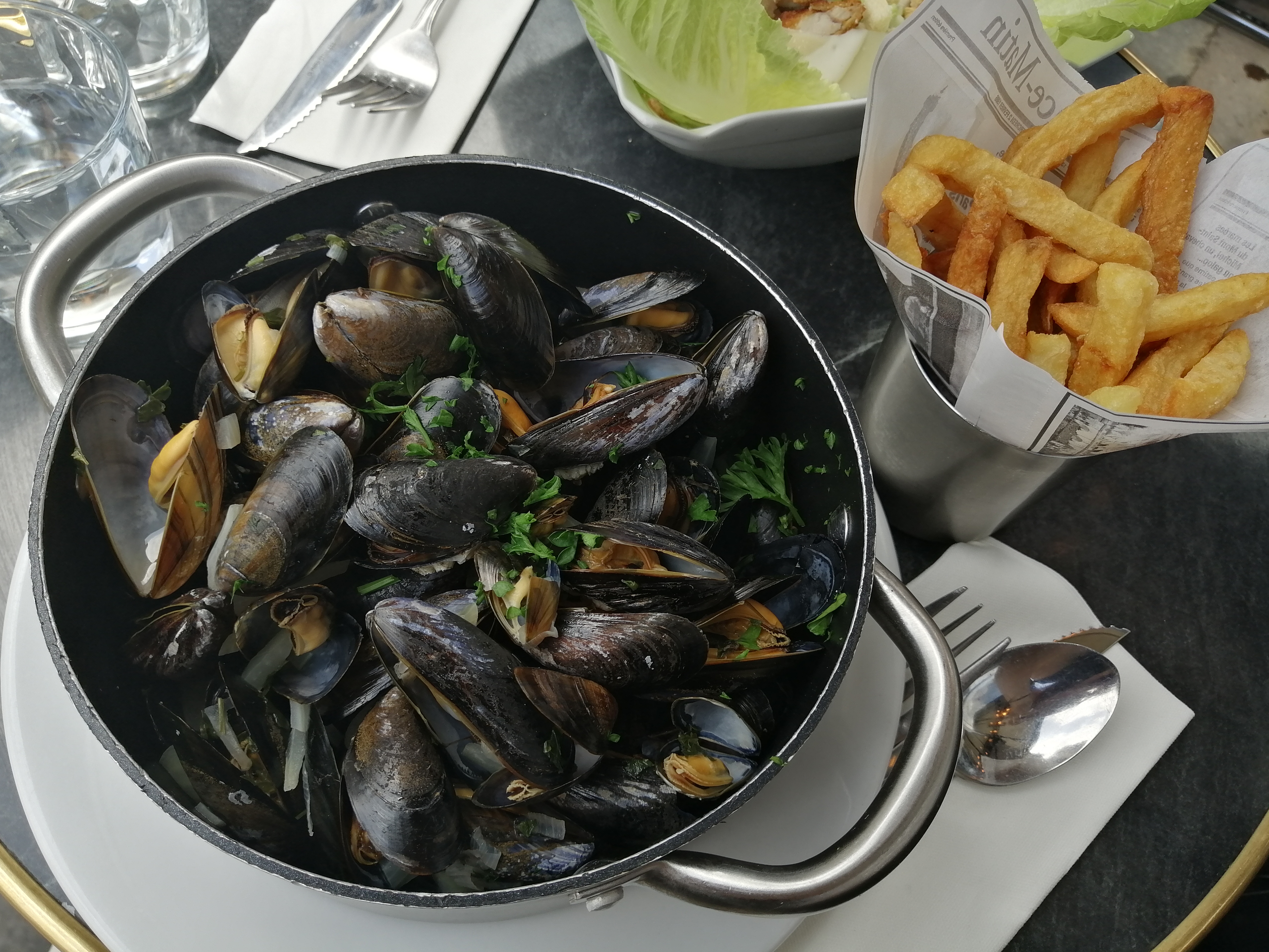 Les huîtres étaient vraiment bonnes ainsi que les moules. Les frites étaient assez grasses. Le serveur semblait également ennuyé lorsque vous le remerciez plusieurs fois. Par gentillesse, je remercie toujours les serveurs chaque fois qu'ils servent. Cependant, il semblait un peu ennuyé (un point de moins à cause de cela). Dans l’ensemble, c’est une belle expérience. Le coût total avec pourboire était de 55 euros.